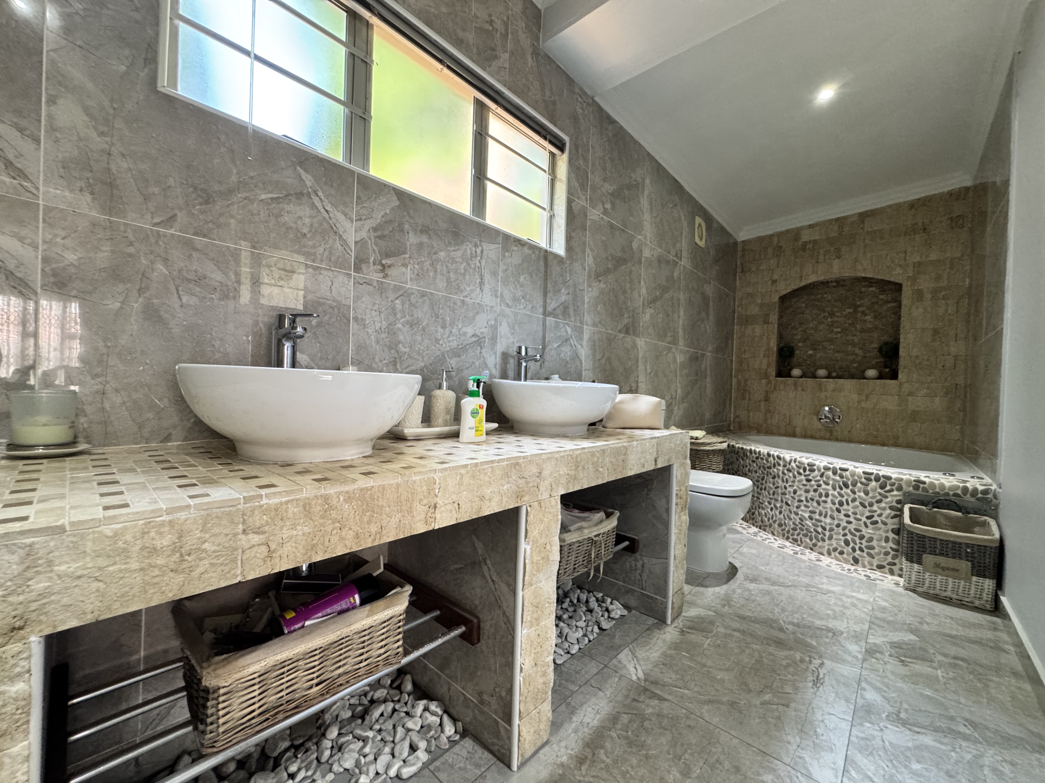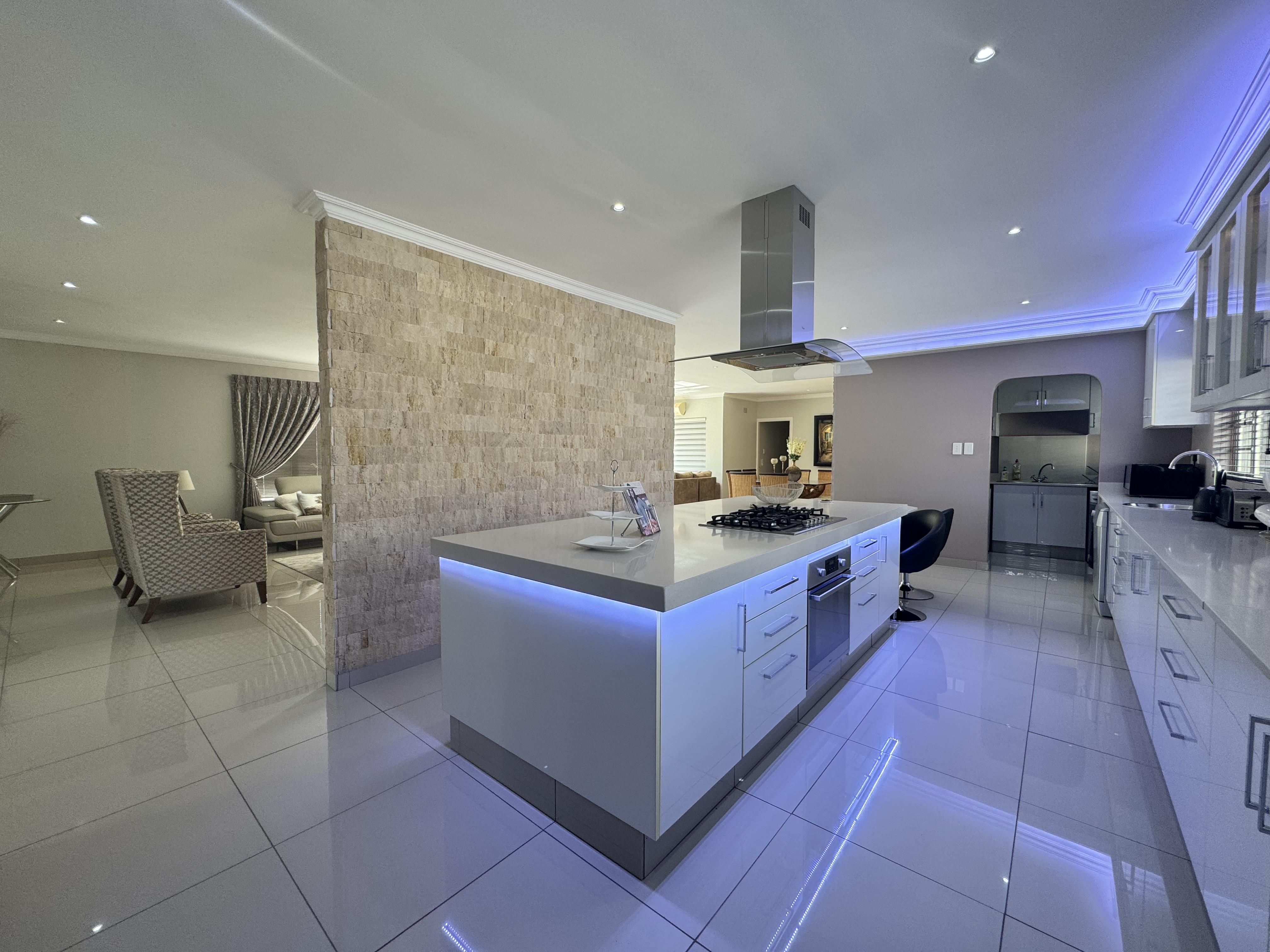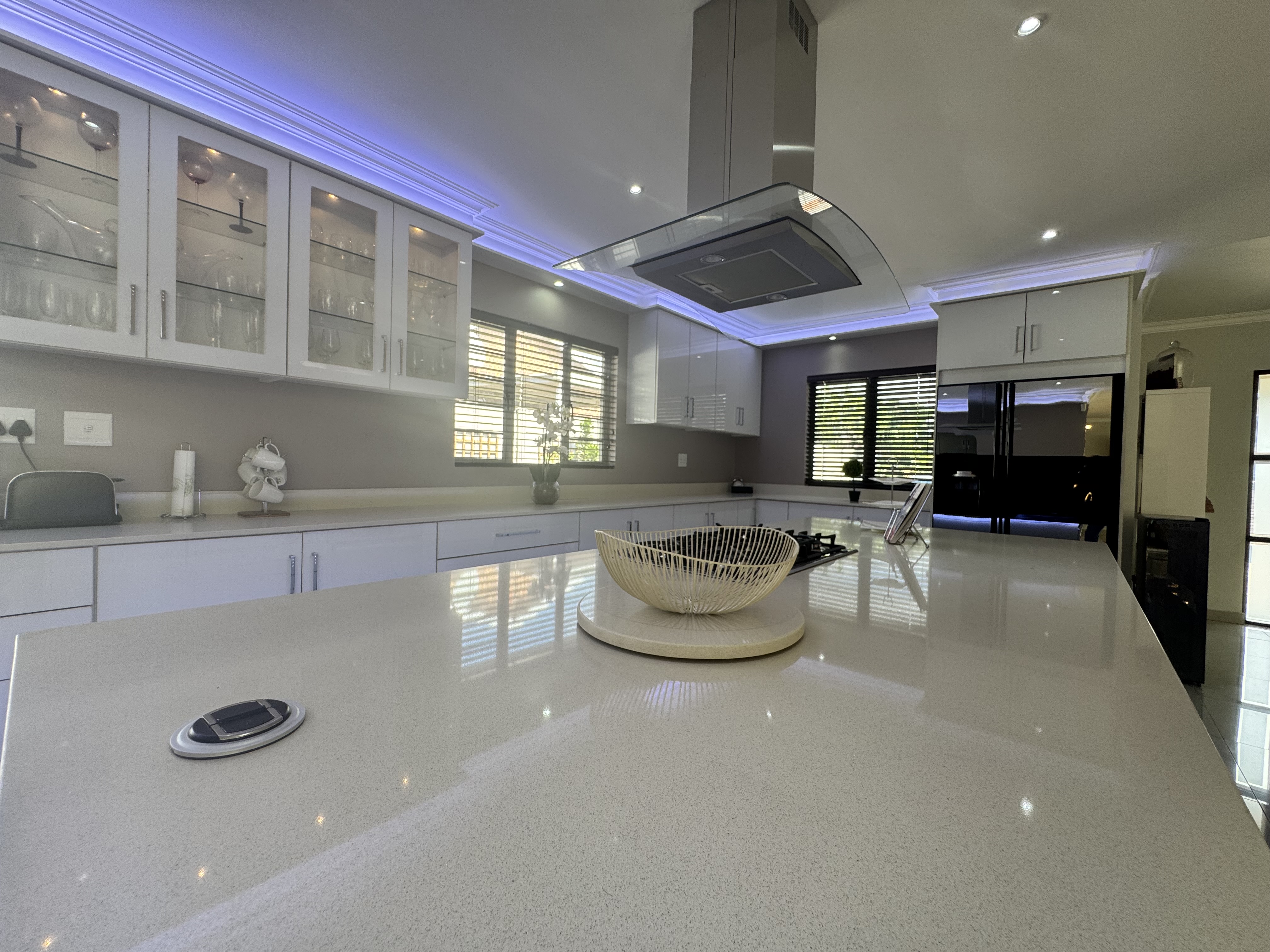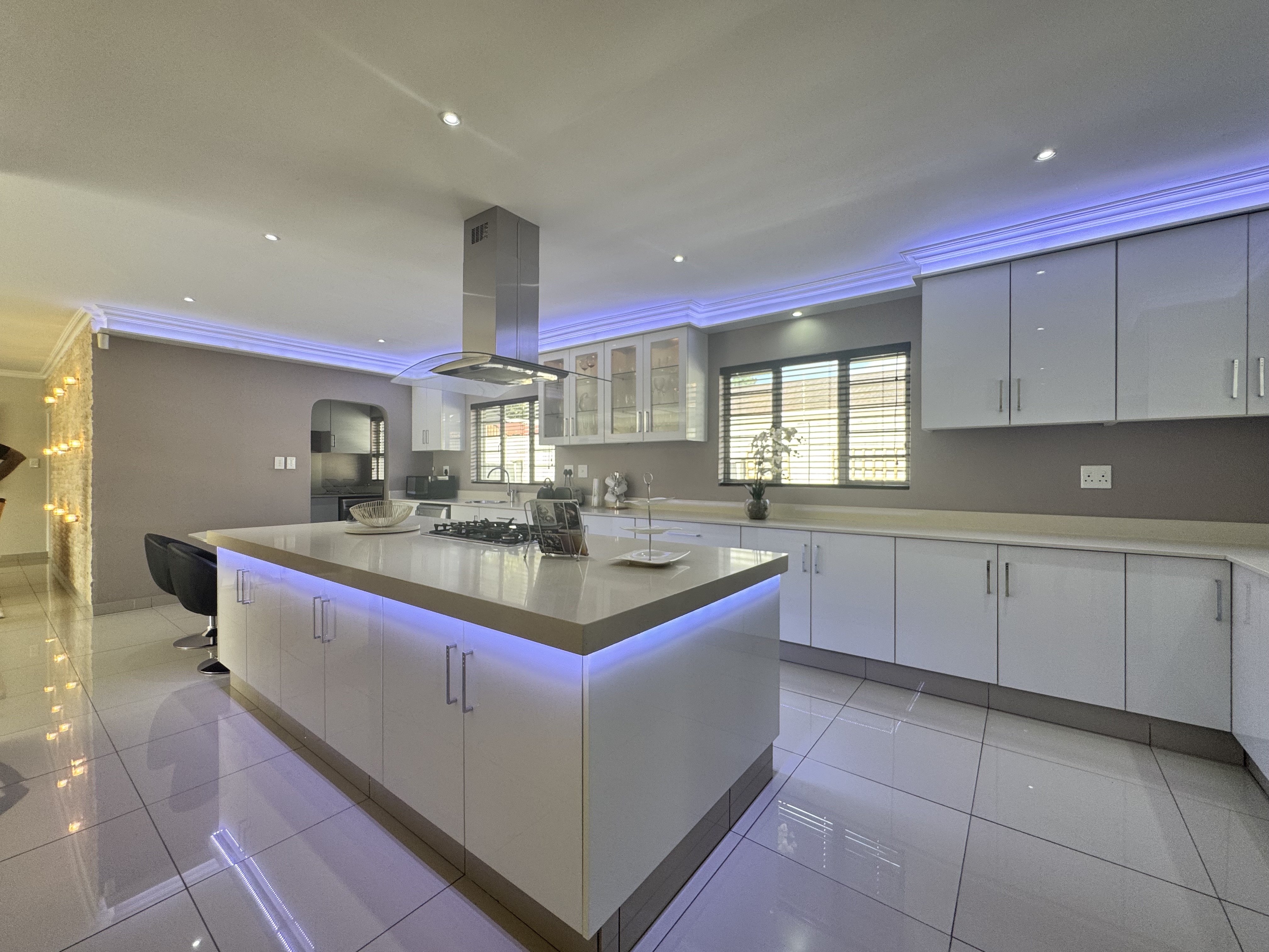 This incredible location on Wager Avenue offers you four-car garages with additional parking for five other cars. Enjoy both formal and informal lounges, plus fiber internet access! Dining room featuring a gourmet, modern kitchen modern with Caesar stone tops, gas over counter stove & under counter oven, soft close cupboards and kitted for dishwasher, washing machine and tumble dryer, The scullery area is enhanced by stunning lighting. This home includes four bedrooms, two of which have ensuite bathrooms. Authentic stone cladding adorns the lounge and dining room, complemented by an informal TV lounge with views of the pool. The main bedroom offers direct access to the pool area and features a walk-in closet. Just 50 meters from the Izinga entrance, the property includes ablution facilities for domestic staff, a Lapa with bar amenities, and a gas fireplace in the formal lounge.