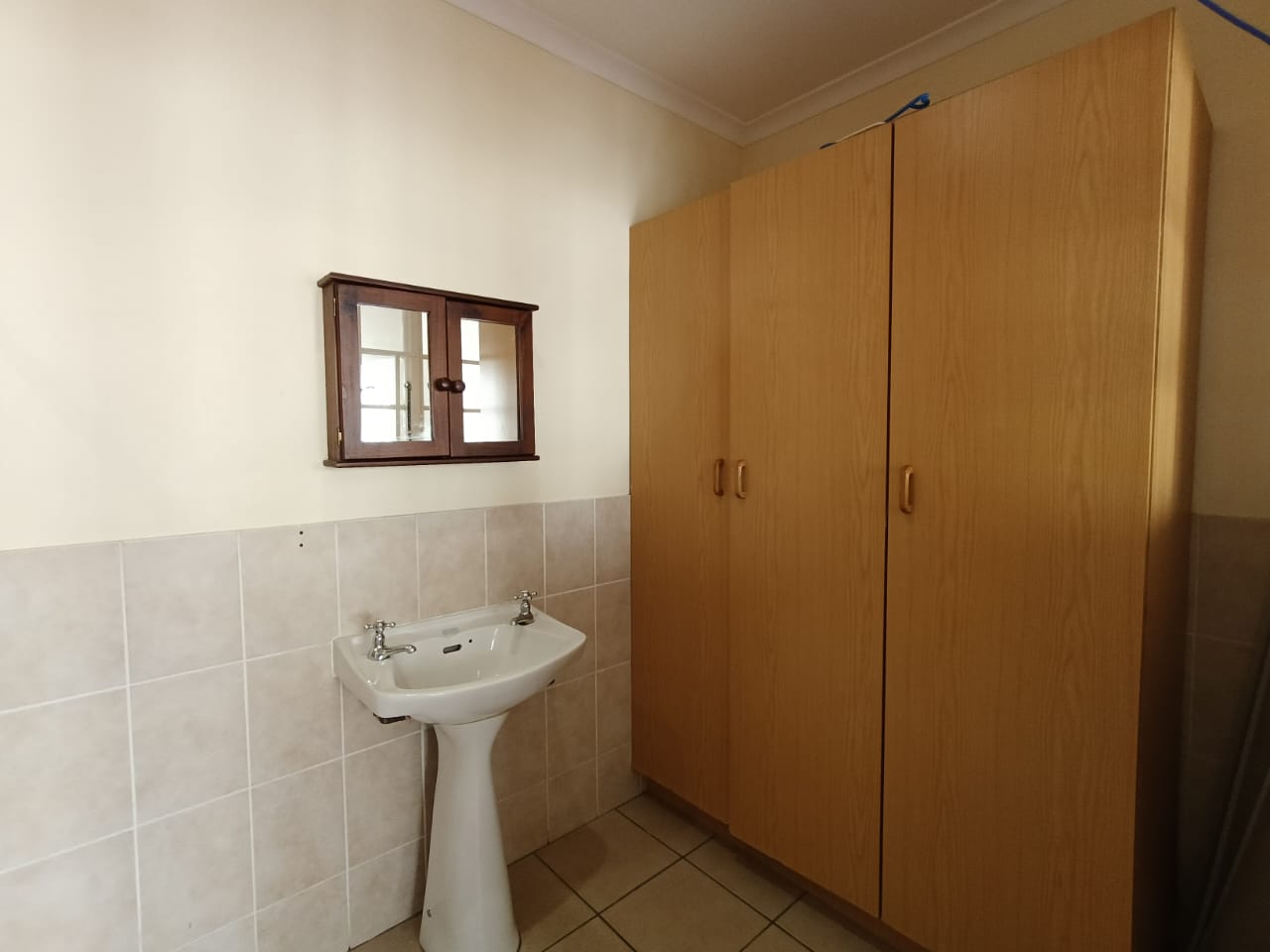 There is a flatlet with kitchenette, shower with cupboards and toilet which could serve as a domestic quarters. A double automated garage with direct access and driveway parking for 2 more vehicles. The garden is low maintenance and enclosed, making it ideal for pets. A sparkling pool with a kiddies slide and gym completes the family experience. Pre paid water and electricity takes the surprise out of monthly utility bills. An ideal location in a secure suburb with electric fencing, automated gates, CCTV and an alarm system allows the resident to relax in their home.