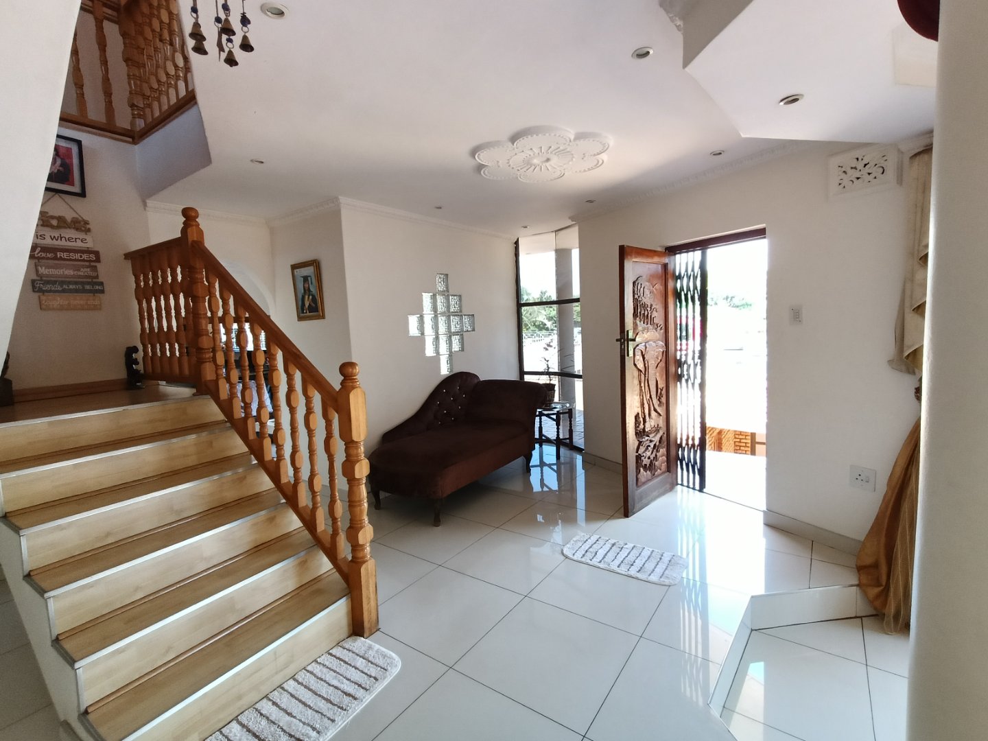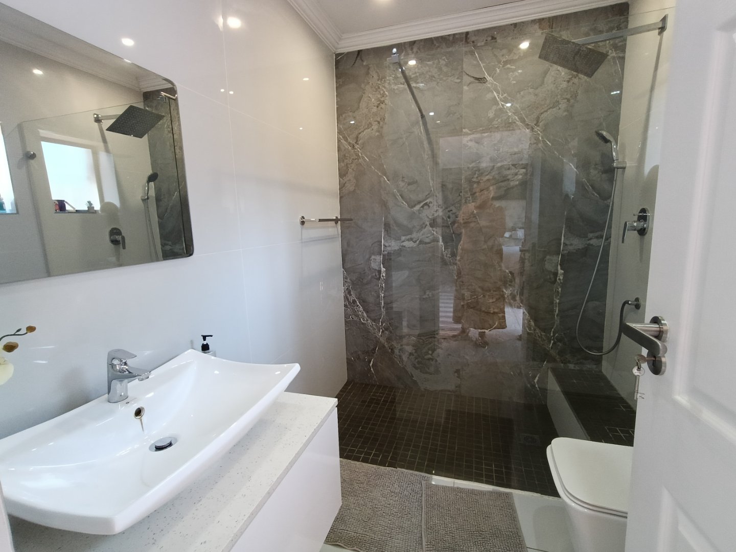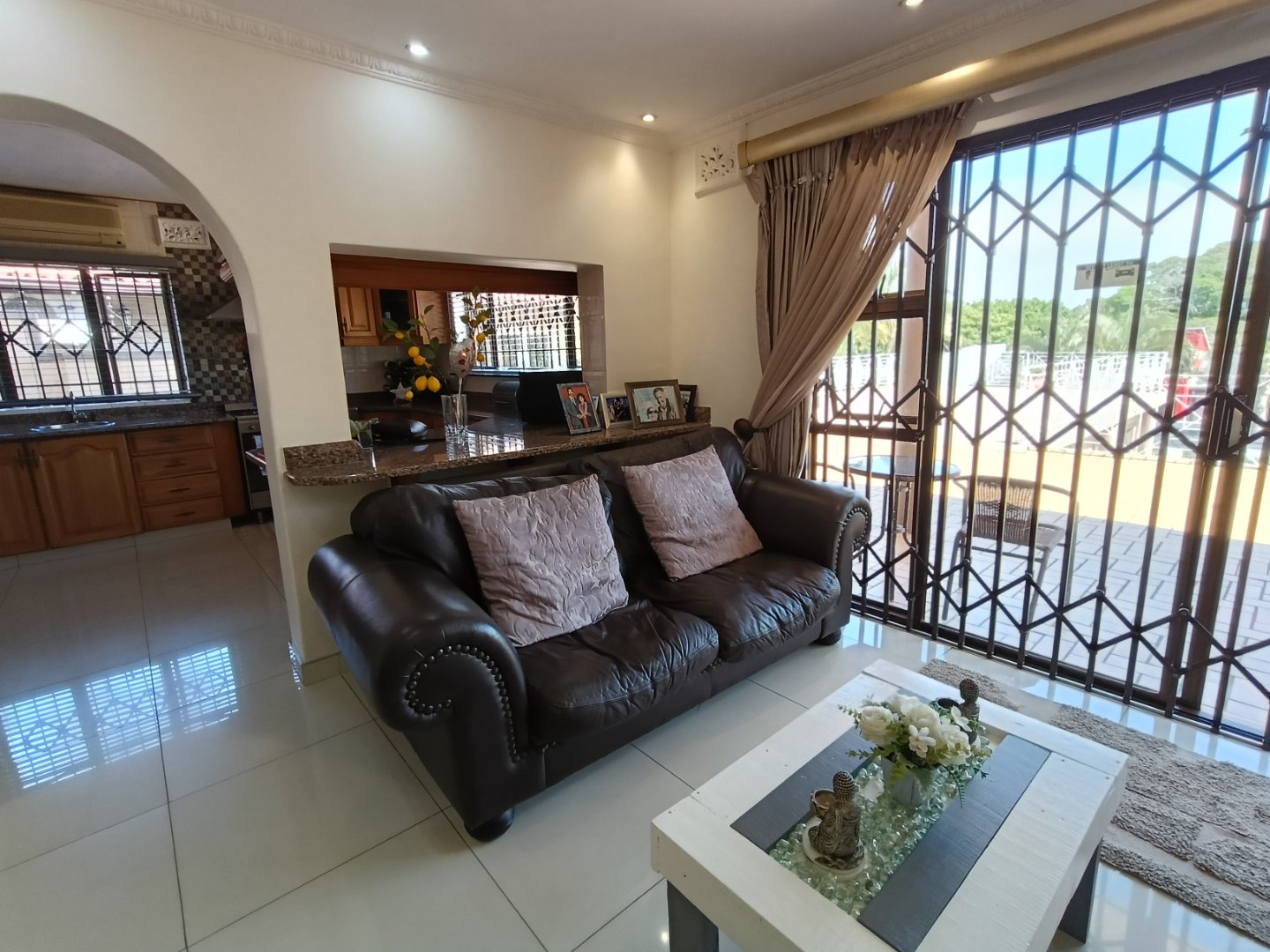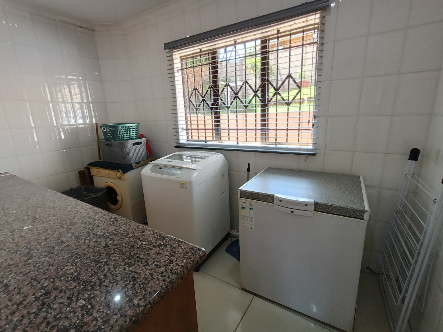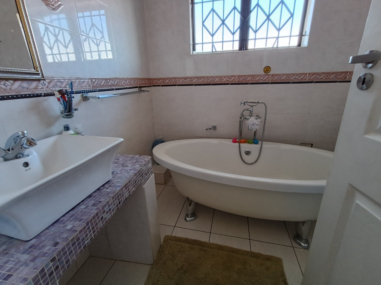A beautiful, furnished 4 bedroom home located in a very safe neighbourhood. 2 lounges, a TV room, dining room and spacious well equipped kitchen, scullery and laundry occupy the ground floor. There is a large patio with gorgeous inland views. Upstairs are 4 bedrooms, 2 of them en suite, and a full family bathroom. 3 of the bedrooms have balconies.