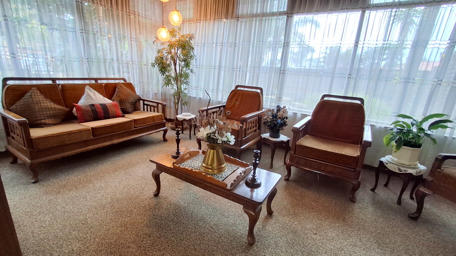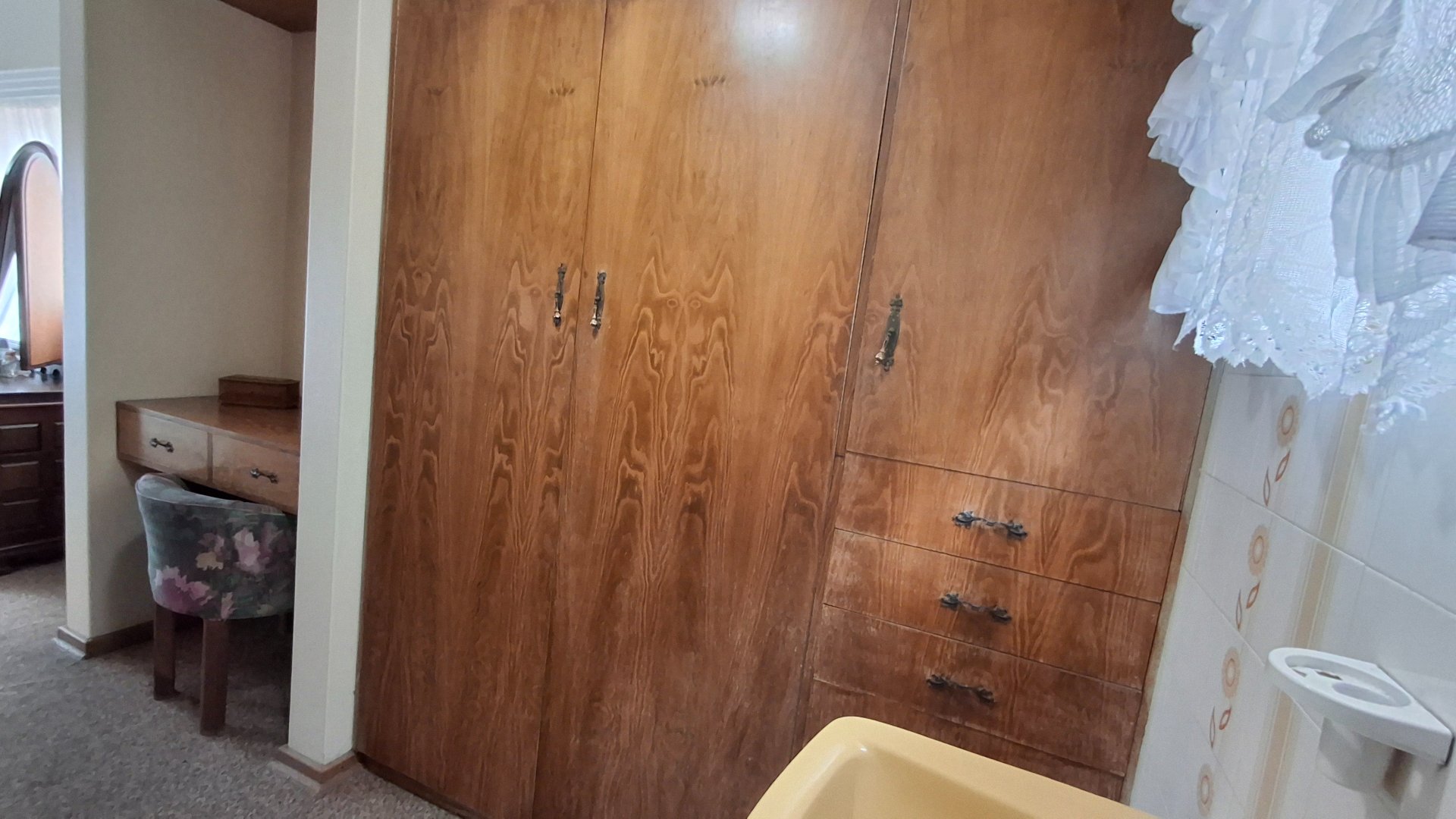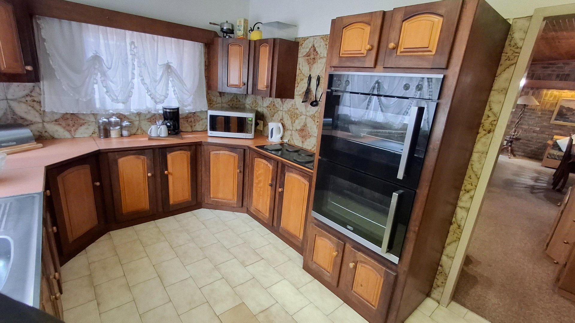 - A well-sized kitchen with original Embuya and Yellowwood cupboards, double oven, and electric 4-plate hob