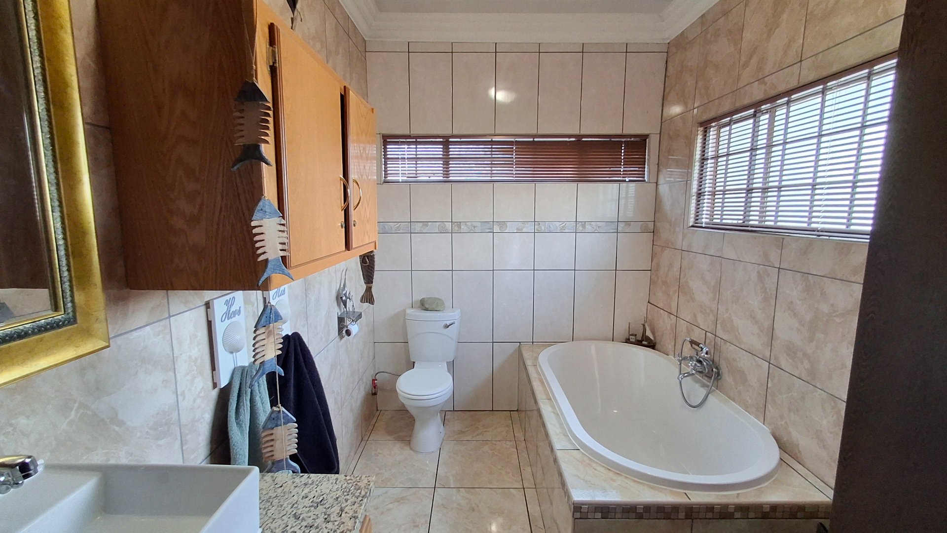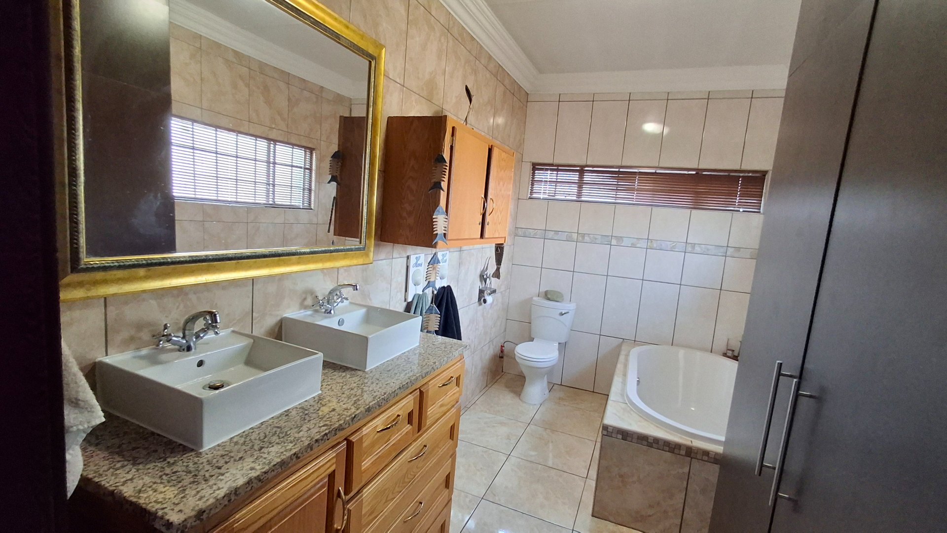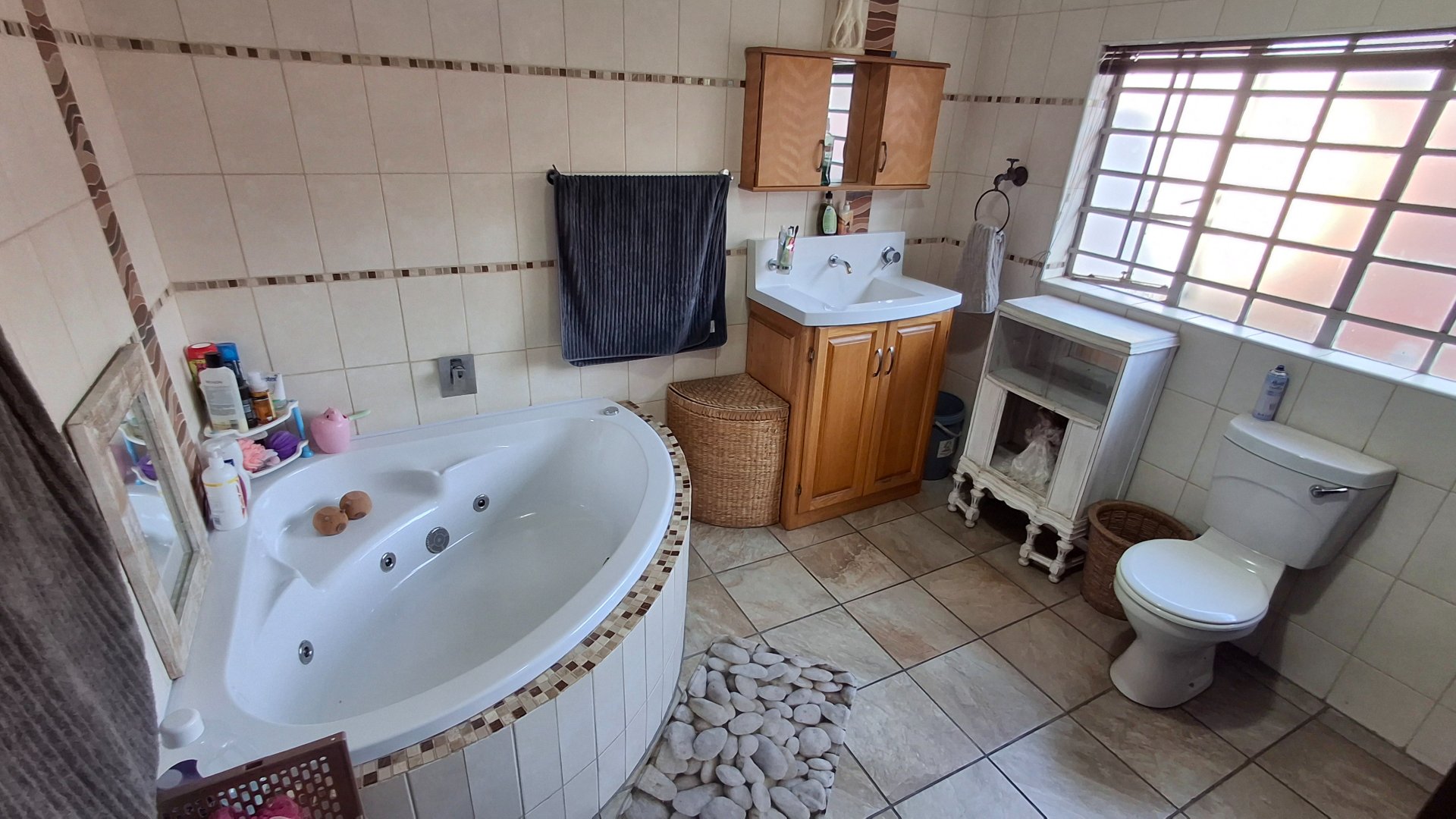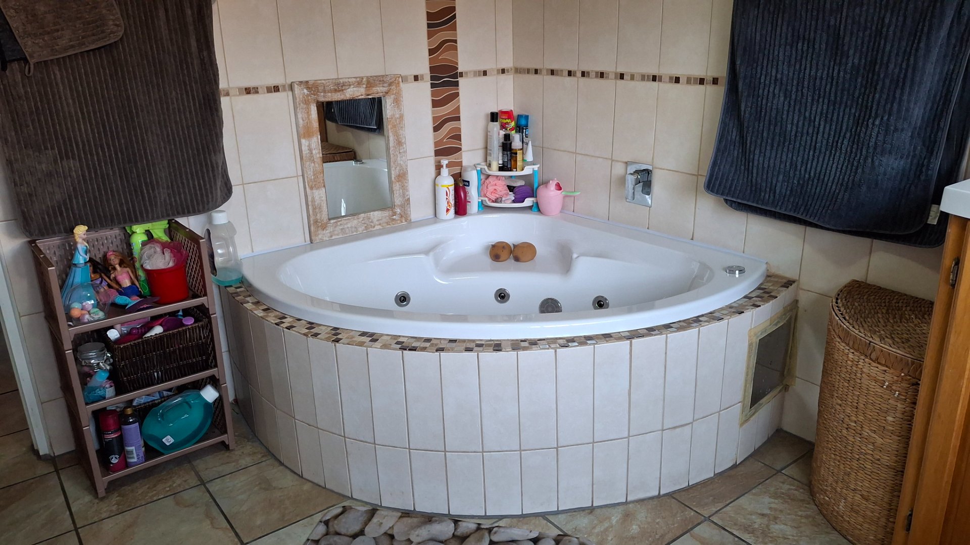 - A spacious main bedroom with an en-suite bathroom, featuring a corner bath and laundry