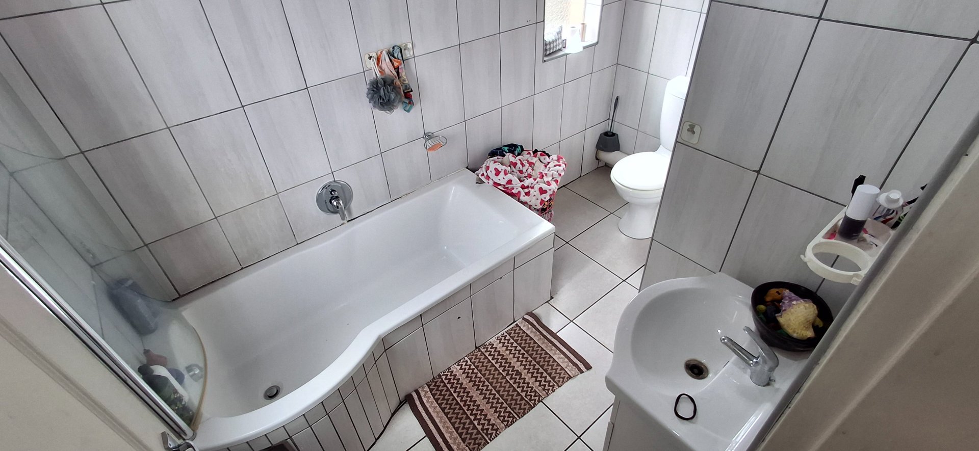 Second bathroom with bath, shower, toilet, and basin