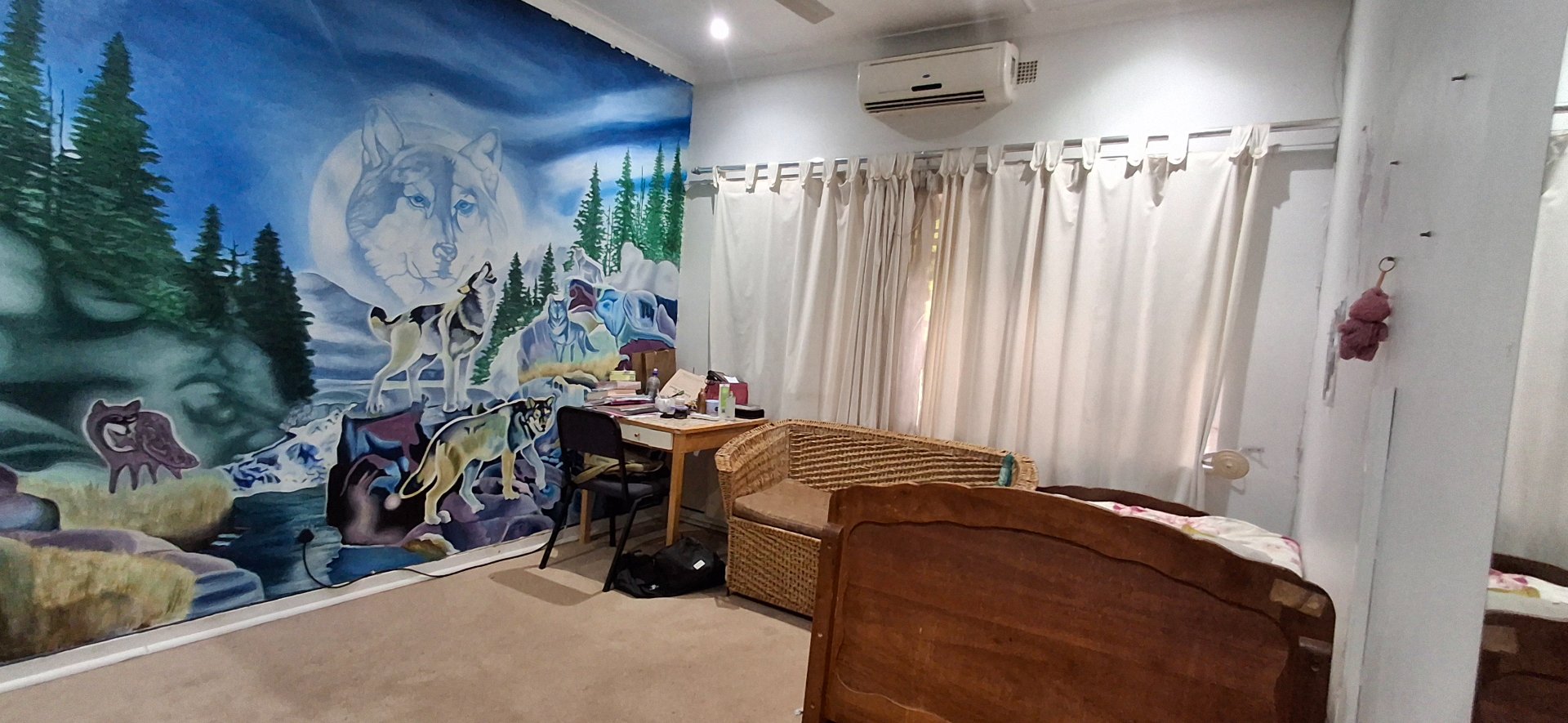 Loft room upstairs with en-suite bathroom (shower, bath, toilet, and basin)