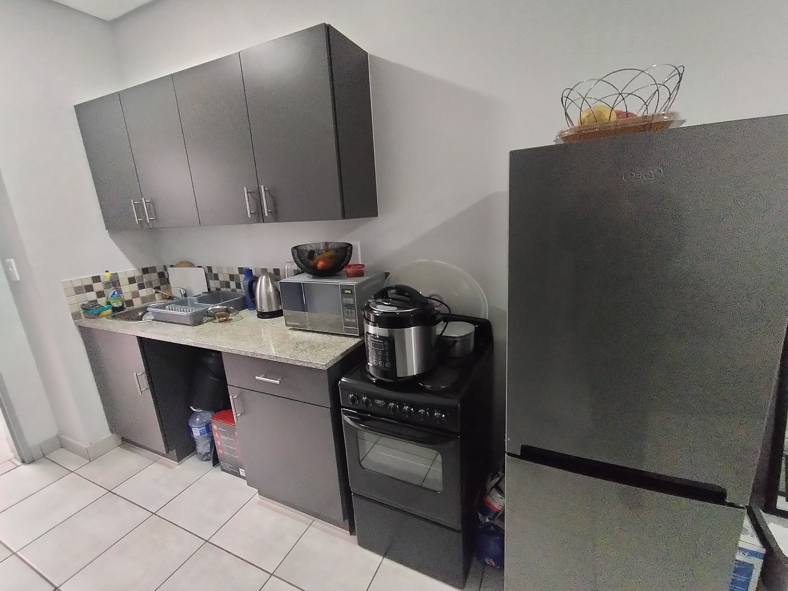 This neat and modern bachelor apartment is perfectly located on the 2nd floor of Northpark in Pretoria North. With 28m2 of well-designed space, it features an open-plan layout combining the lounge and bedroom area, and a stylish kitchen with granite countertops. The bathroom includes a shower over the bath, offering both practicality and comfort. The unit is conveniently situated near the lift for easy access.