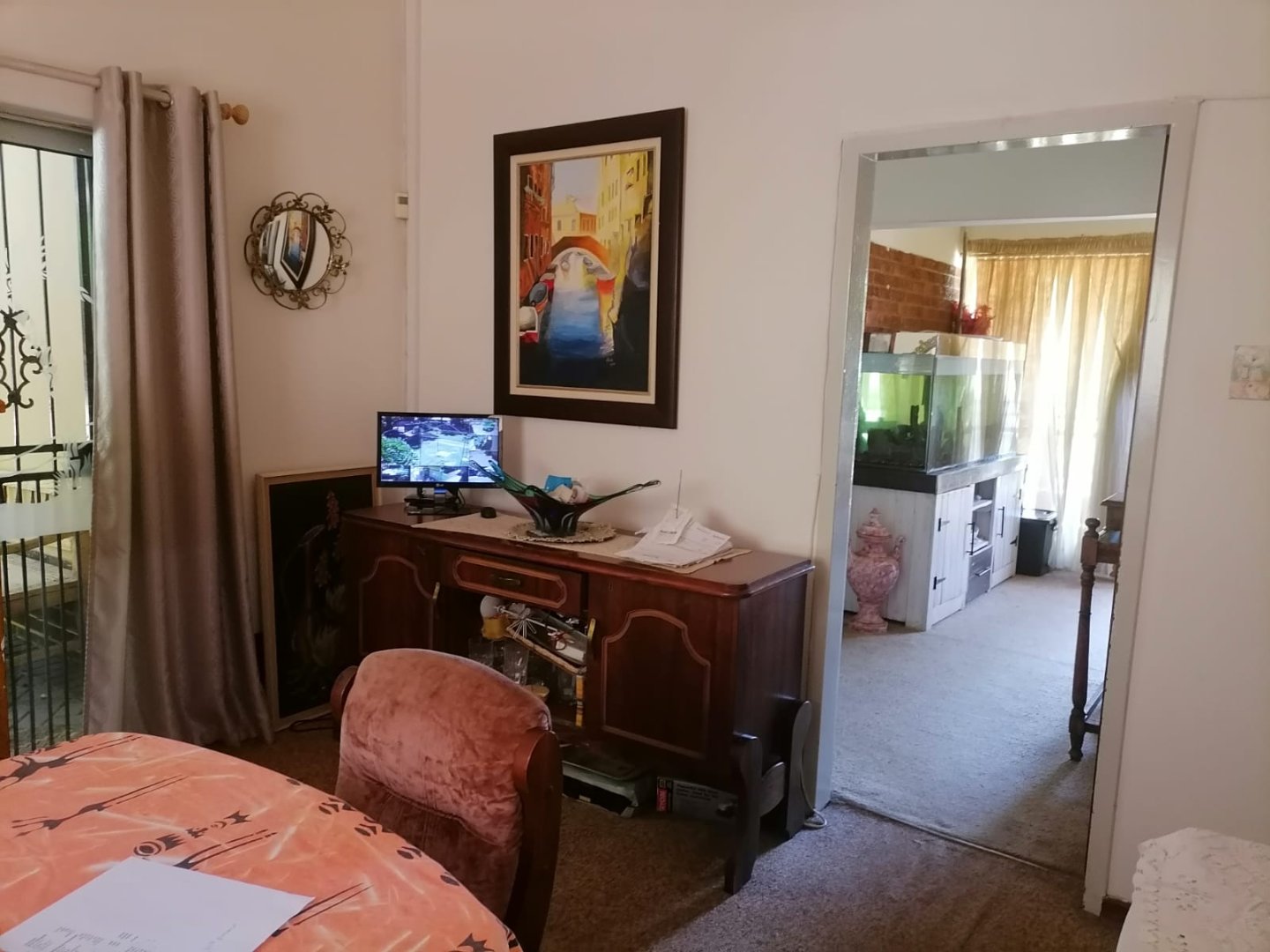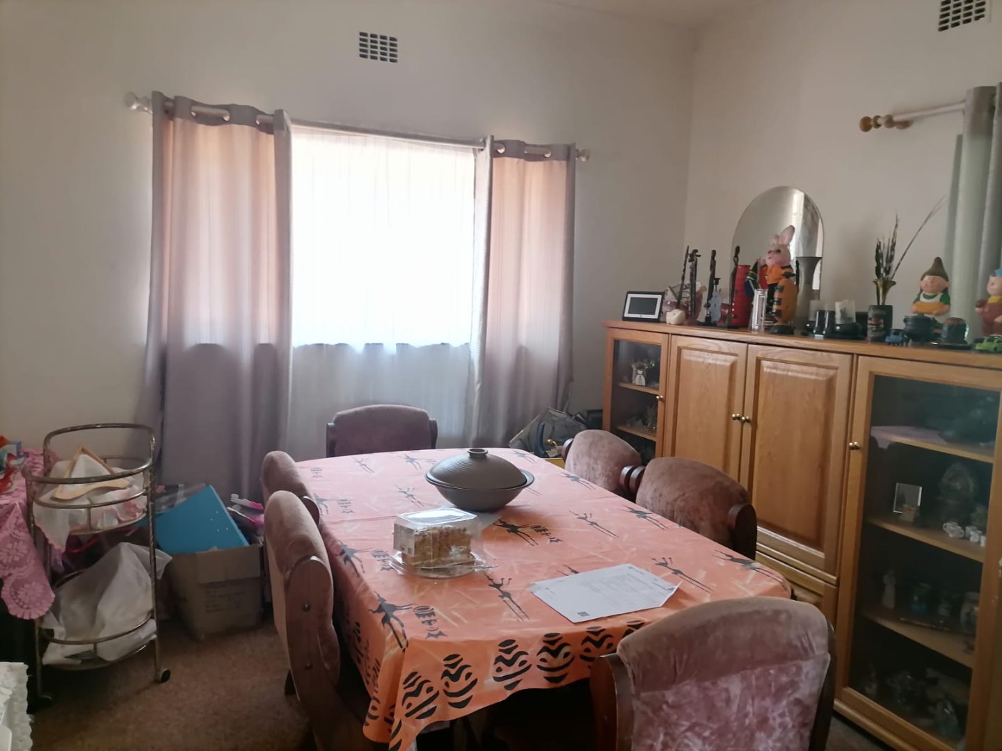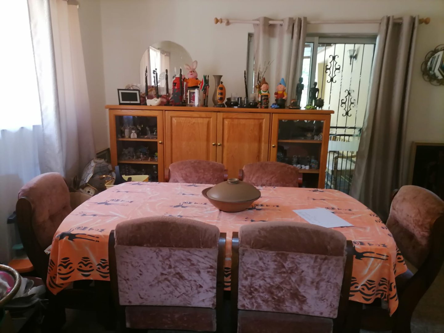 * Dining room. (The dining area is further enhanced by a lovely sliding door, while the lounge flows seamlessly onto a second undercover patio with a built-in braai)