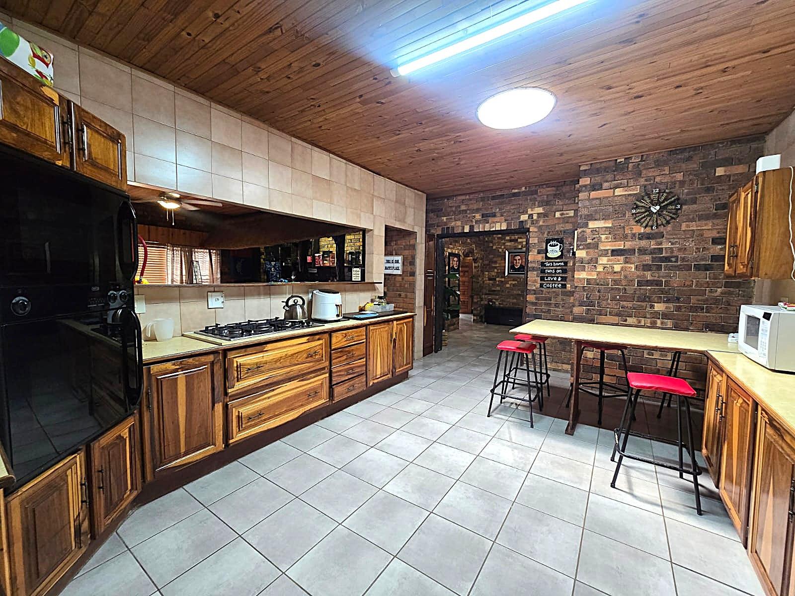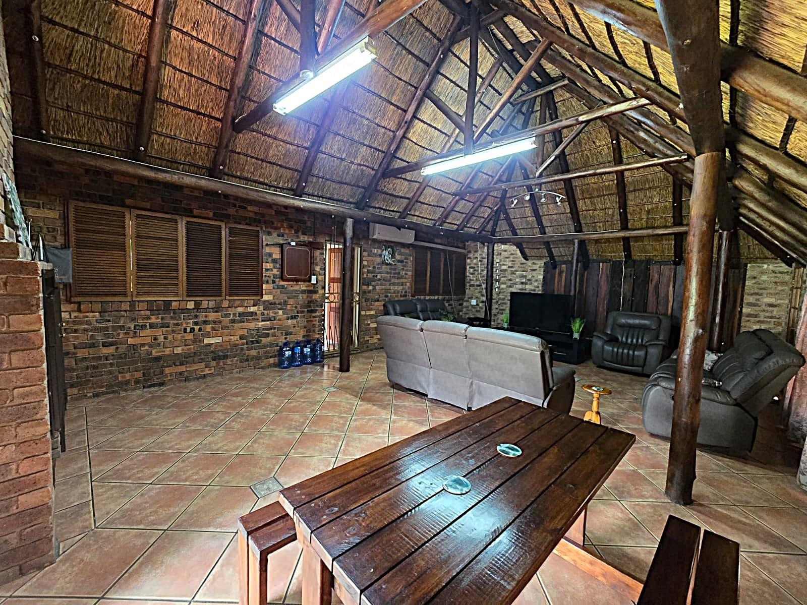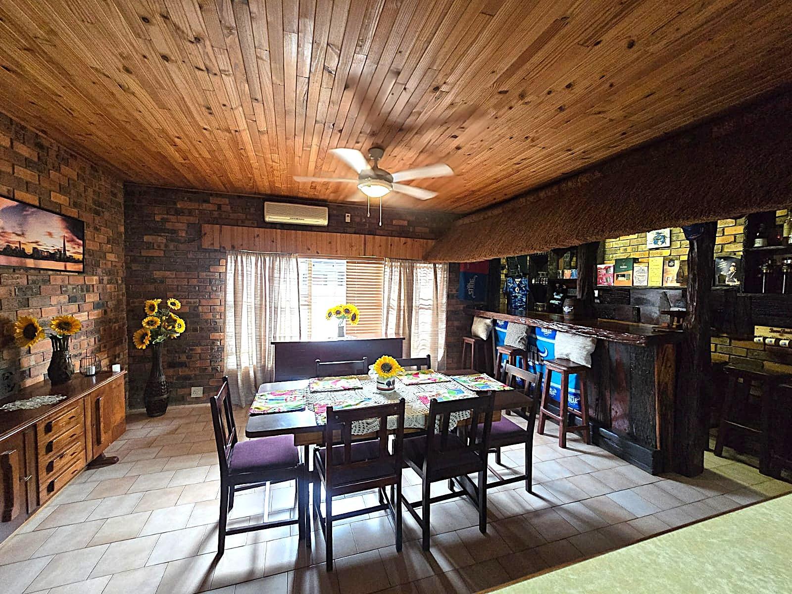 Additional features such as air conditioning, solar panels with inverter, borehole, and water tank ensure energy efficiency and sustainable living. Security is well addressed with an alarm system, armed response, outdoor beams, and an electric fence.