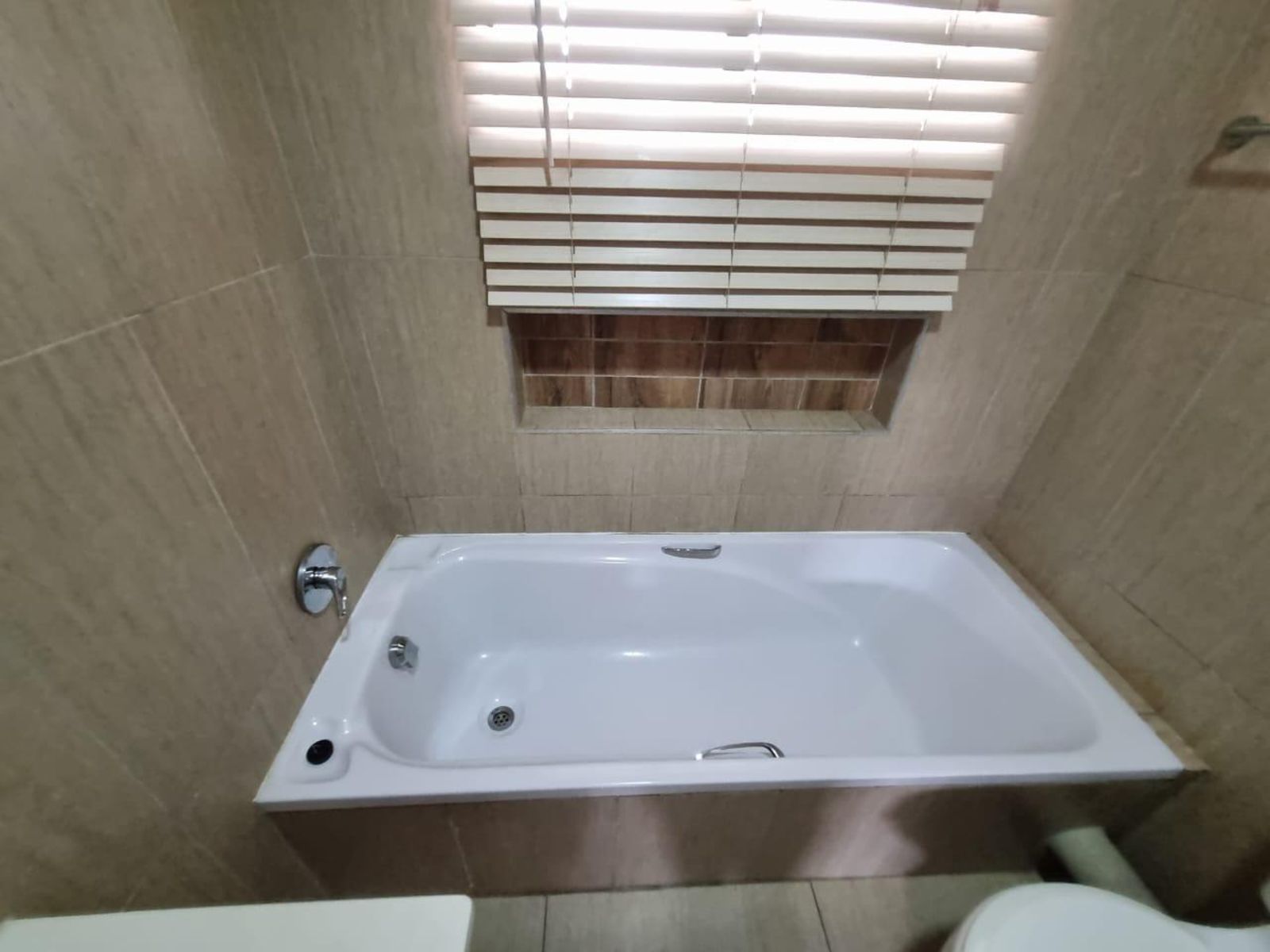 -The lounge is open and leads you outside to the garden. The townhouse has a full bathroom with a shower and bathtub, two open rooms with modern touches and built-in cupboards.