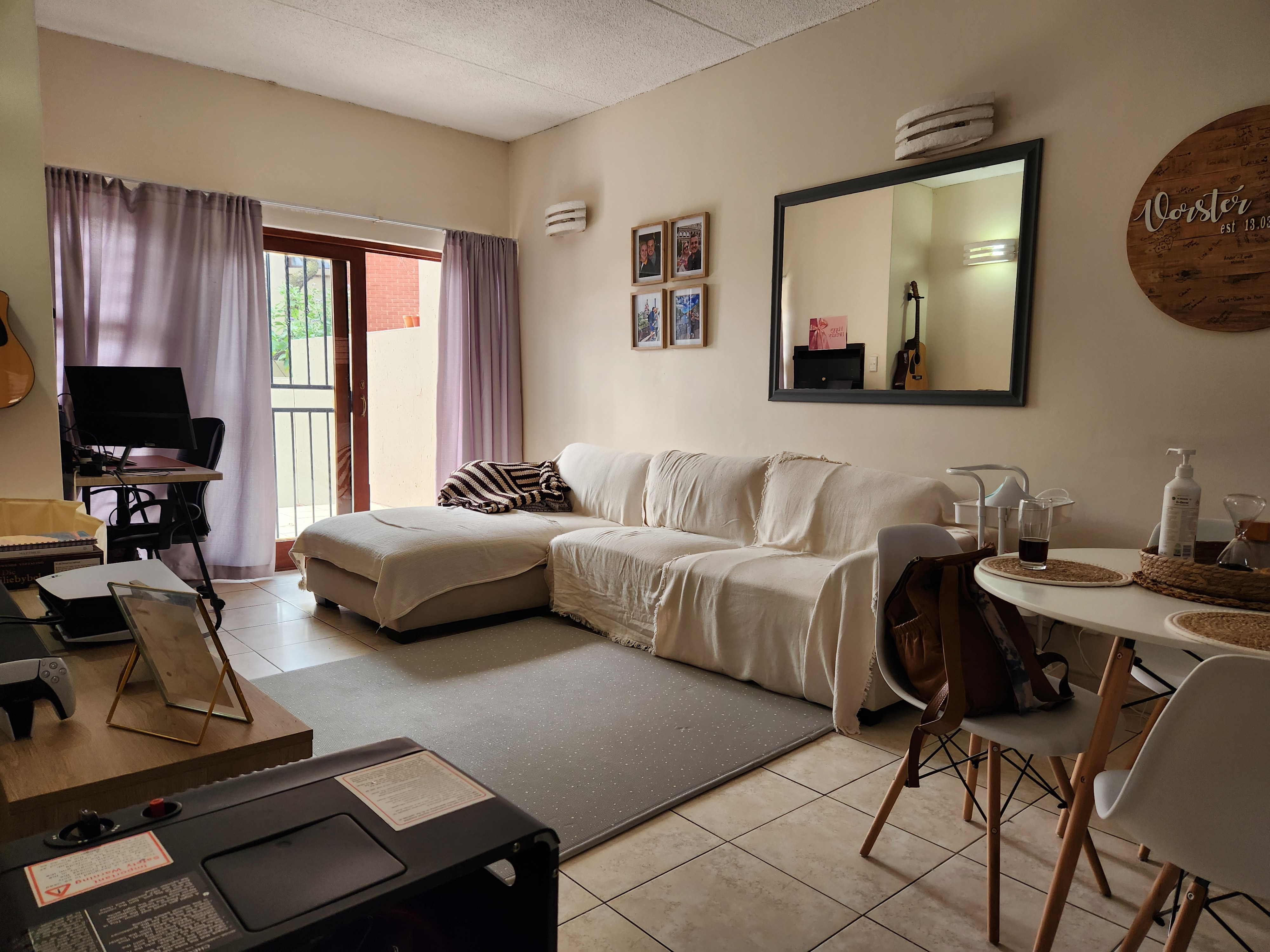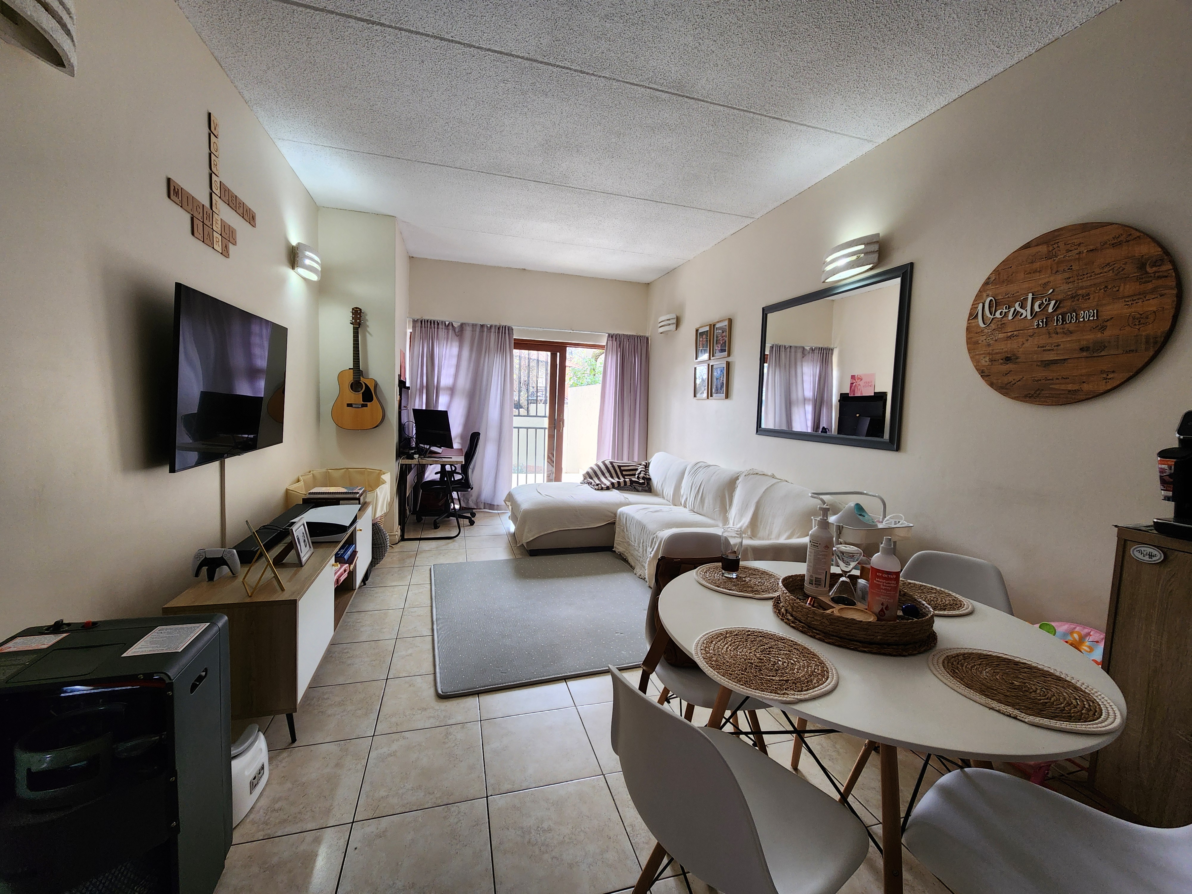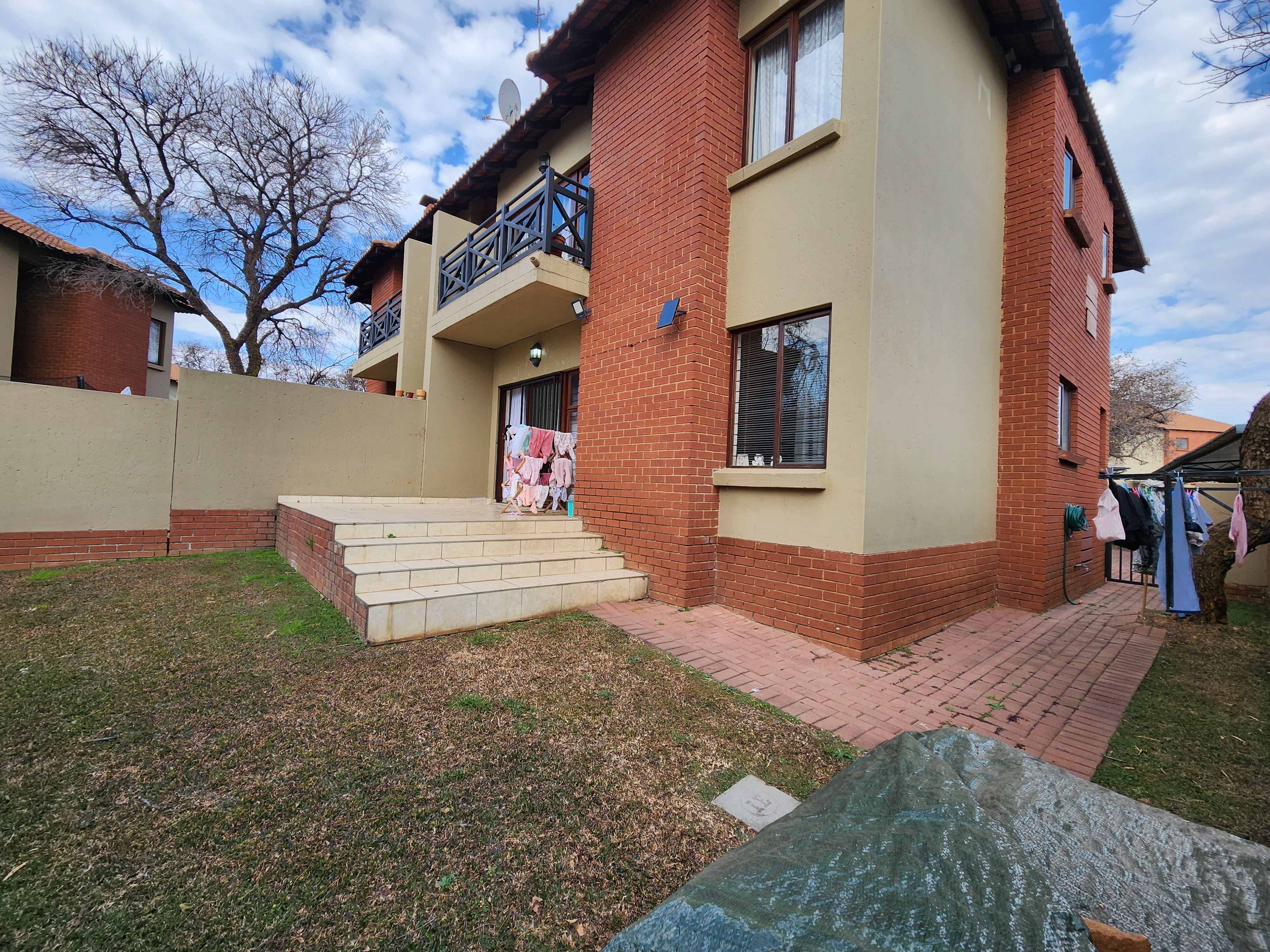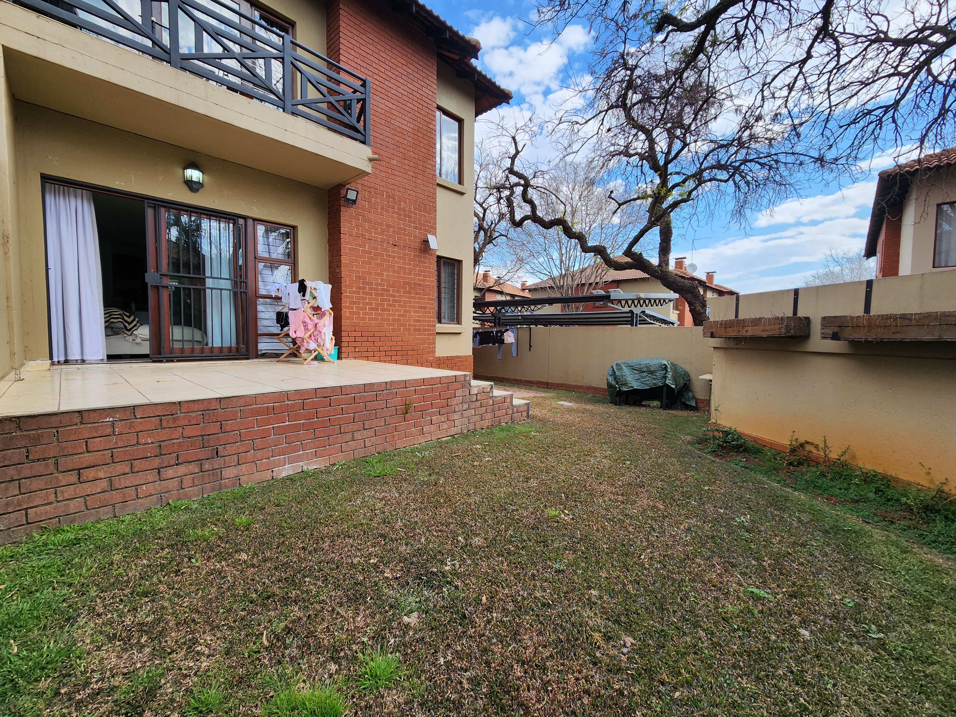 This ground floor apartment is situated in the very sought after Blue Stream Villas in Pretoriuspark. This property offers you a very nice and open plan kitchen that can fit 2 appliances. A spacious open plan dining room and lounge, 2 bedrooms, 2 bathroom within bedroom ensuite. A double carport parking and ample visitors parking. The back yard gardens offer space with its own washing lines. The well looked after garden is perfect for the person with green fingers to make it your own paradise. This medium sized estate offers communal swimming pool, club house and play areas for children. the security estate with electric fence at its perimeters with cameras everywhere and the estate has very strict 24 hour access control and excellent track record. Close to Woodlands Mall, Netcare Hospital, Shopping complexes and private/ public schools.