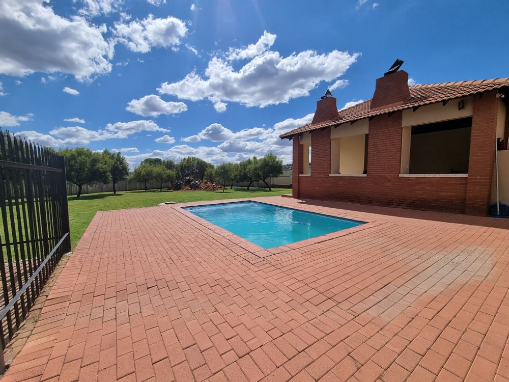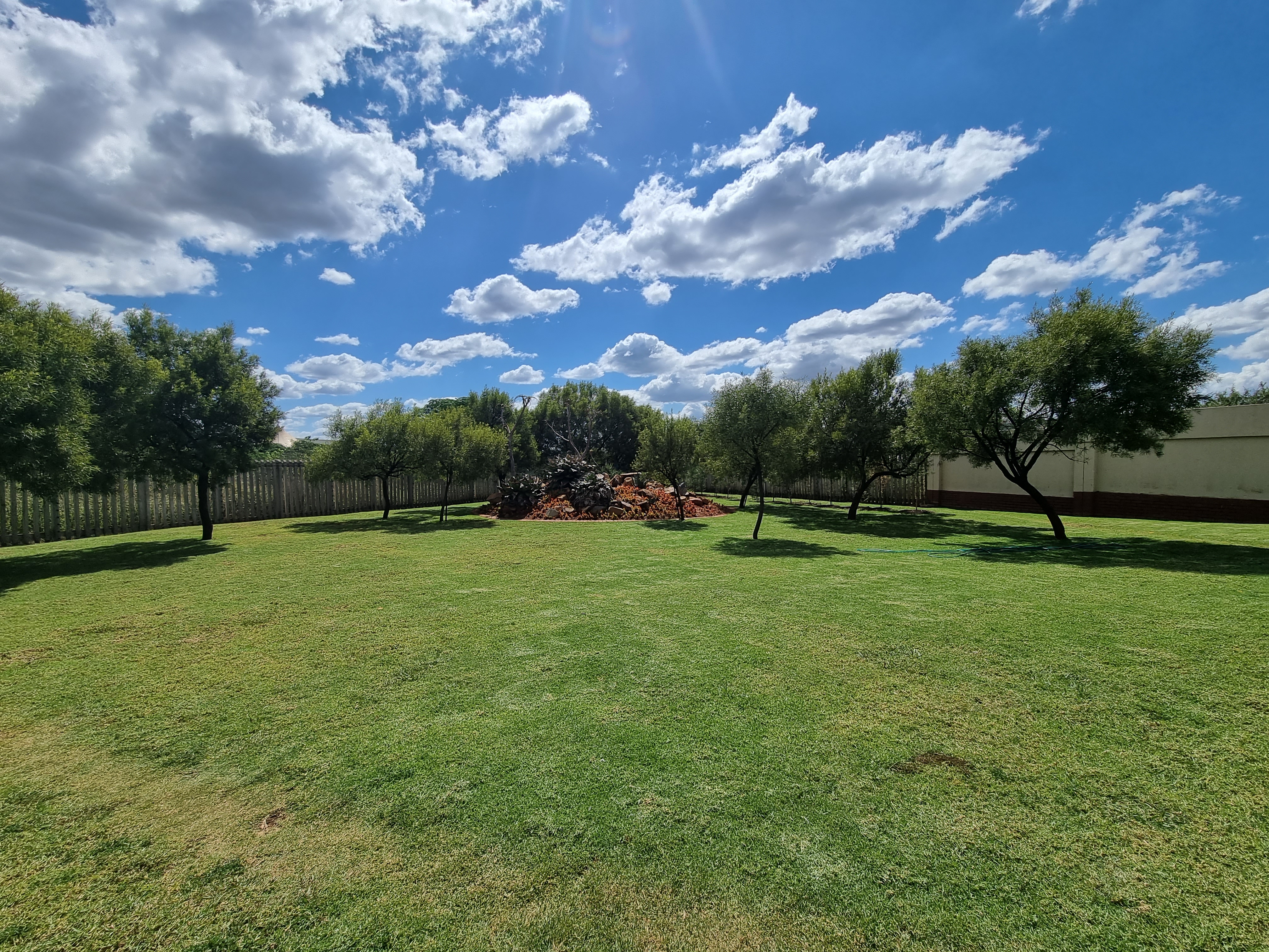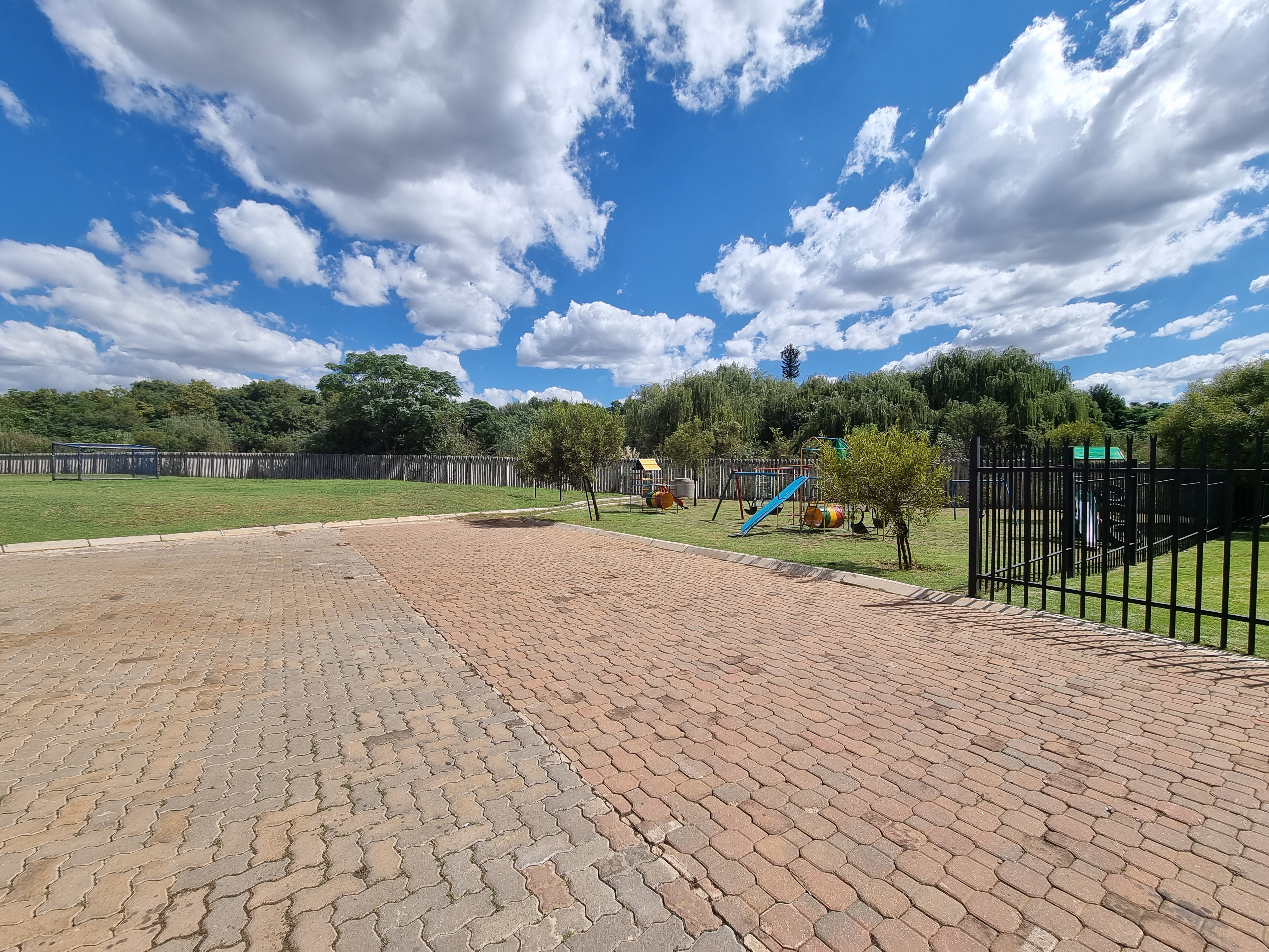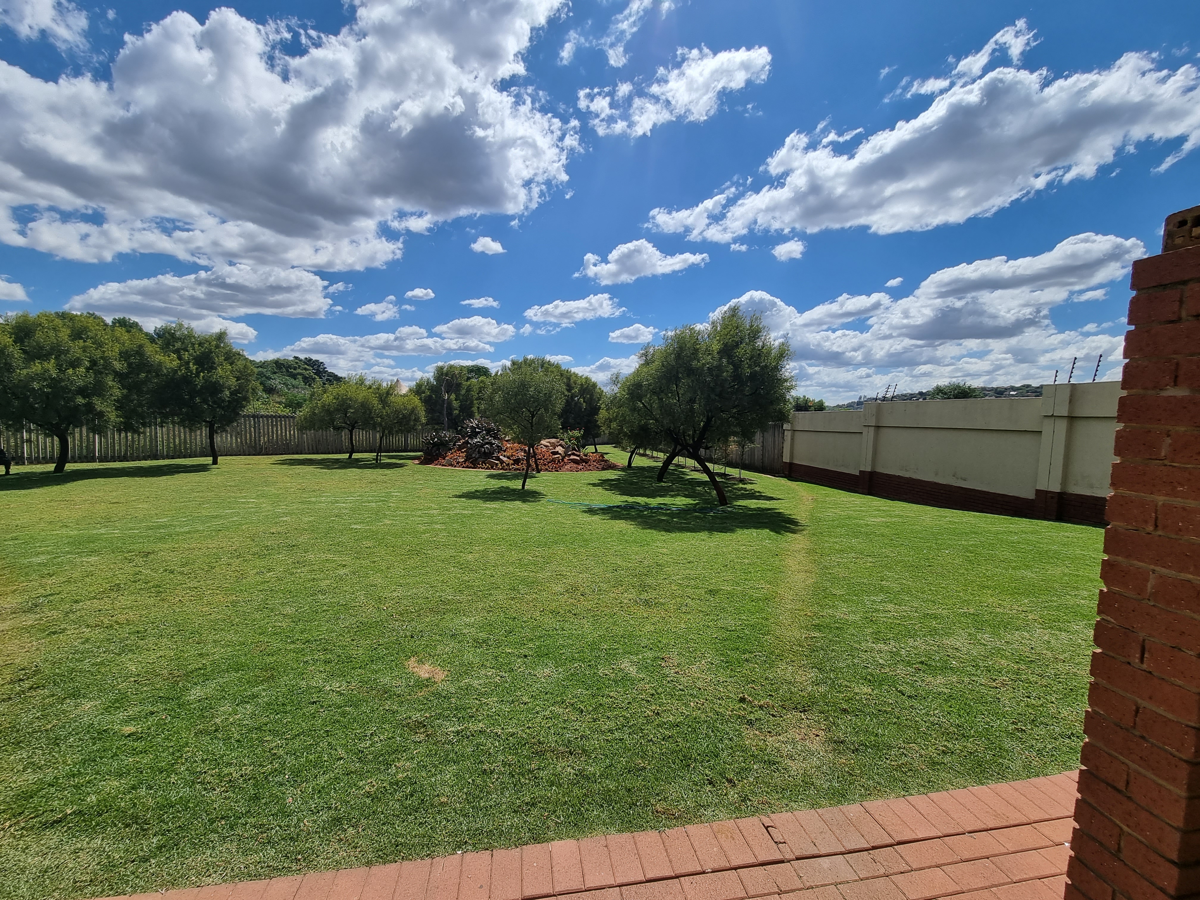 this gem offers douple carport parking and a spacious, private & well maintained garden. The Entertainment area in the Estate also offers fenced swimming pools, a braai area with built-in braais as well as braais on the grass next to the Clubhouse. With ample paved walkways with benches along the routes. Included is a Jungle Gyms and Swings adjacent the swimming pool area. With approximately 4 km of tar road within BLUE STREAM VILLAS as well as paved sidewalks you can enjoy taking a jog or cycling within the safety of the Estate. Excellent 24-hour security