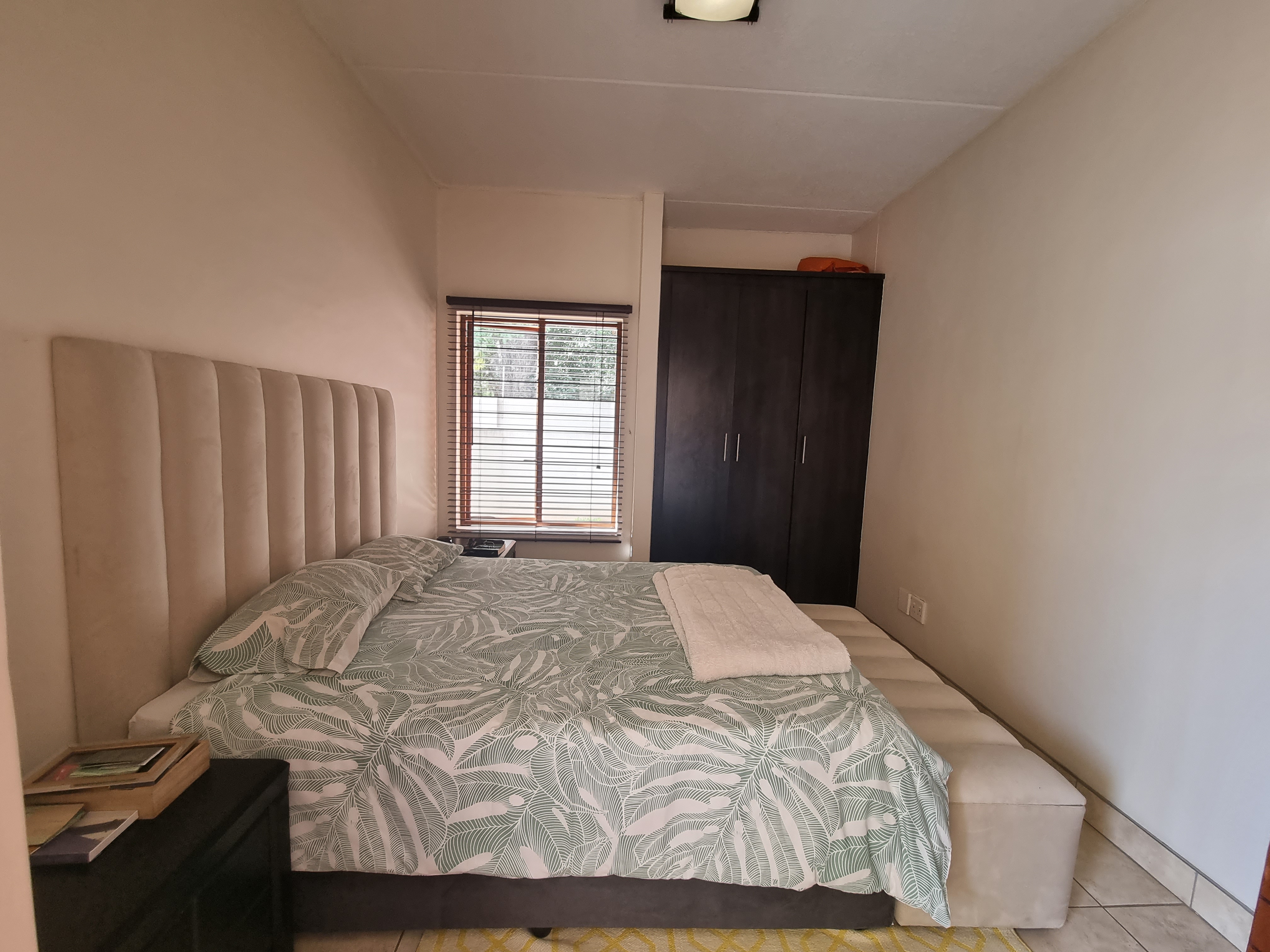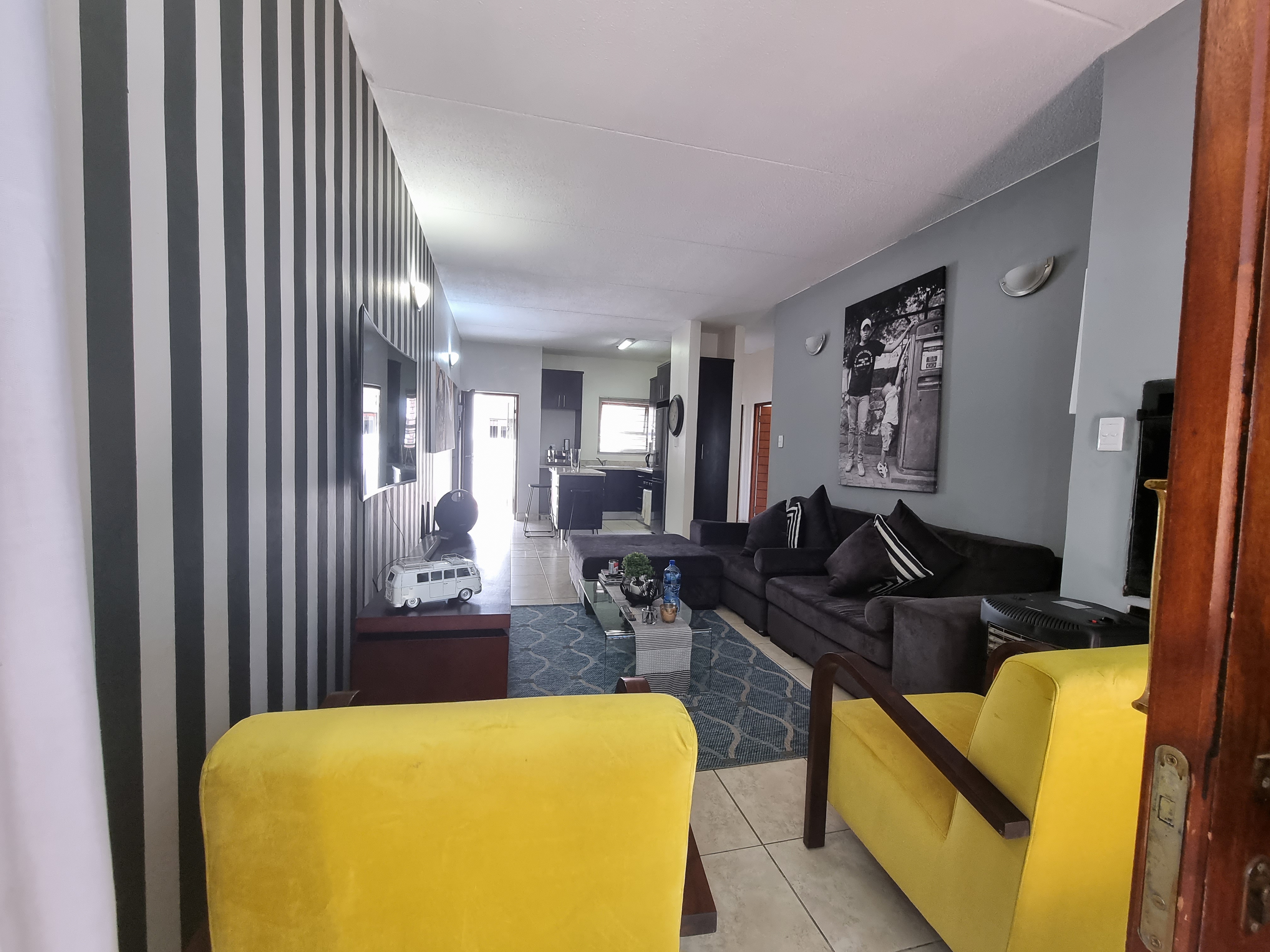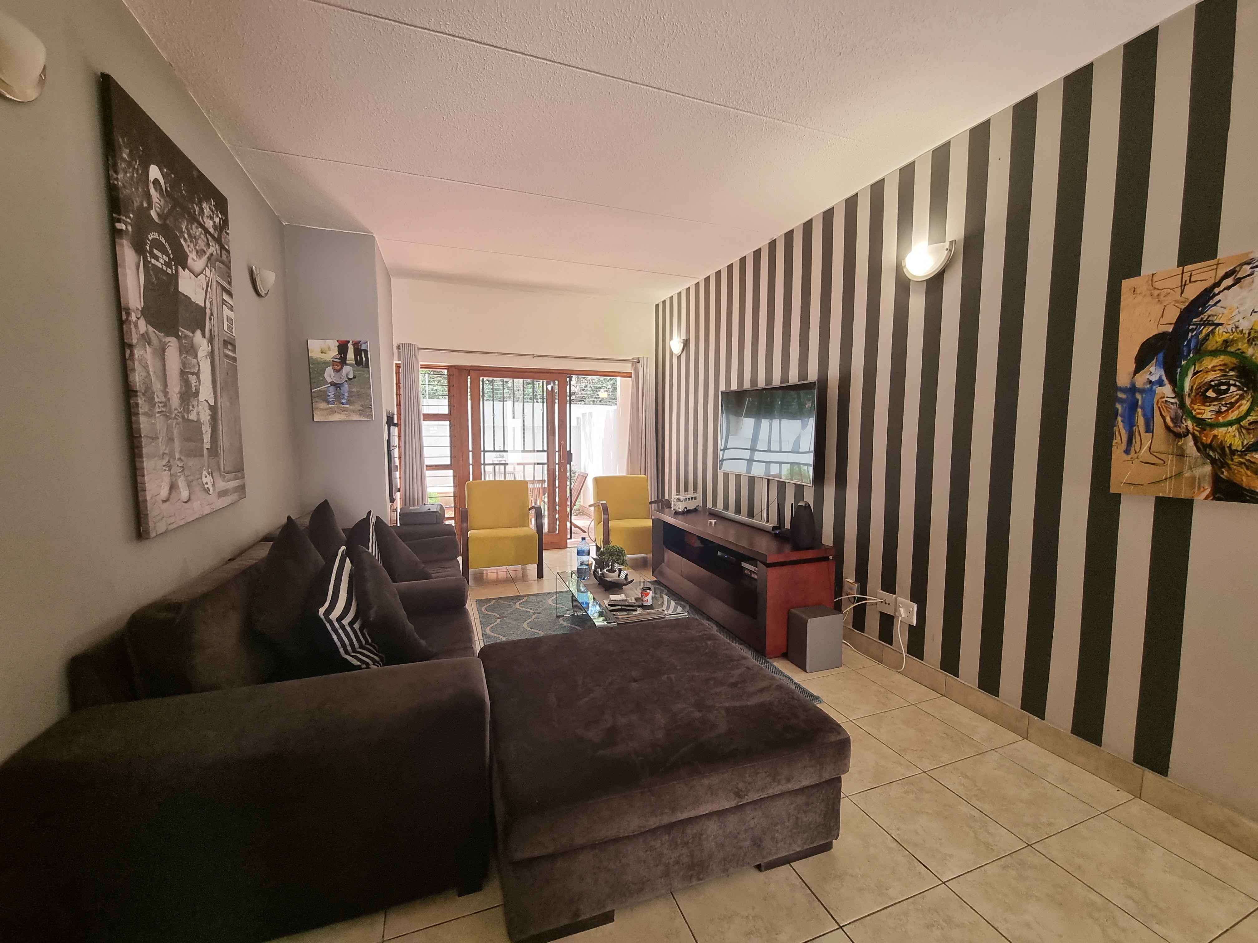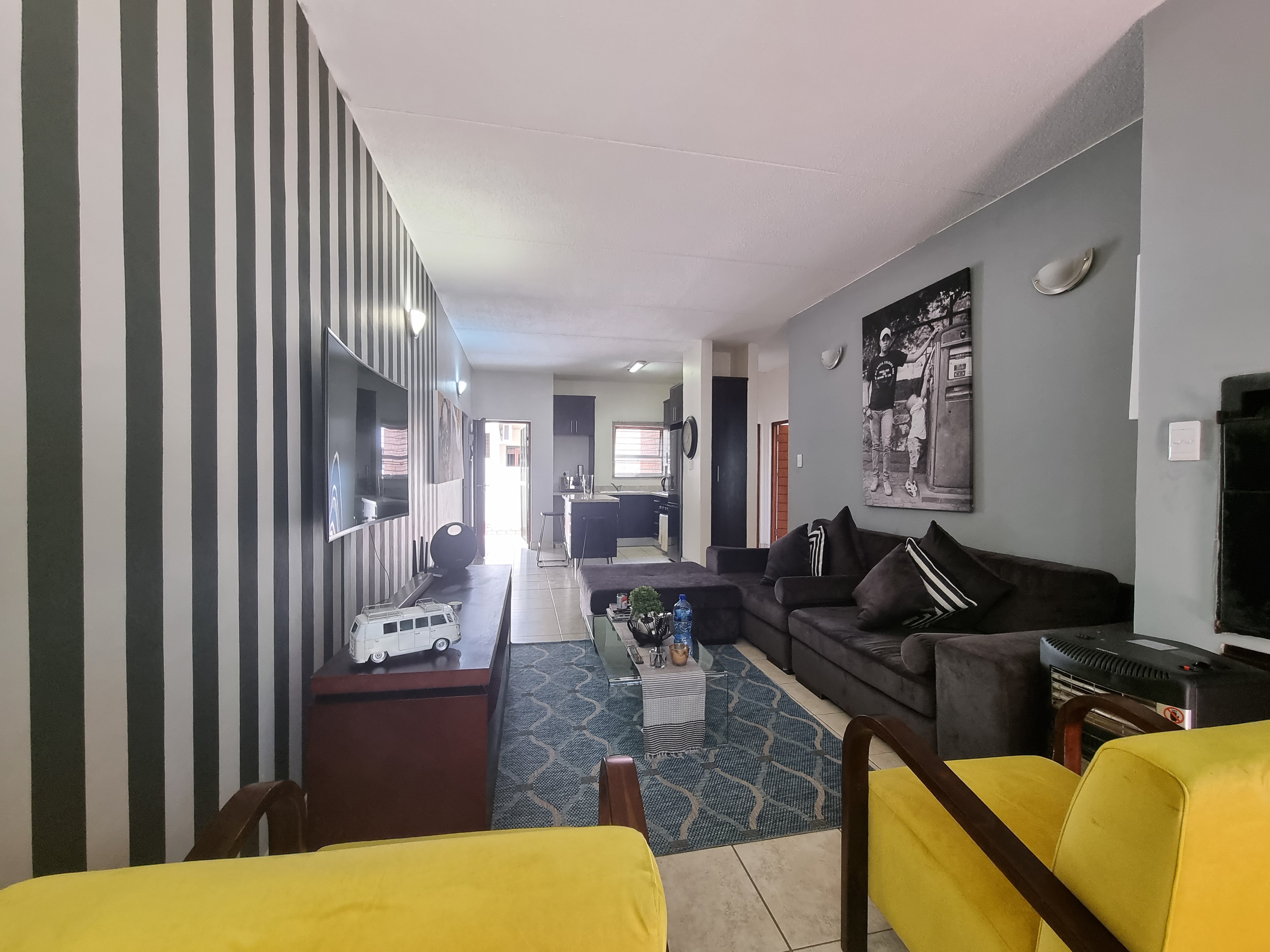 this gem offers douple carport parking and a spacious, private & well maintained garden. The Entertainment area in the Estate also offers fenced swimming pools, a braai area with built-in braais as well as braais on the grass next to the Clubhouse. With ample paved walkways with benches along the routes. Included is a Jungle Gyms and Swings adjacent the swimming pool area. With approximately 4 km of tar road within BLUE STREAM VILLAS as well as paved sidewalks you can enjoy taking a jog or cycling within the safety of the Estate. Excellent 24-hour security