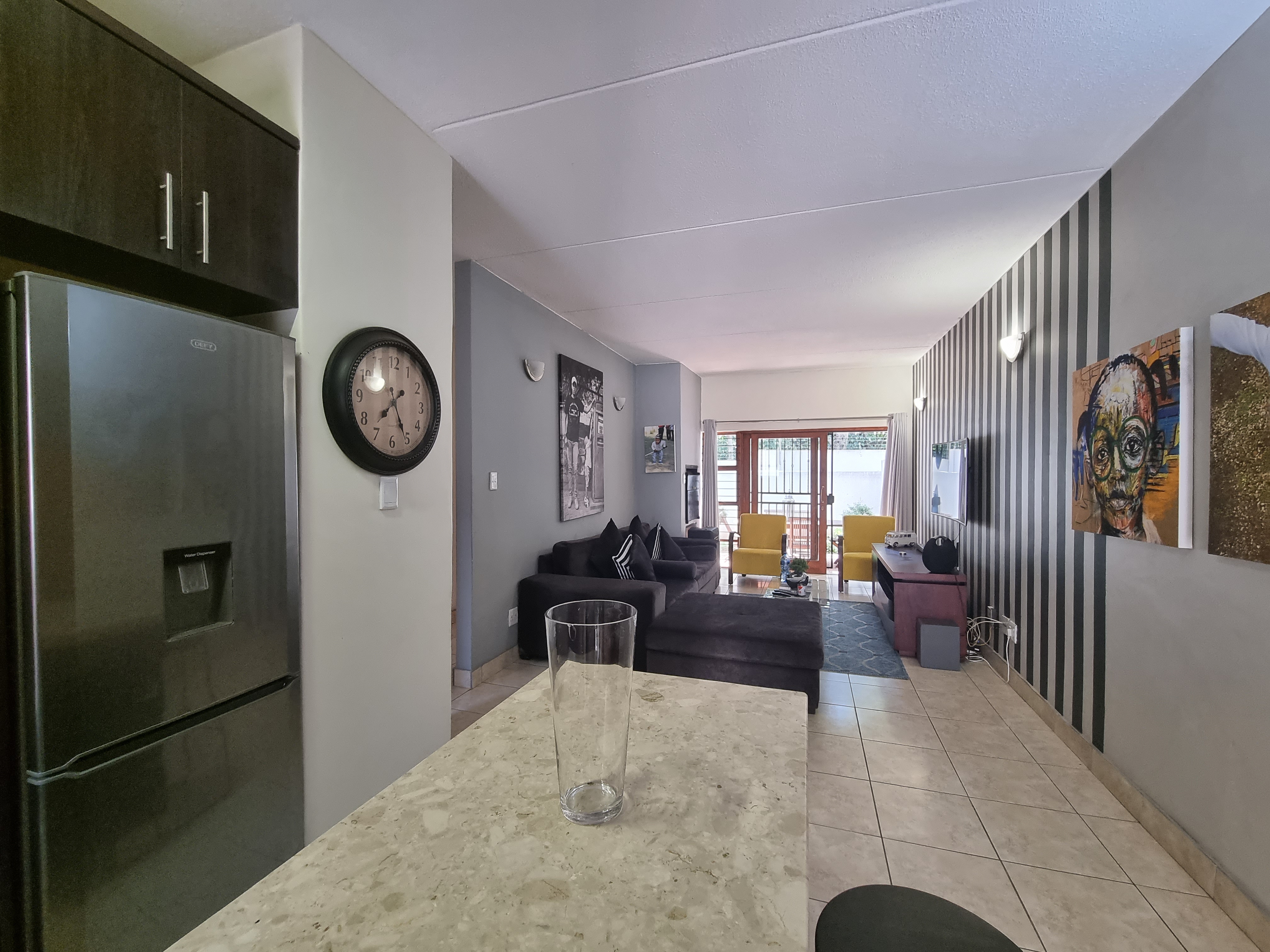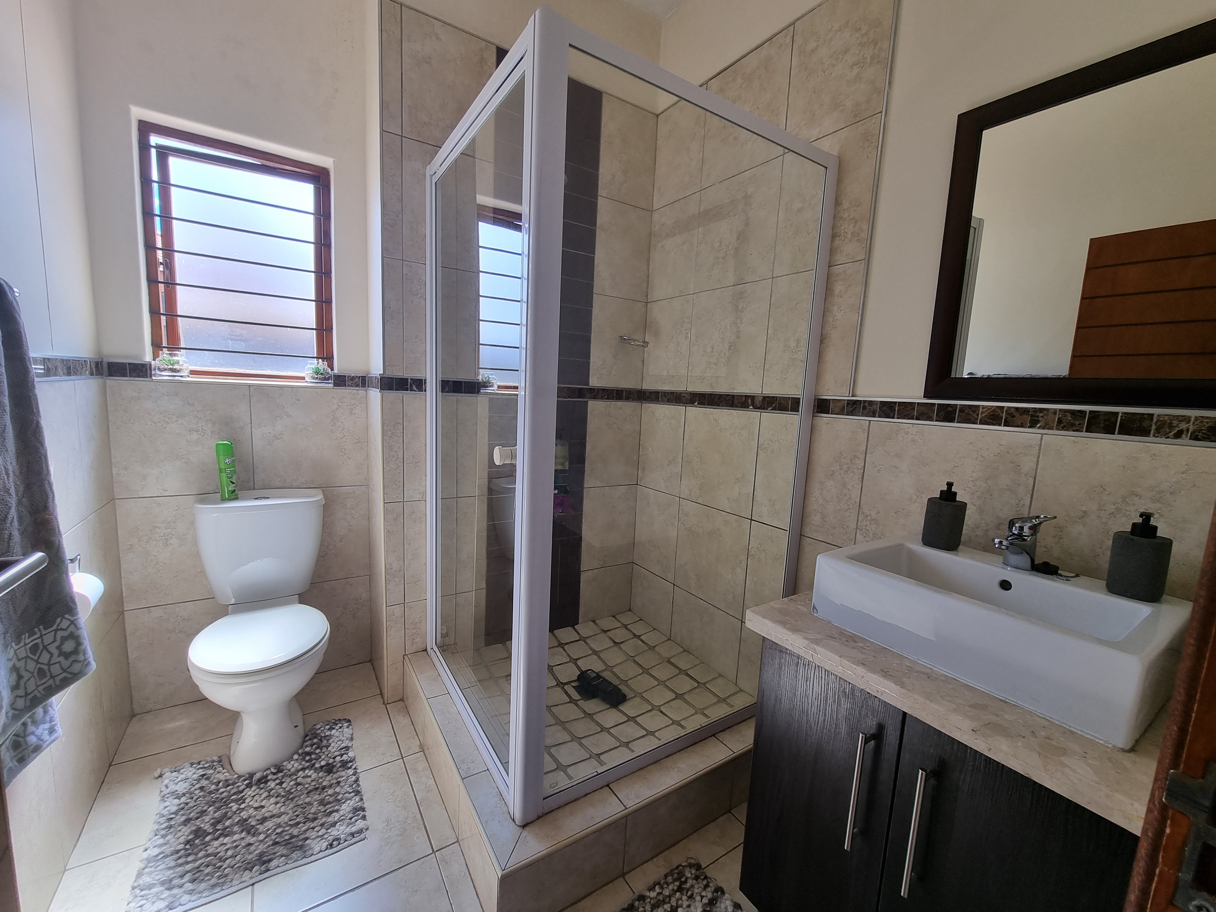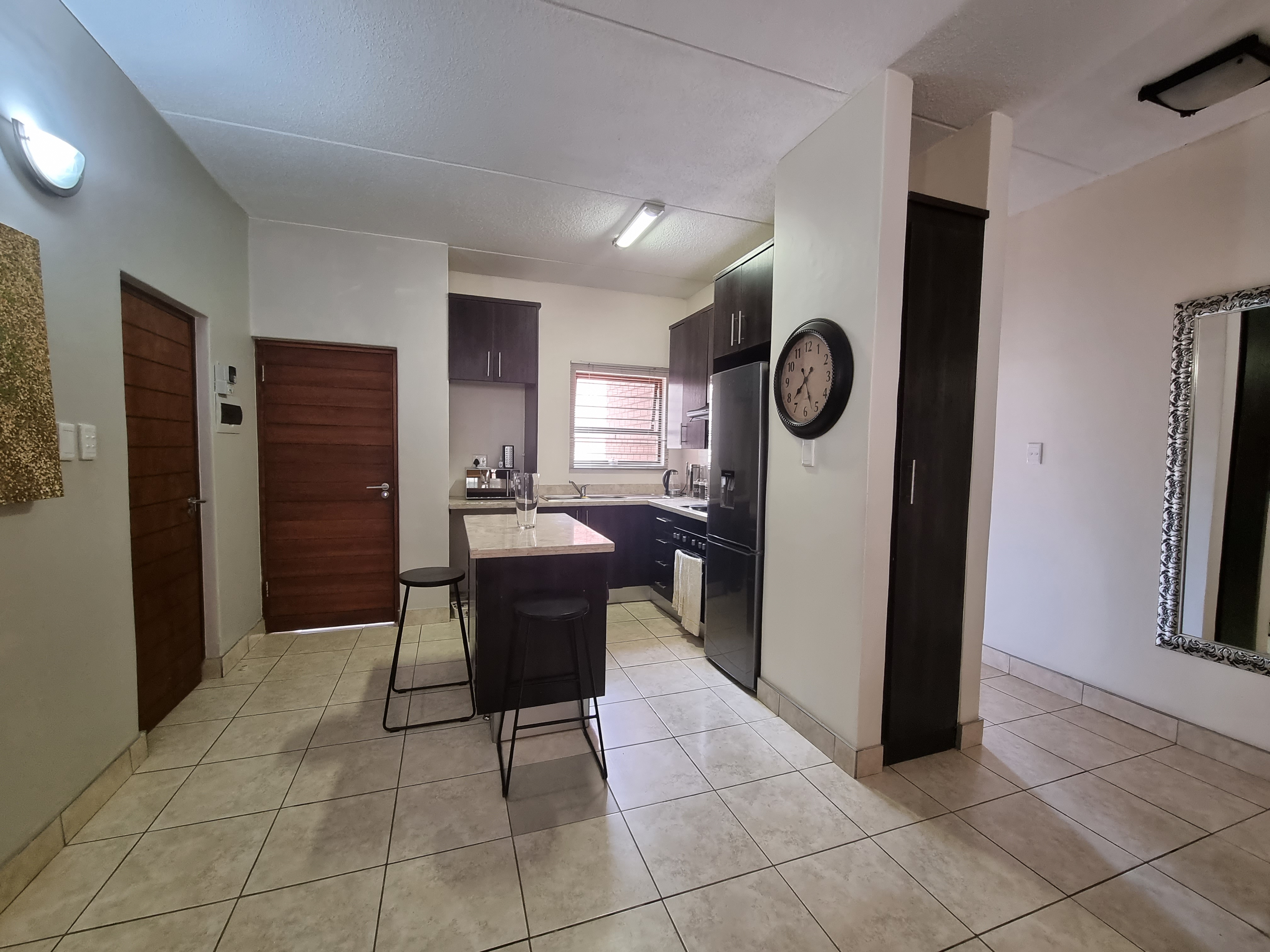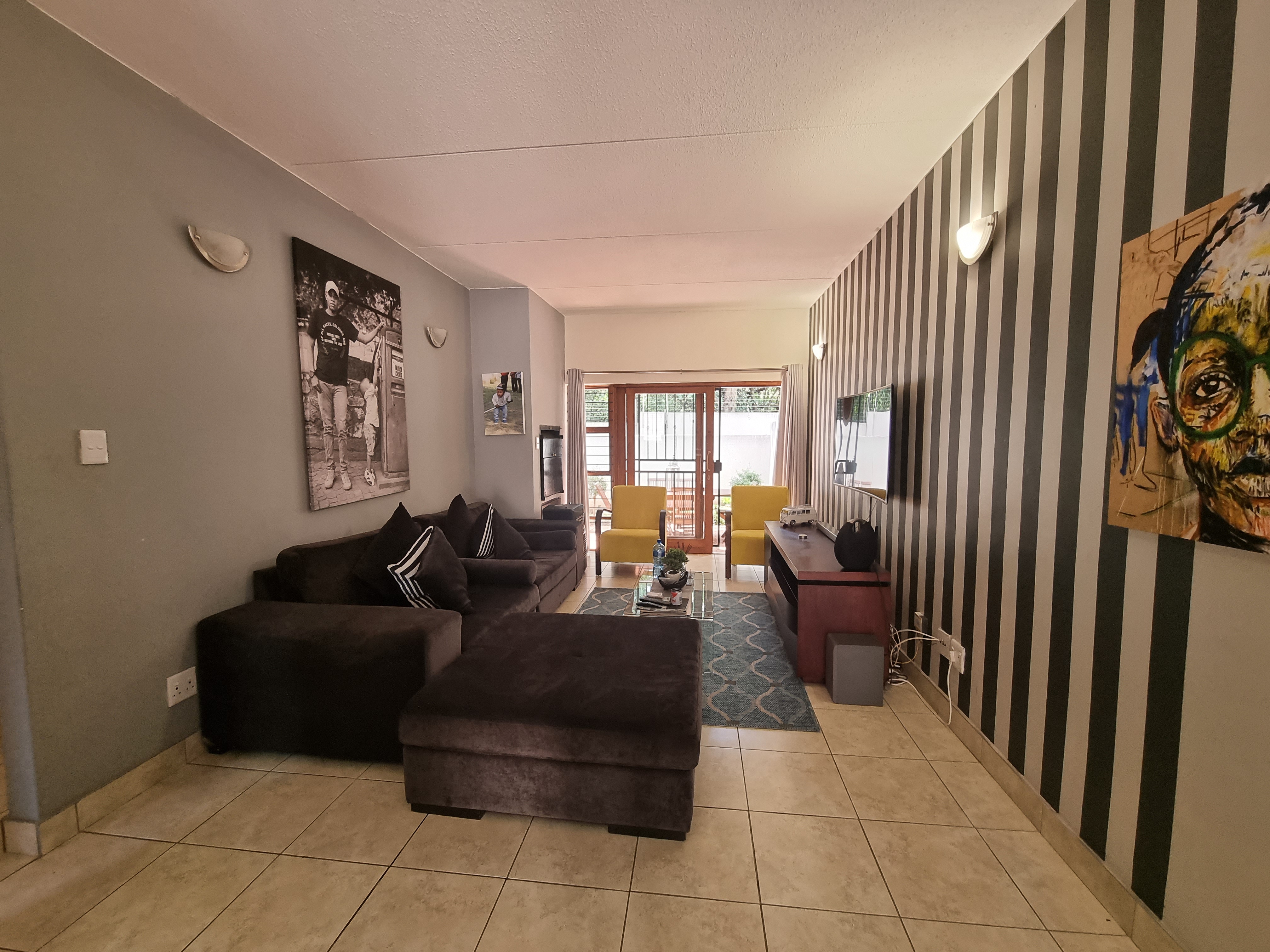 this gem offers douple carport parking and a spacious, private & well maintained garden. The Entertainment area in the Estate also offers fenced swimming pools, a braai area with built-in braais as well as braais on the grass next to the Clubhouse. With ample paved walkways with benches along the routes. Included is a Jungle Gyms and Swings adjacent the swimming pool area. With approximately 4 km of tar road within BLUE STREAM VILLAS as well as paved sidewalks you can enjoy taking a jog or cycling within the safety of the Estate. Excellent 24-hour security