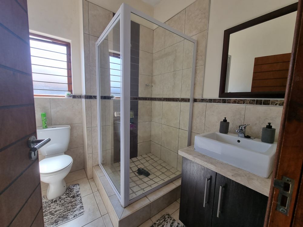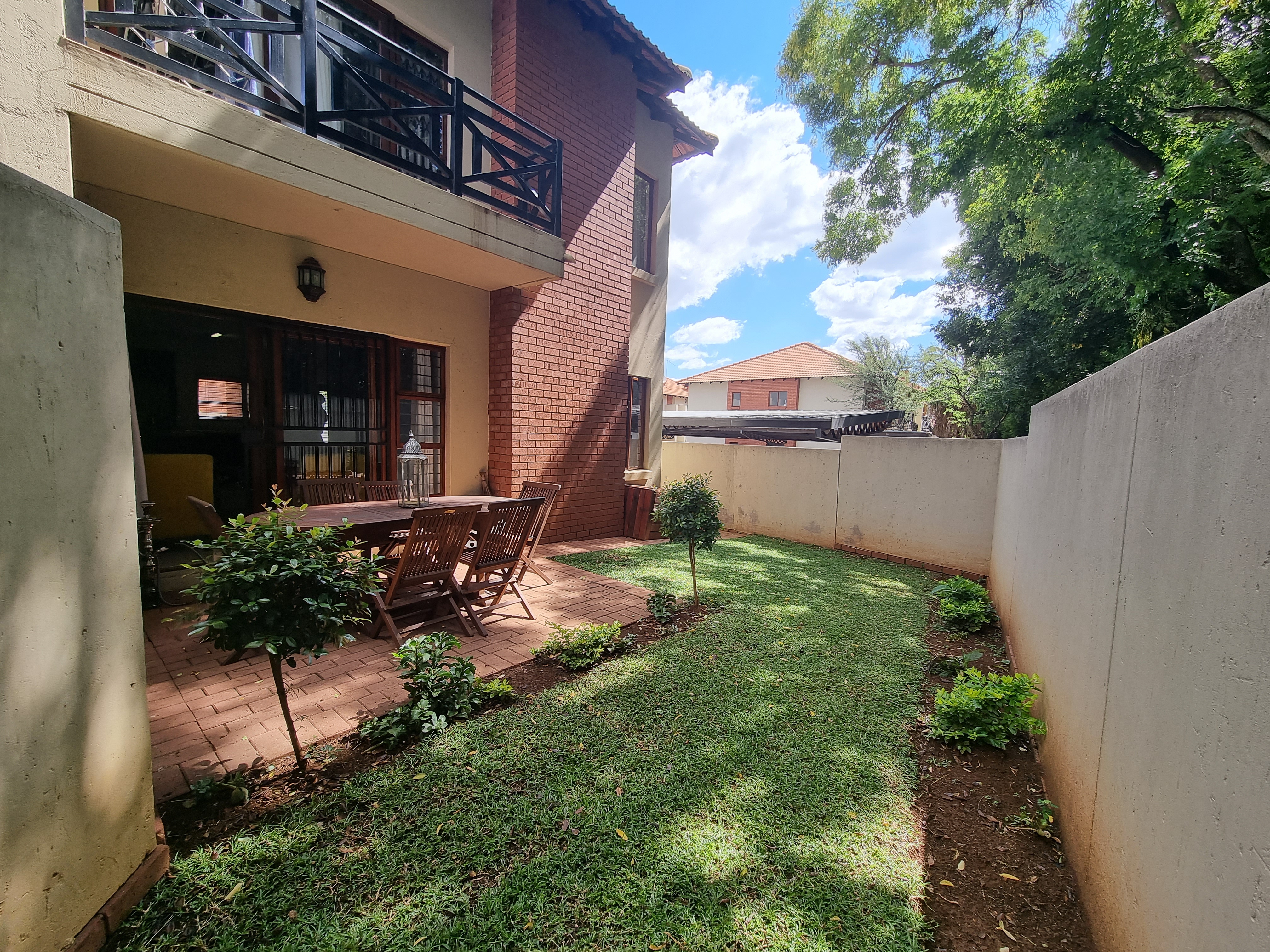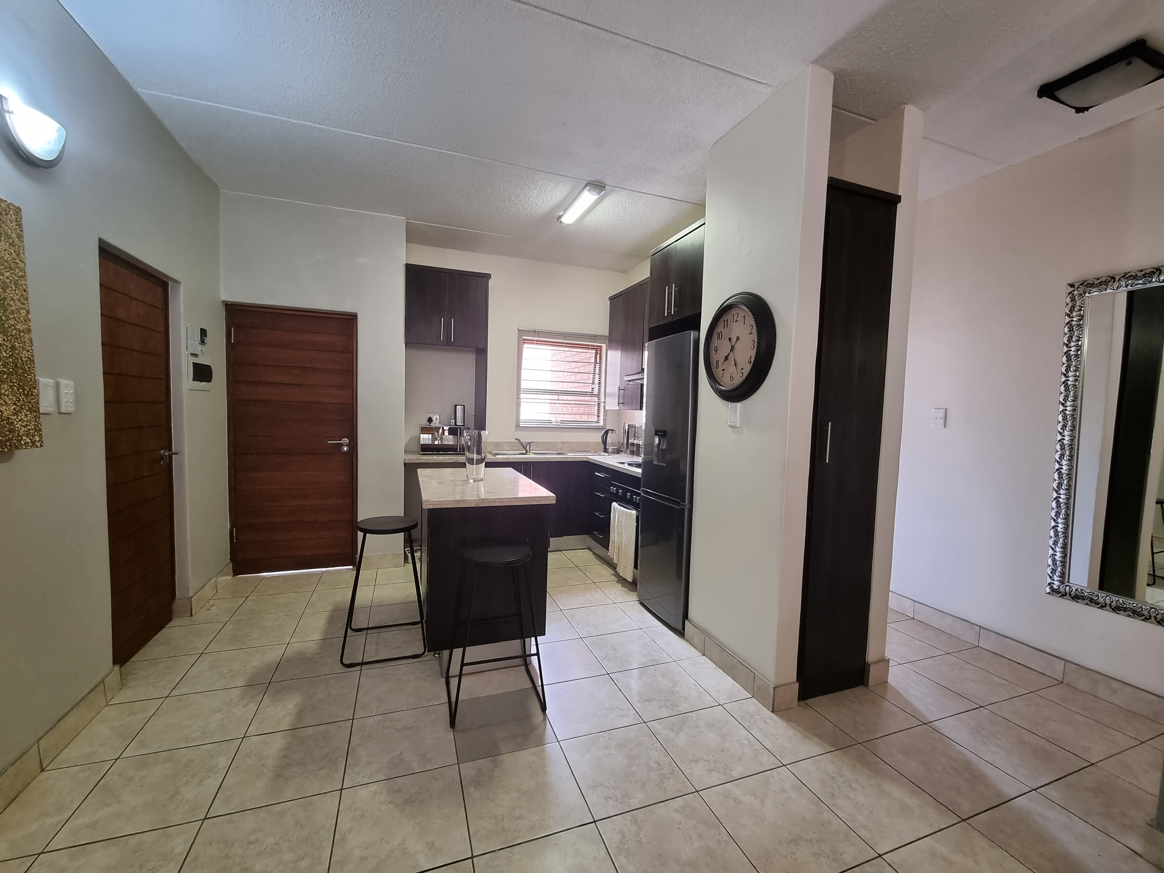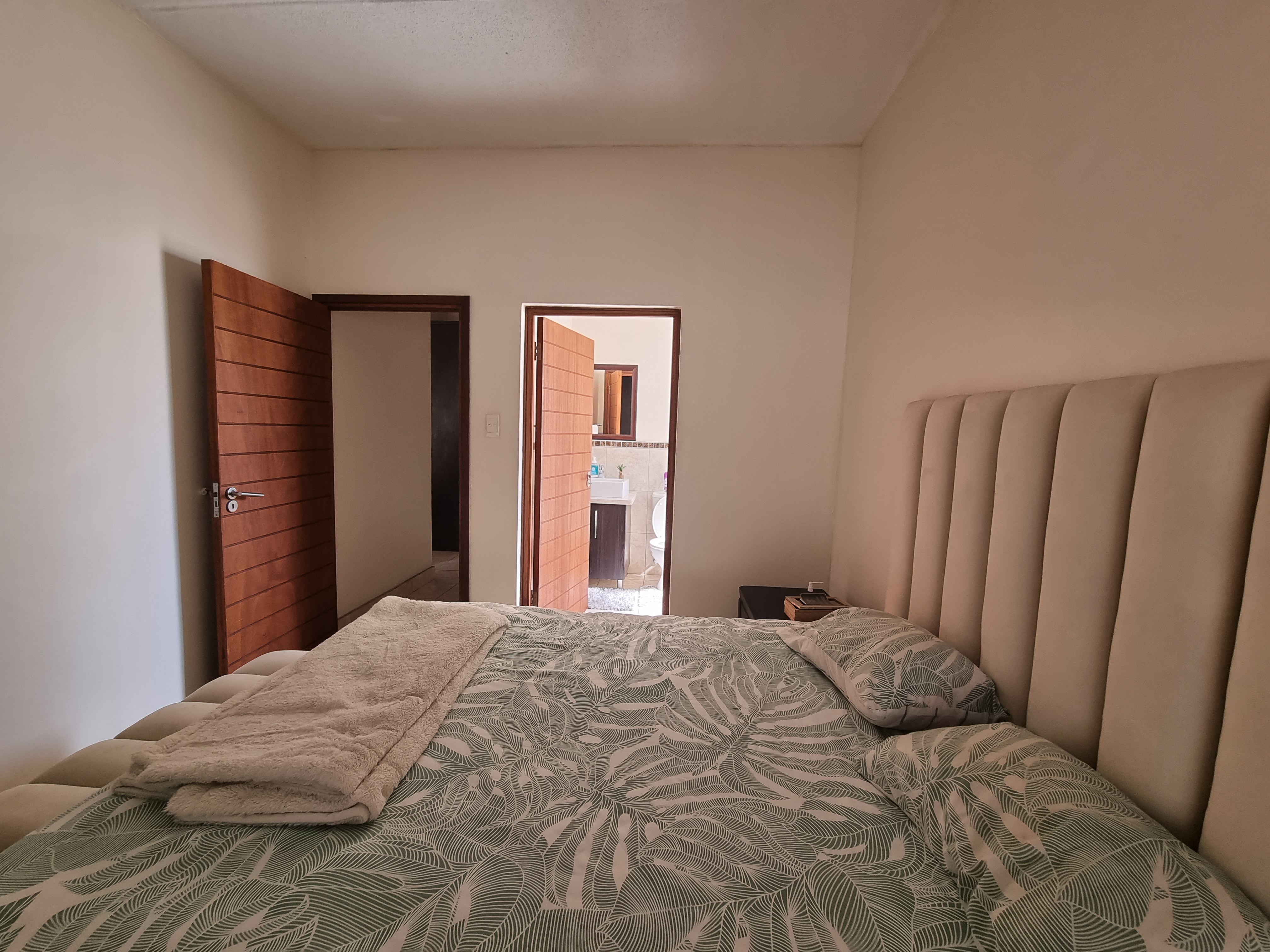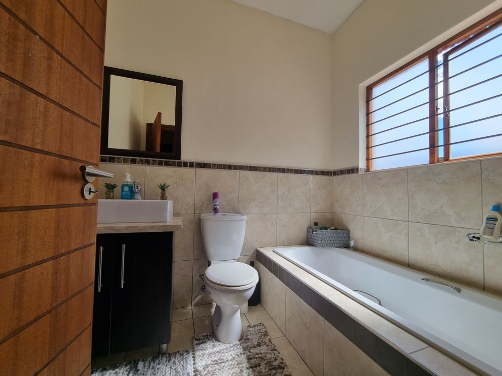 this gem offers douple carport parking and a spacious, private & well maintained garden. The Entertainment area in the Estate also offers fenced swimming pools, a braai area with built-in braais as well as braais on the grass next to the Clubhouse. With ample paved walkways with benches along the routes. Included is a Jungle Gyms and Swings adjacent the swimming pool area. With approximately 4 km of tar road within BLUE STREAM VILLAS as well as paved sidewalks you can enjoy taking a jog or cycling within the safety of the Estate. Excellent 24-hour security