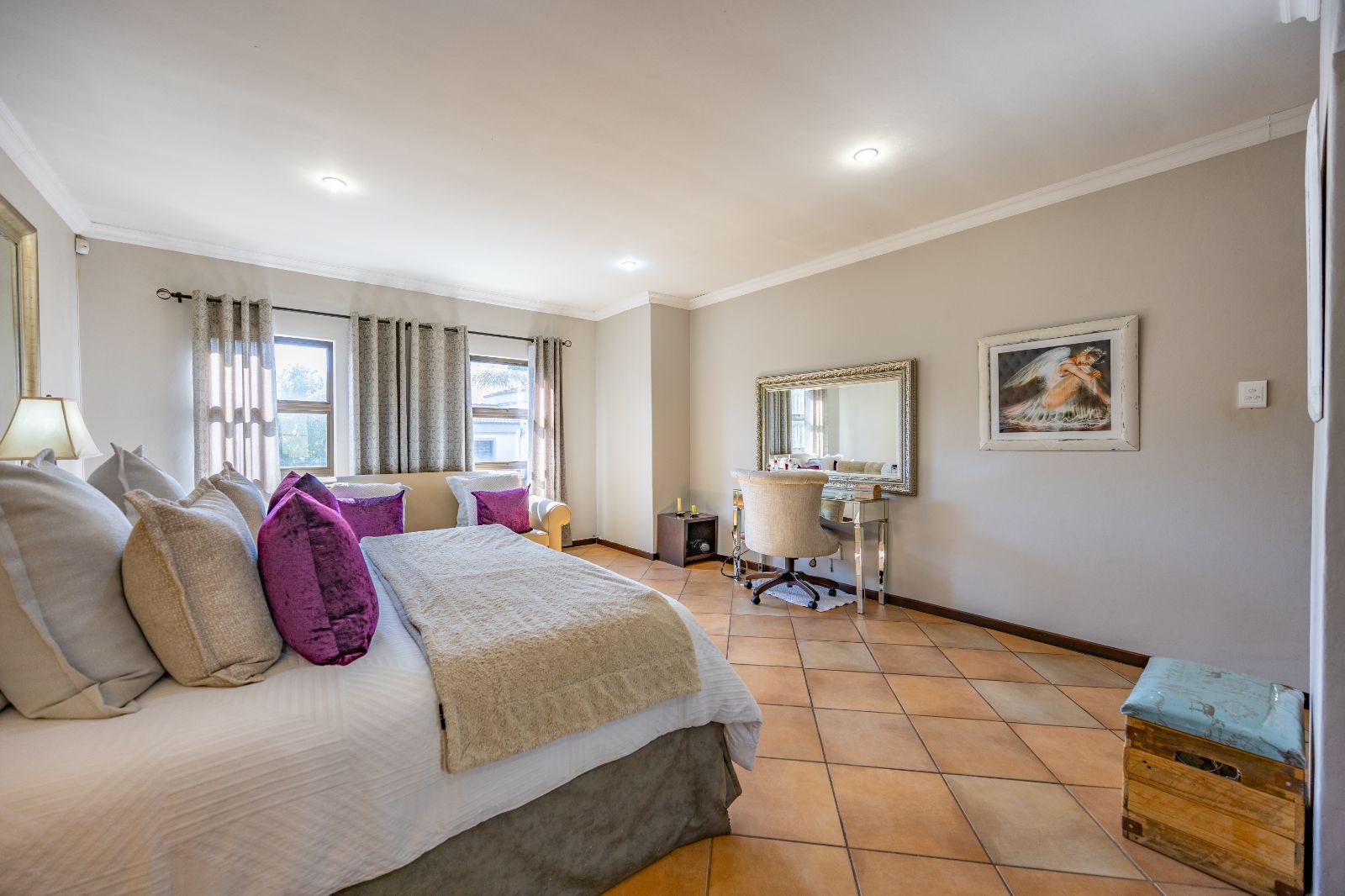 Downstairs, the fourth bedroom is ideal for guests, offering privacy and its own bathroom.