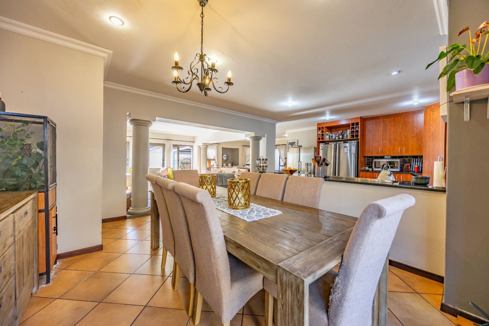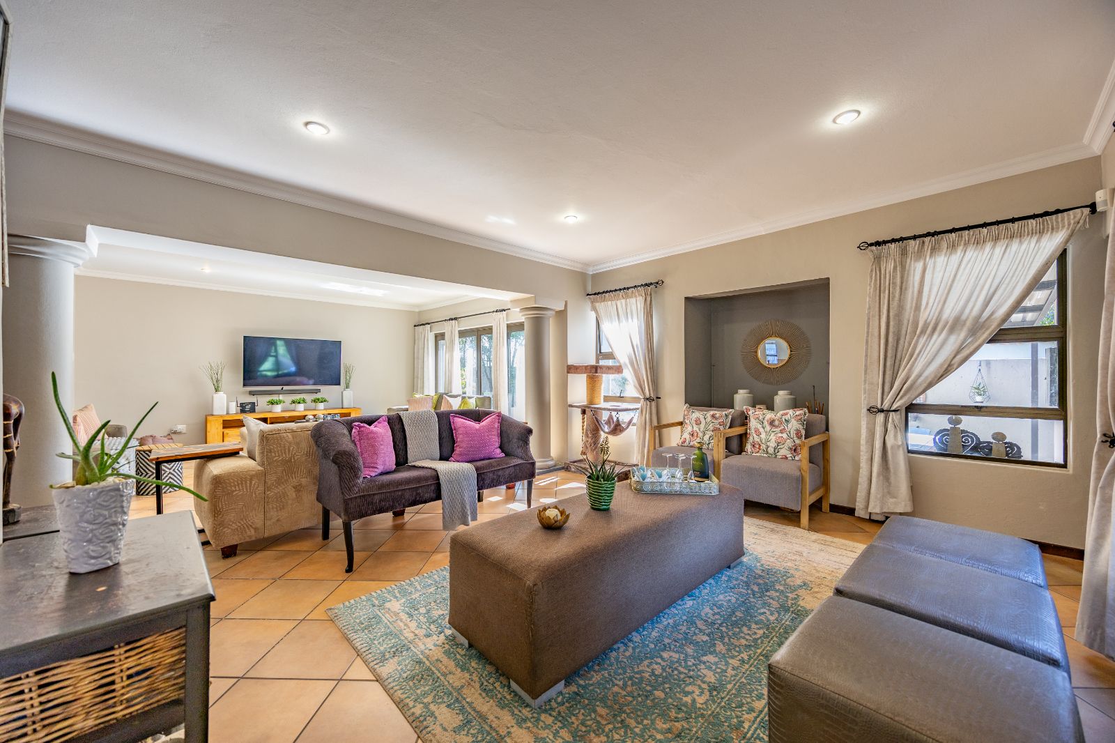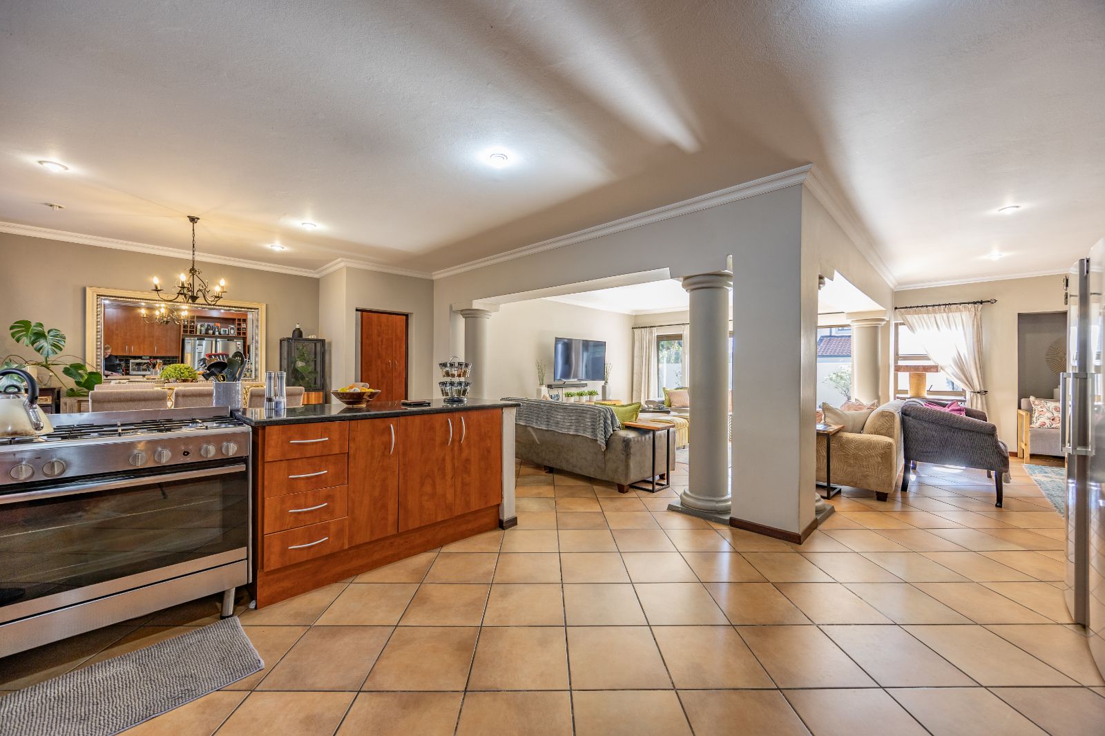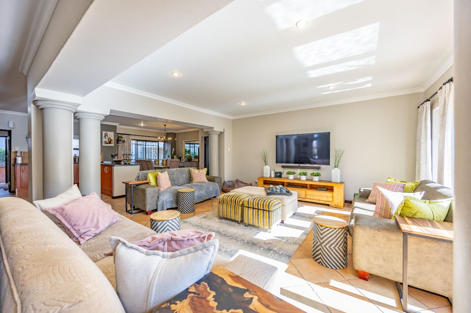 This spacious, light-filled family home is tucked inside the secure Mooikloof Gardens estate, located in the peaceful suburb of Pretoriuspark. With its Tuscan-inspired architecture and warm, welcoming design, this property offers a lifestyle of comfort, elegance, and flexibility.