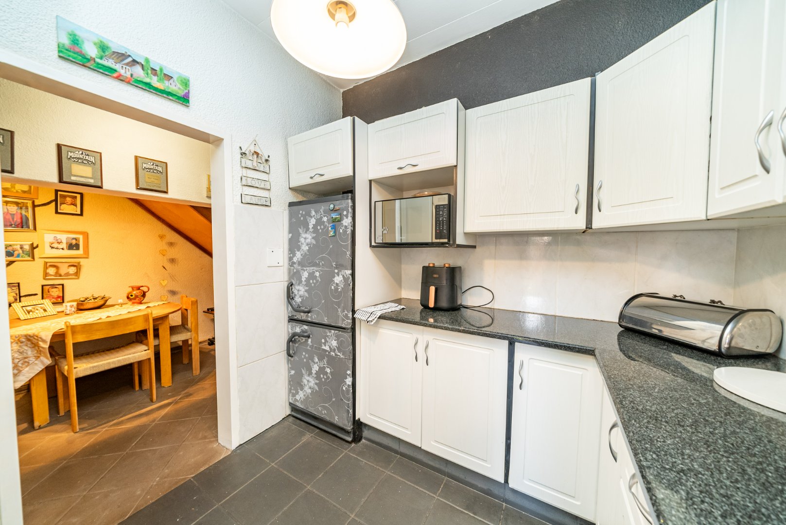 The well-appointed kitchen boasts granite countertops, ample cupboard space, a built-in oven and hob, and leads out to a secure courtyard—ideal for your potted plants, laundry, or refuse.