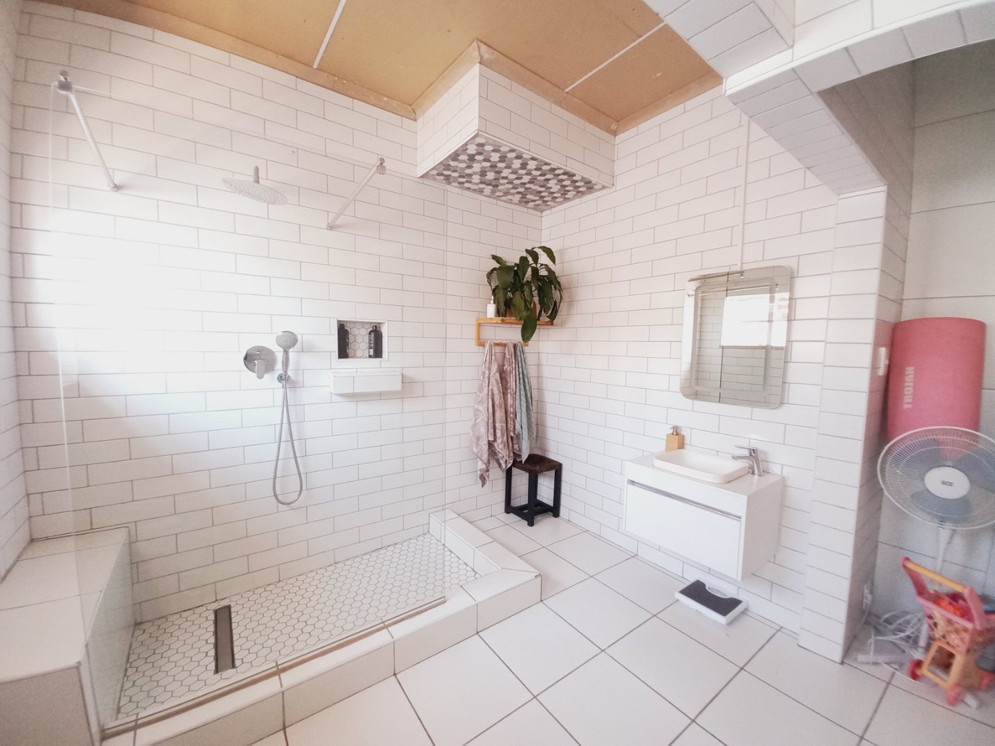 Third bedroom tiled with built-in cupboards and private en-suite bathroom (shower, basin, toilet)