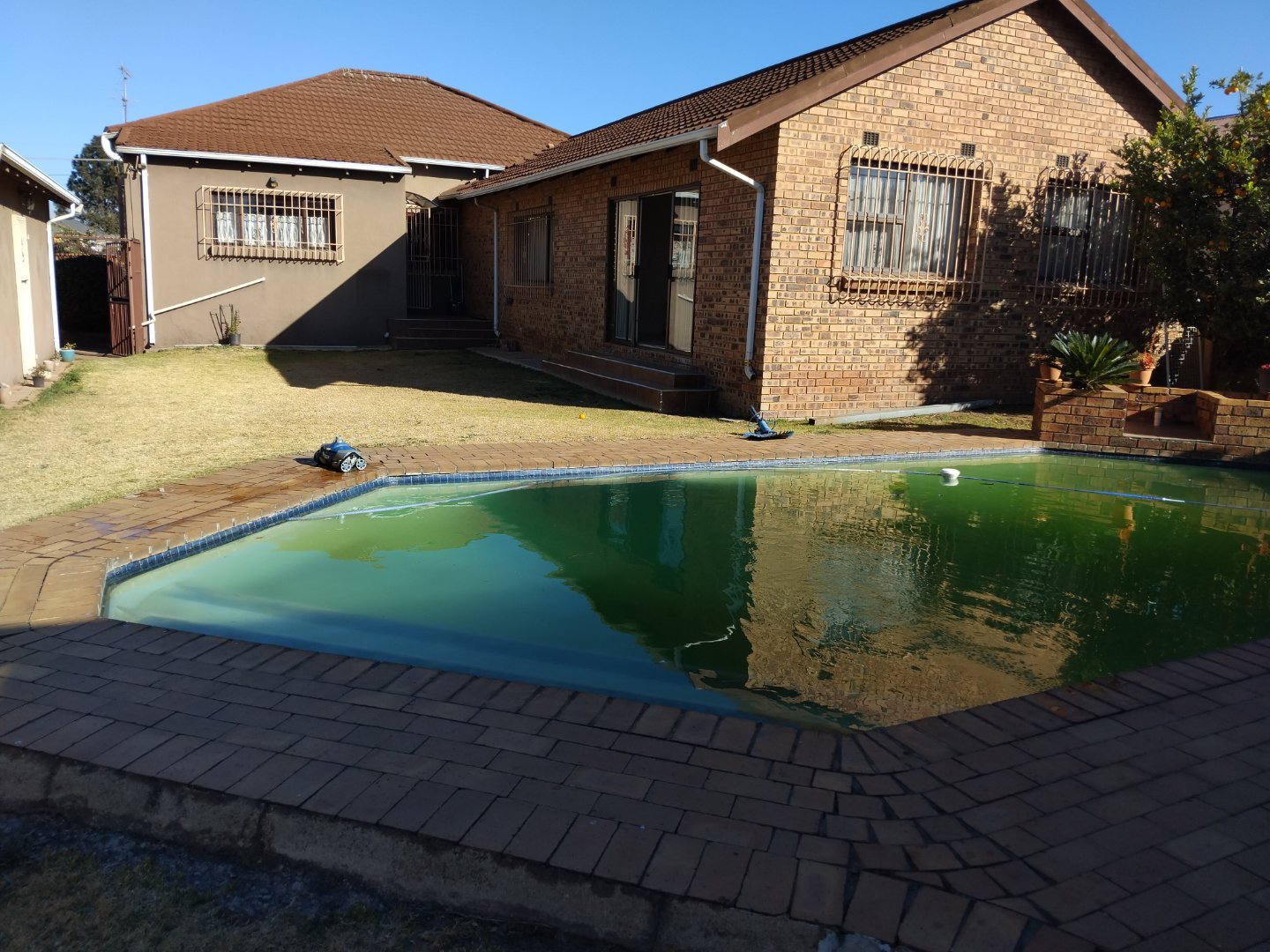 This well-sized 4-bedroom home on a 991 m2 stand offers ample space for family living. It includes a lounge, family room, study, and two bathrooms. The neat, compact kitchen is functional and practical. Outdoor features include a swimming pool, braai area, and a large stand, perfect for entertaining or relaxing. The property also has a fully independent cottage, a double garage with drive-through access to a double carport, and a reliable backup inverter system. Security features include automated gates and an alarm system for added peace of mind.