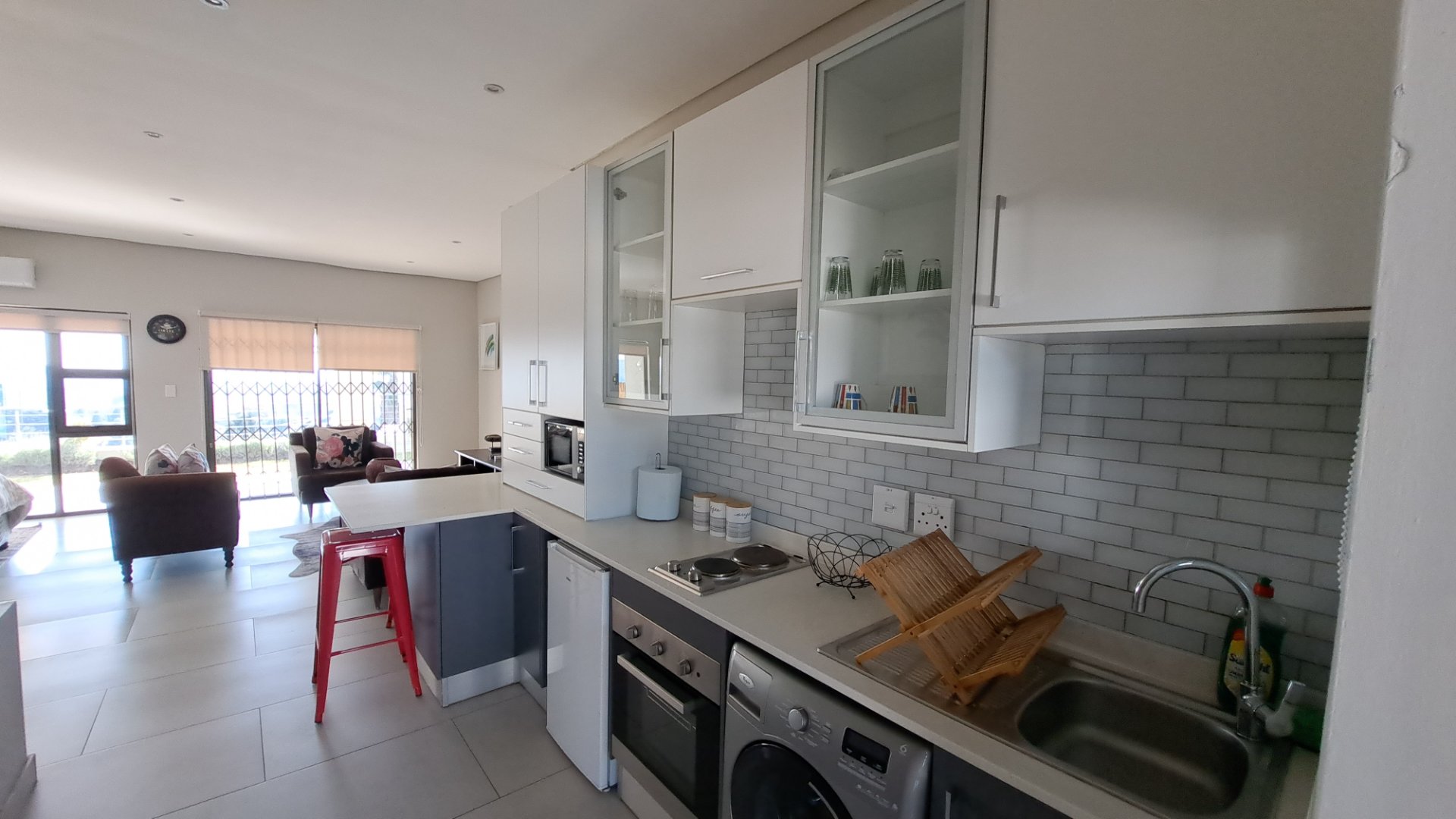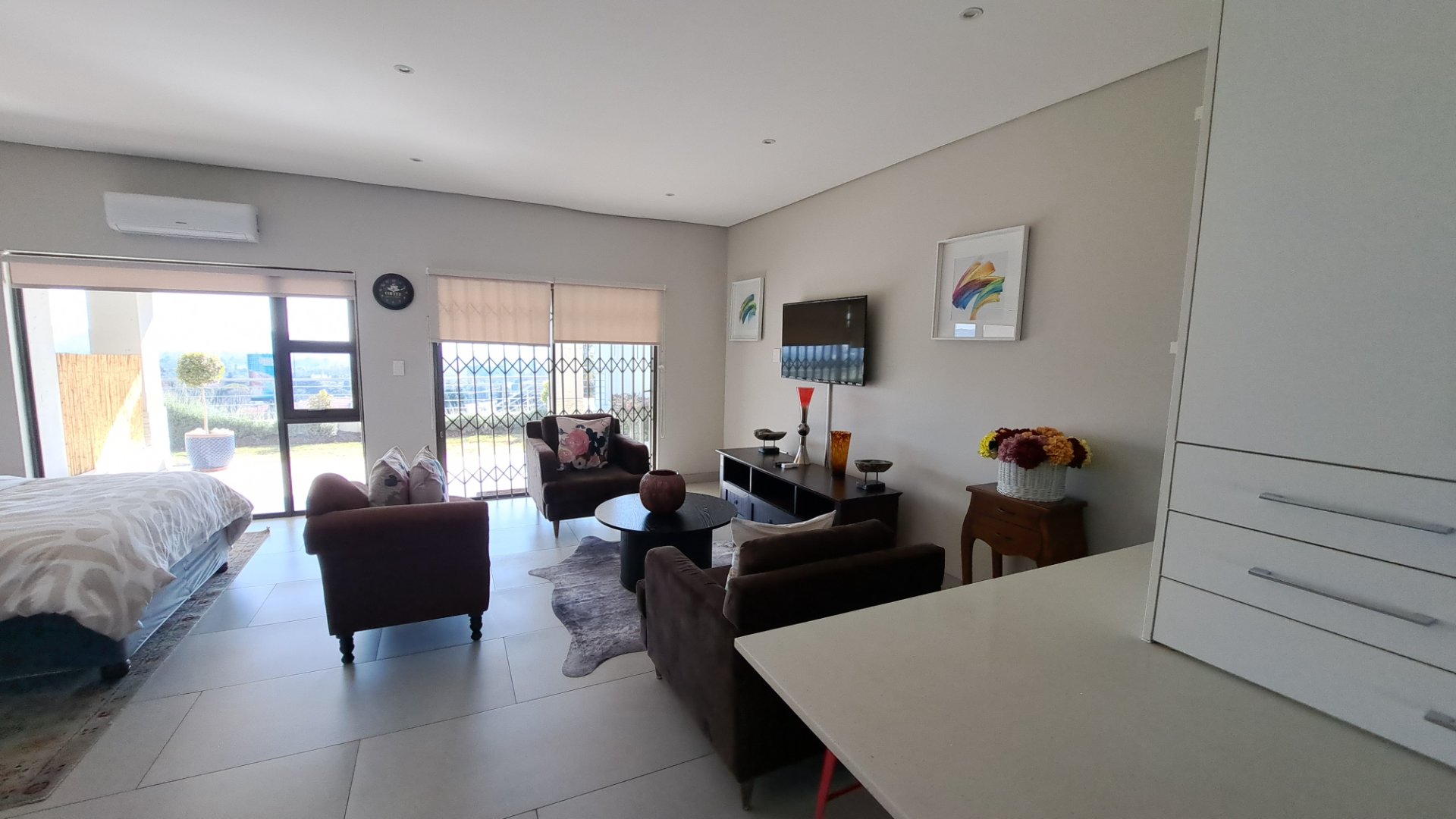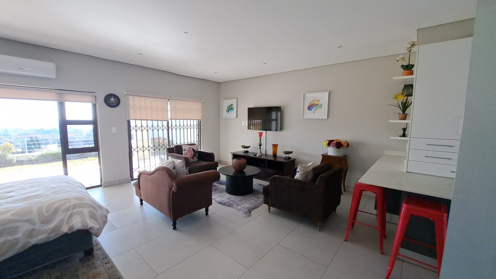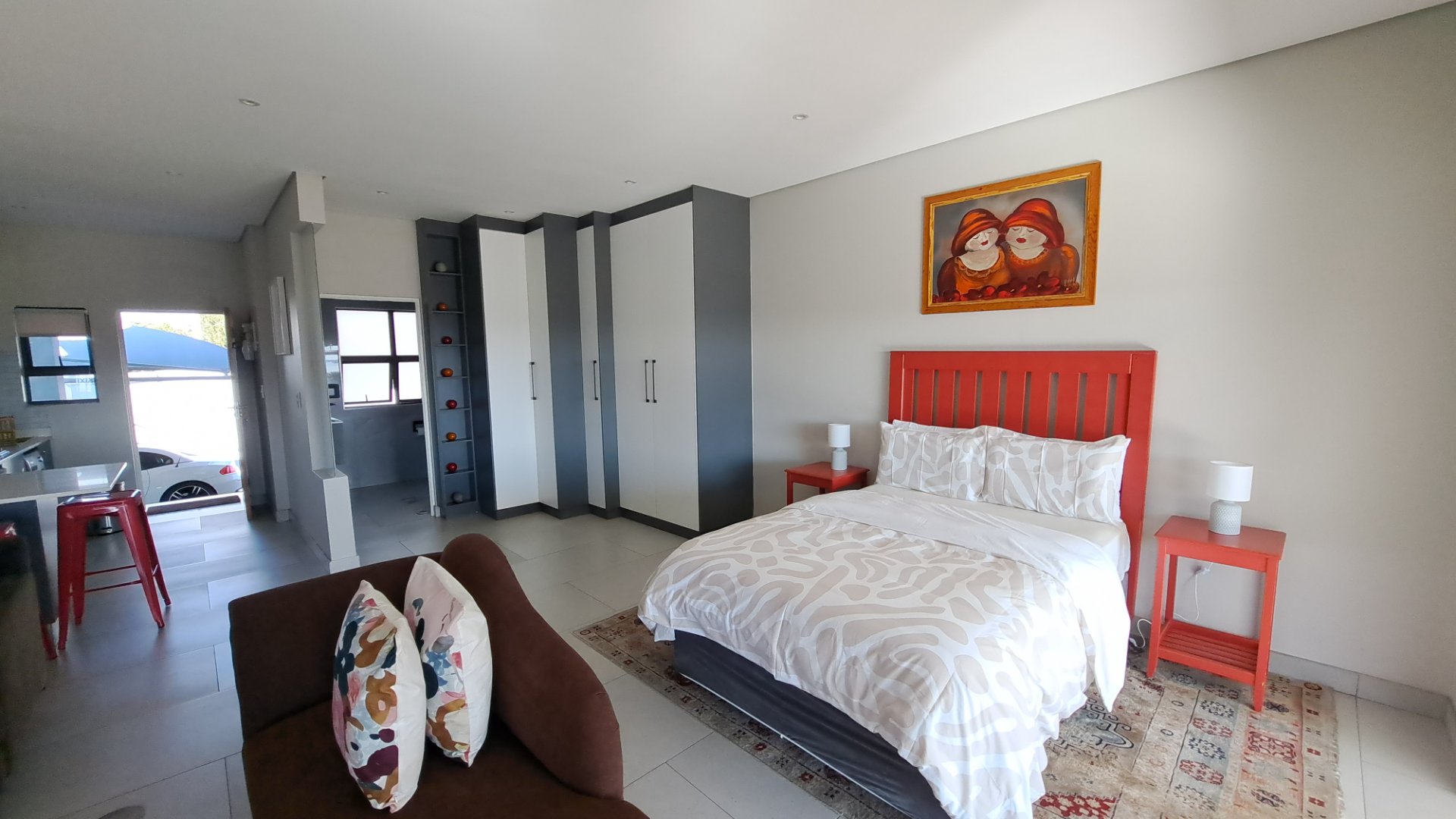 This fully furnished apartment features an open-plan layout with one bedroom, a lounge, and a kitchen, leading out to a covered patio and private garden. It includes a separate bathroom with a shower only. Additional amenities include prepaid electricity and water, a solar power system, and one covered carport. Located in a secure, fully enclosed complex, just five minutes from Bedfordview shopping centres.