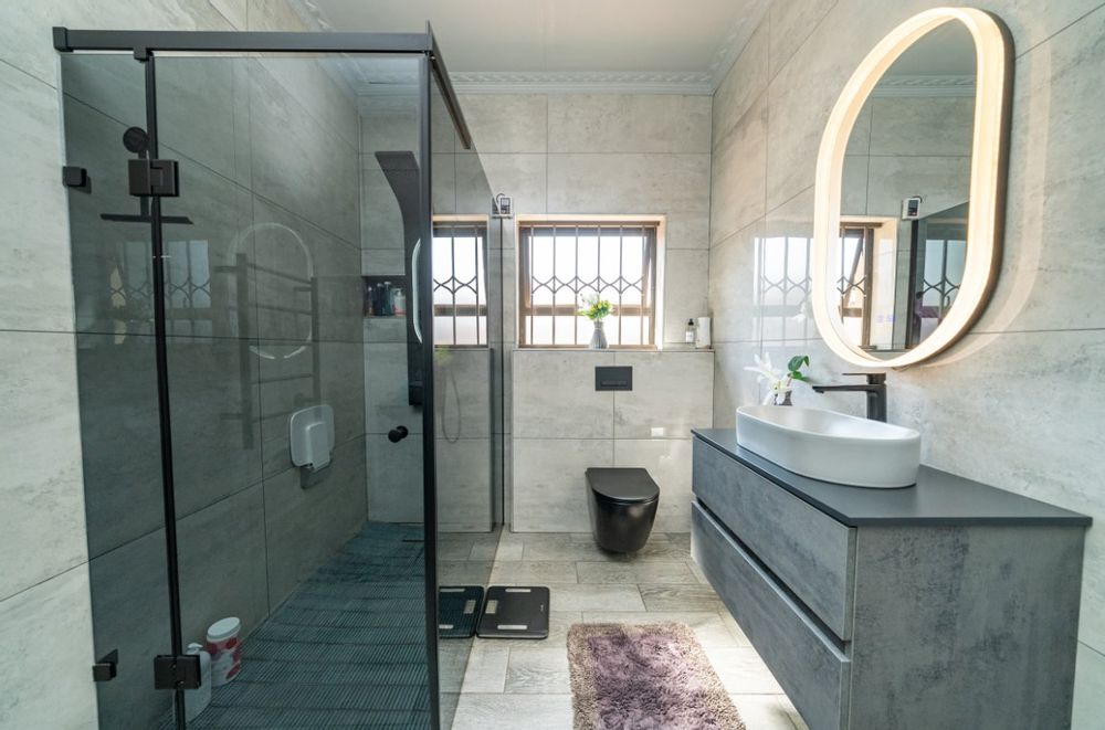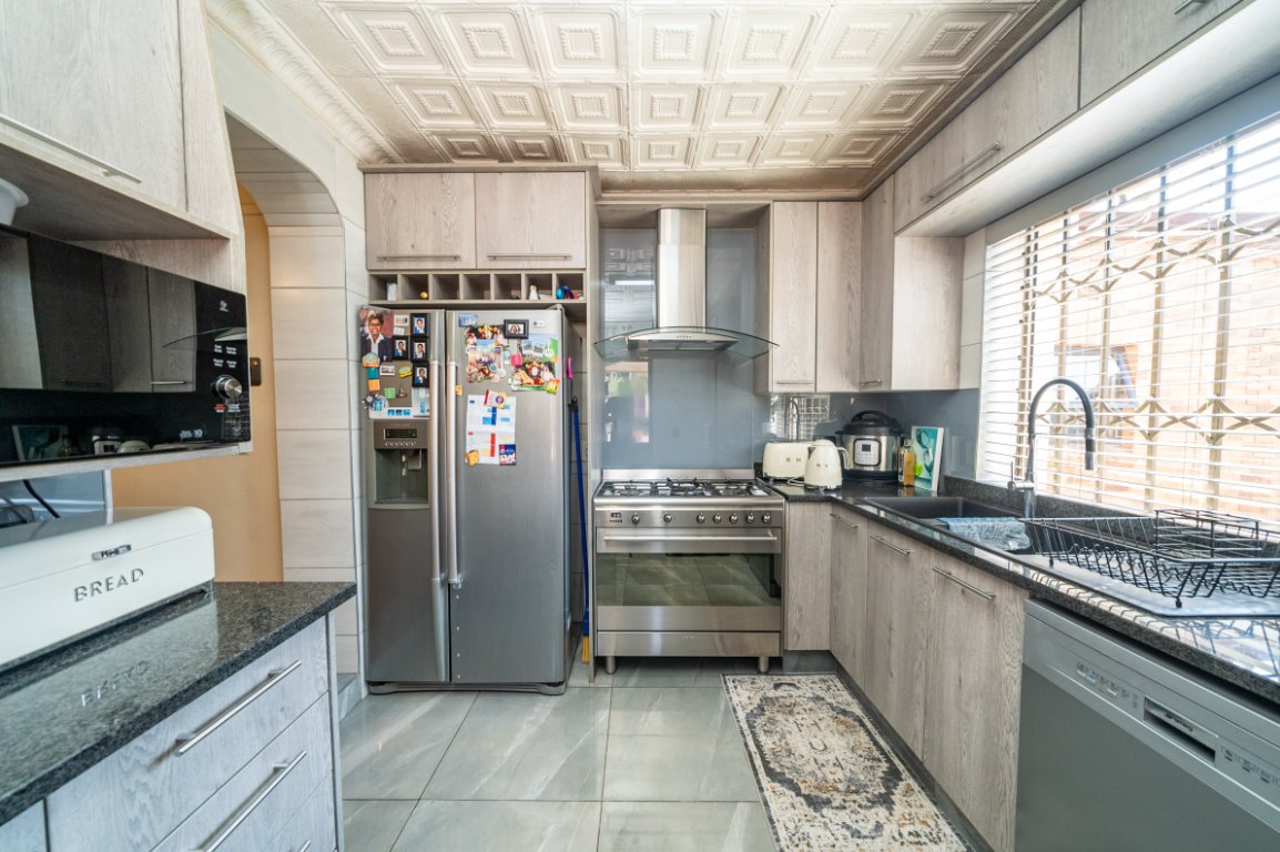 This beautifully maintained 3-bedroom home, set on a large 990 m2 stand, offers everything a modern family needs. Featuring wooden flooring throughout, the home includes a well-designed kitchen with granite countertops, gas stove, electric oven, and hob. The spacious layout includes a lounge, TV room, family room, separate dining room, study, and guest toilet. The main bedroom has an en-suite bathroom, and the house offers a total of 2.5 bathrooms.