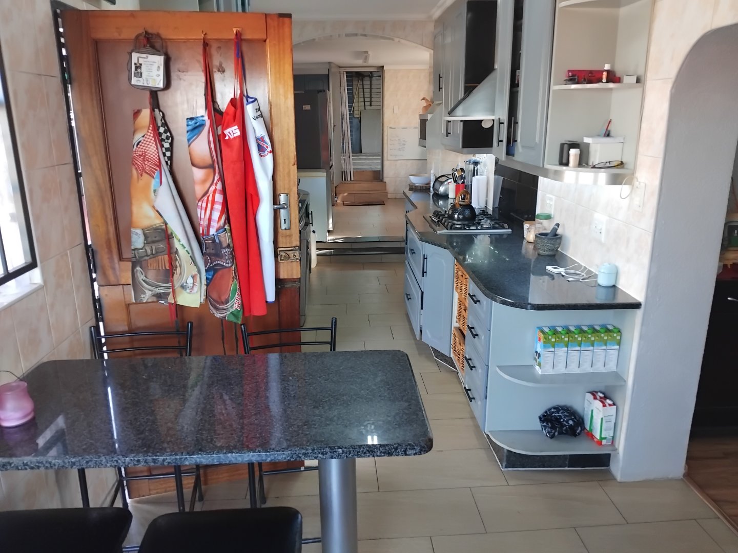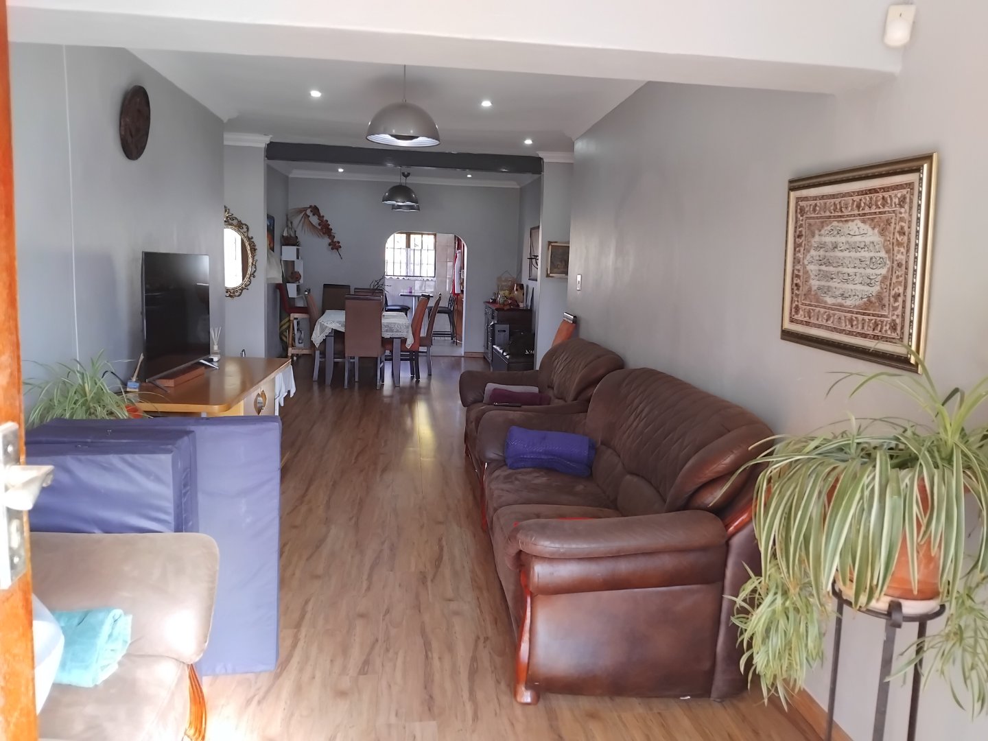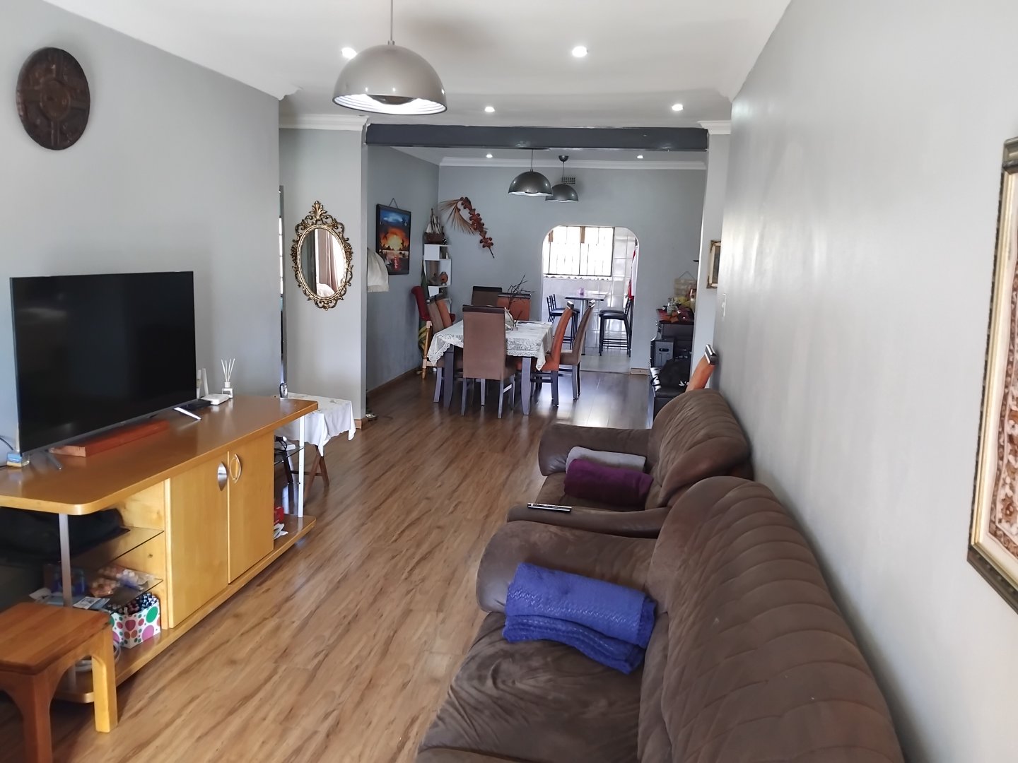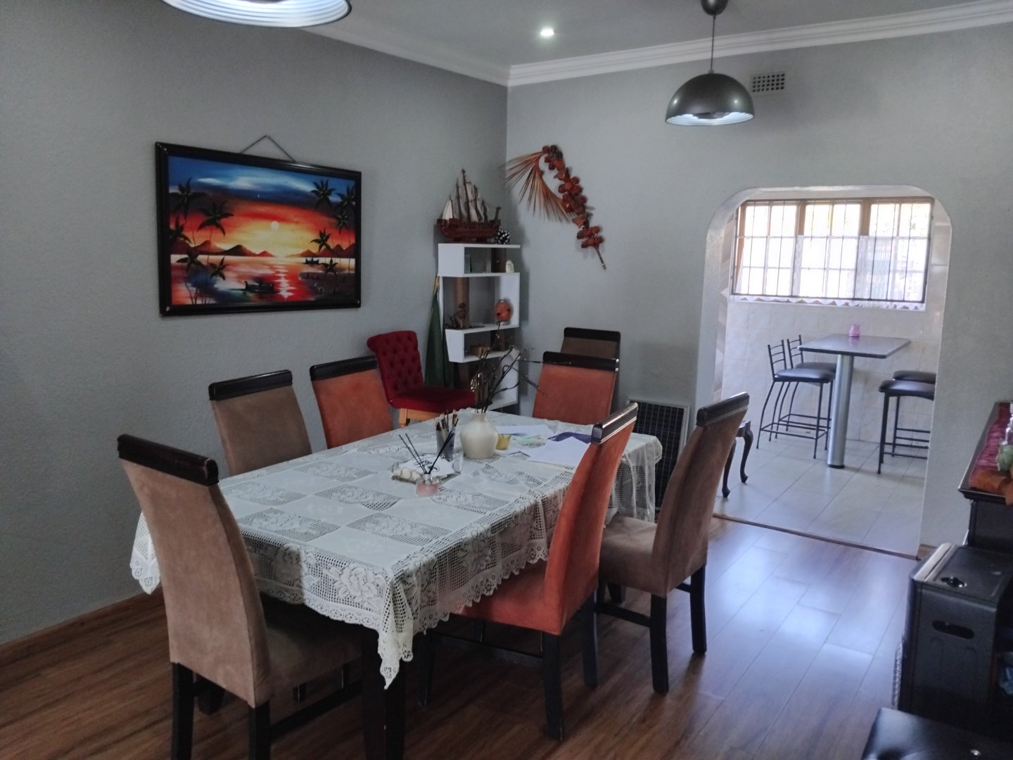 This spacious 4-bedroom, 3-bathroom home offers comfortable family living on a generous 624 m2 stand. Featuring a large eat-in kitchen with granite countertops and a gas stove, the home is perfect for both everyday meals and entertaining. The open lounge and separate dining room provide ample living space, while two of the bedrooms include main en-suite bathrooms. Additional highlights include laminate flooring throughout, a cozy breakfast nook, a sparkling pool, and a built-in braai area for outdoor enjoyment. The property also includes staff quarters, a double garage, double carport, and extra parking. Security is well covered with an alarm system and surveillance cameras, and a solar geyser adds an energy-efficient touch to this well-rounded home.
