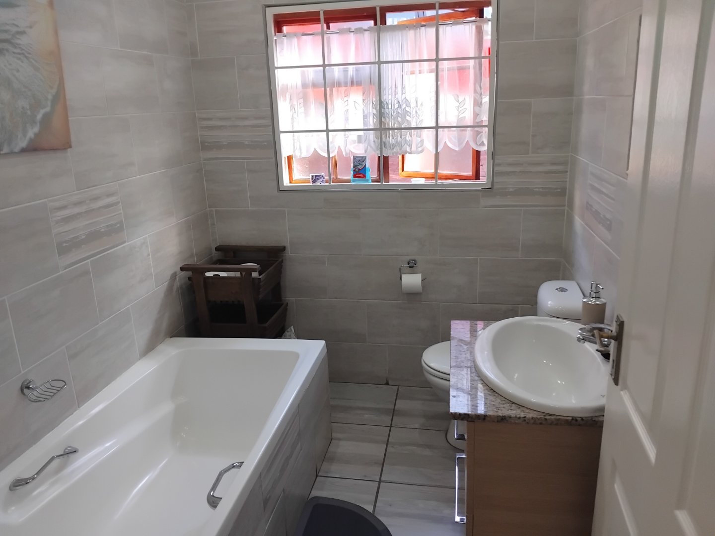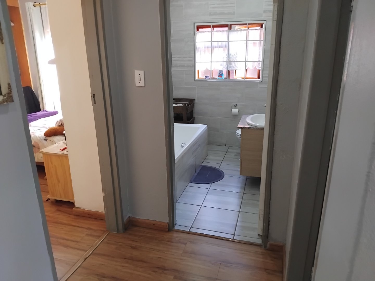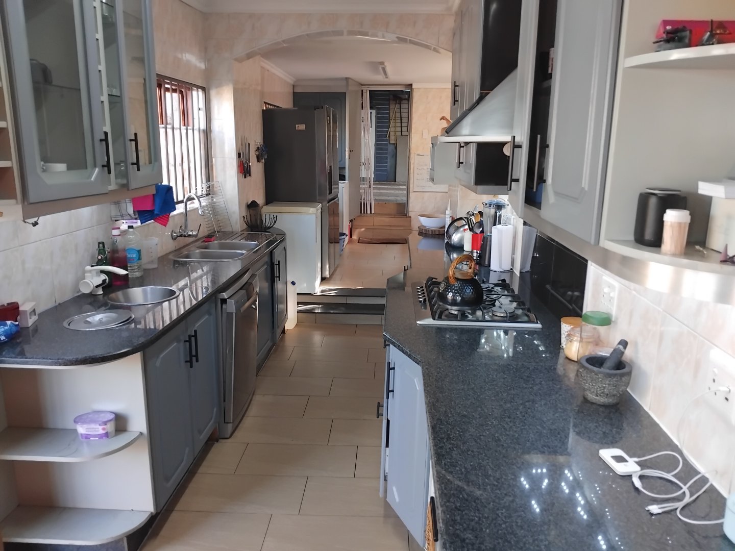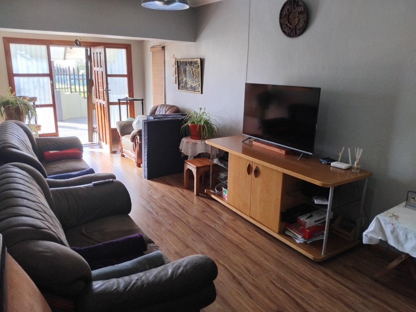 This spacious 4-bedroom, 3-bathroom home offers comfortable family living on a generous 624 m2 stand. Featuring a large eat-in kitchen with granite countertops and a gas stove, the home is perfect for both everyday meals and entertaining. The open lounge and separate dining room provide ample living space, while two of the bedrooms include main en-suite bathrooms. Additional highlights include laminate flooring throughout, a cozy breakfast nook, a sparkling pool, and a built-in braai area for outdoor enjoyment. The property also includes staff quarters, a double garage, double carport, and extra parking. Security is well covered with an alarm system and surveillance cameras, and a solar geyser adds an energy-efficient touch to this well-rounded home.