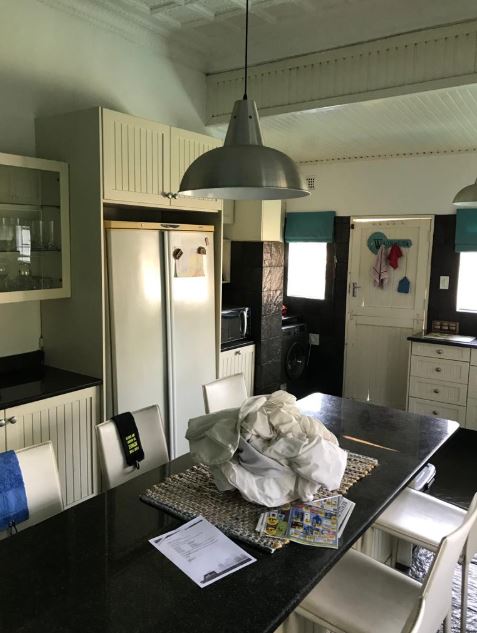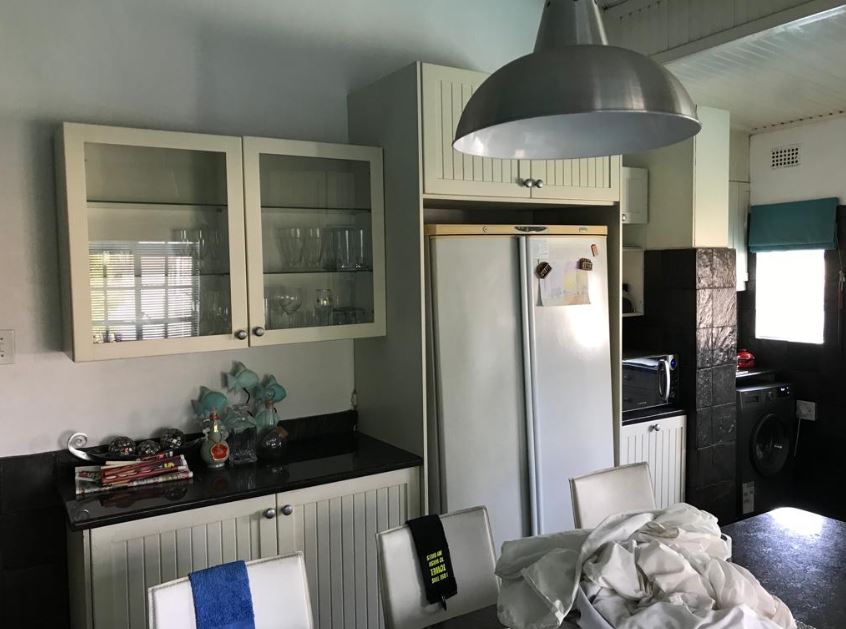 The tiled entrance hall welcomes you into a home featuring a lounge with tiled floors, a fireplace, and pressed ceilings, creating a warm and inviting atmosphere! The dining room, also tiled, provides a dedicated space for family meals! The well-appointed kitchen boasts an island, built-in cupboards, an electric stove, an eye-level oven, and space for a double-door fridge!