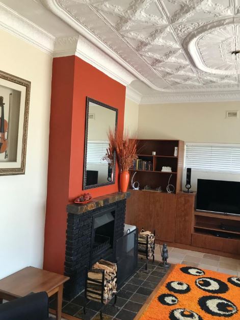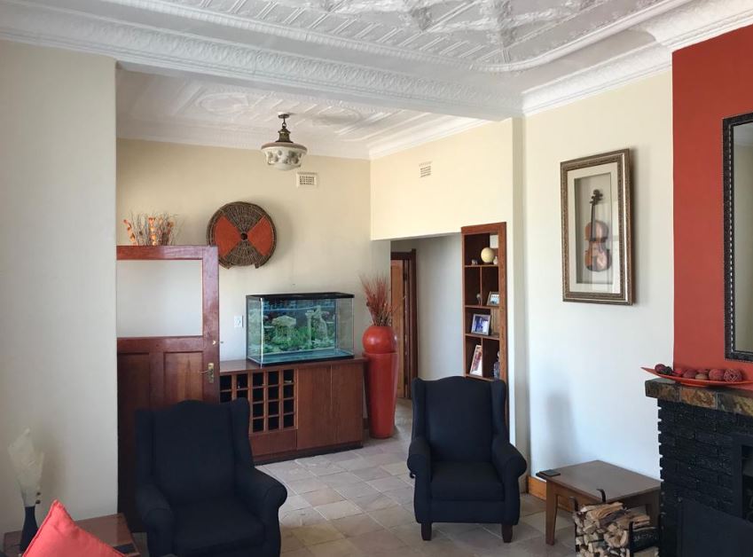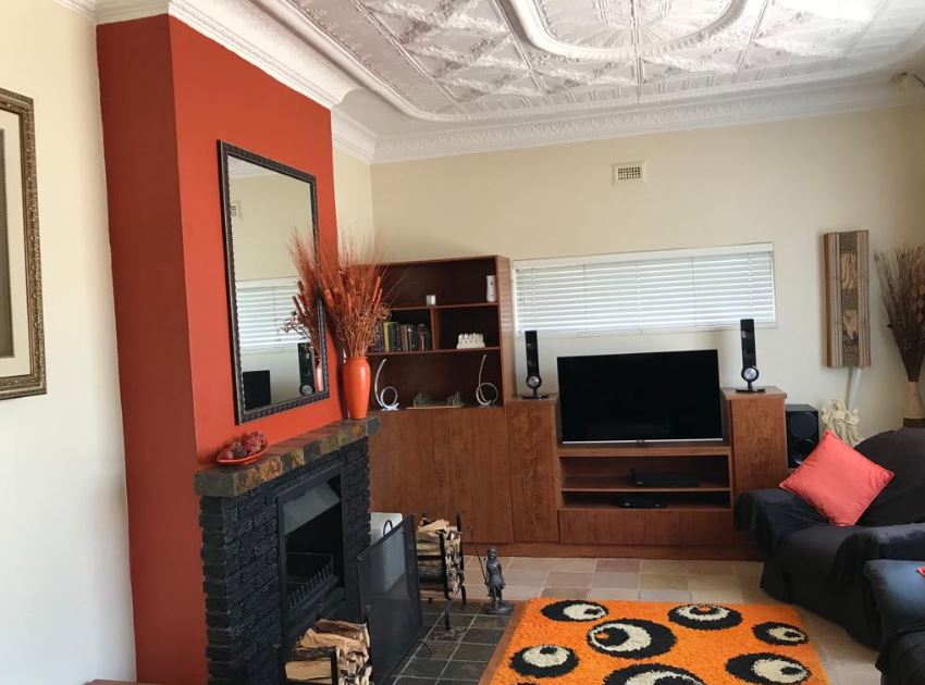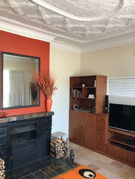 Comfortable Living: Lounge with tiled floors, fireplace, and pressed ceilings!