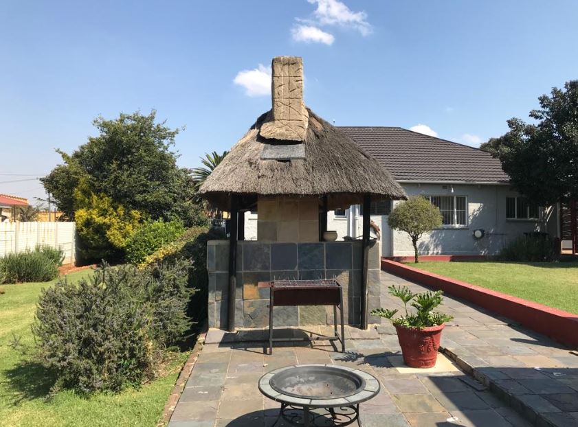 The main bedroom features tiled floors, built-in cupboards, and pressed ceilings, along with a tiled ensuite bathroom! Two additional bedrooms, also tiled and with built-in cupboards and ceiling fans, share a family bathroom! Outside, a double lock-up garage and a thatched lapa with a built-in braai provide excellent opportunities for outdoor entertaining! The large yard offers plenty of space for children to play and for gardening enthusiasts! Located close to amenities, this property offers convenience and a caring, safe neighborhood!