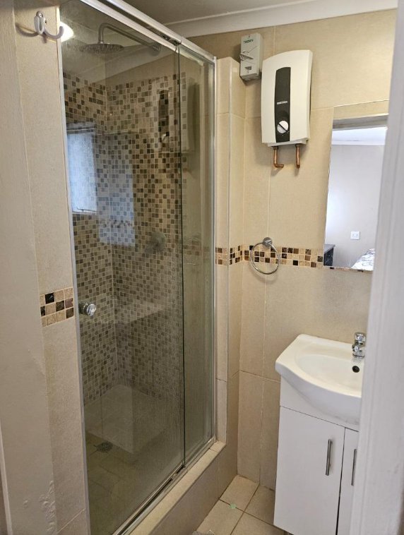 The flat-let has one bedroom, own kitchen, bathroom and own geyser.