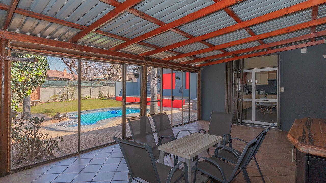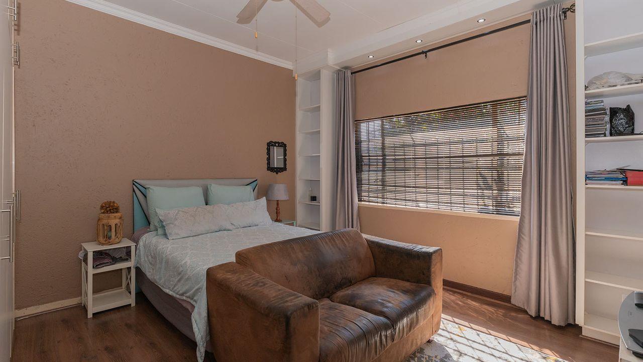 Covered entertainment area with fireplace and built-in braai overlooking the neatly manicured, low-maintenance garden. Private and enclosed sparkling pool. Ideal for a potential homeowner that enjoys entertaining.