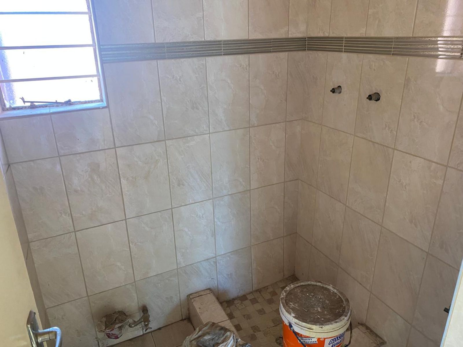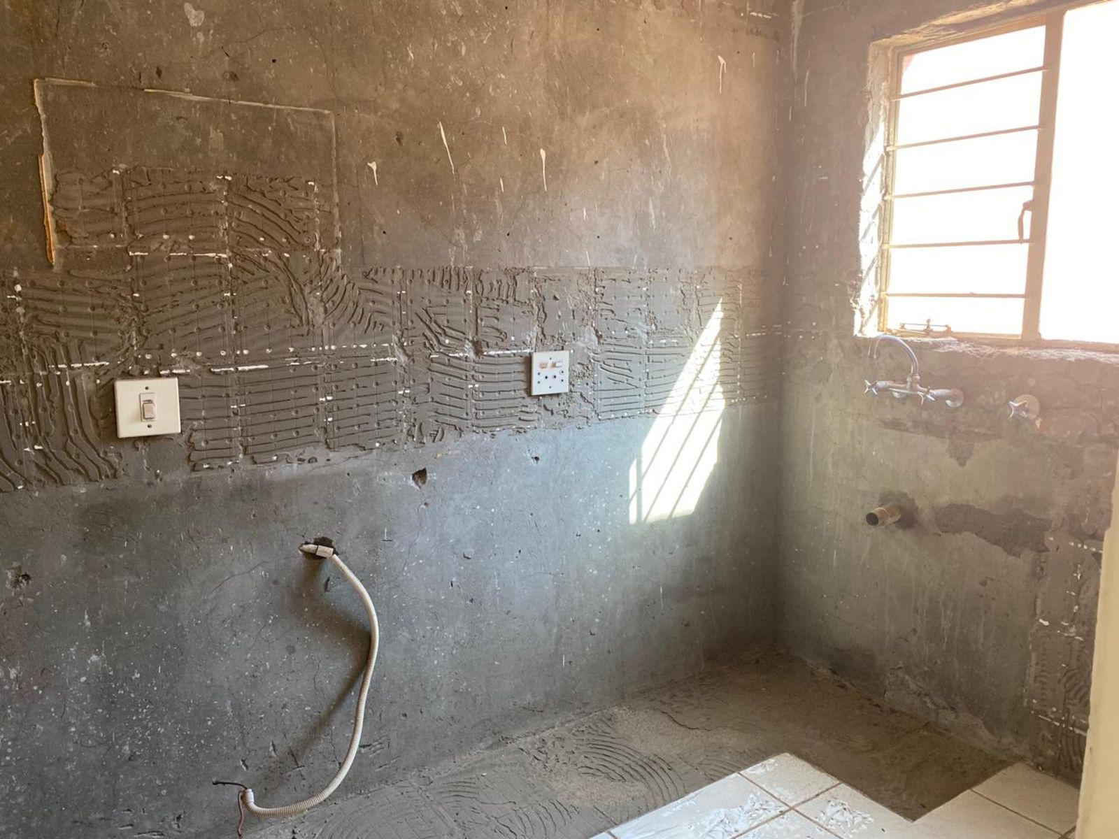 This blank canvas is painted and tiled, with completed wiring, awaiting your personal touch. The kitchen and bathrooms need finishing, allowing you to install counters, basin, stove, and toilet to suit your style. A bathtub is already in place, setting the foundation for a well-appointed bathroom.