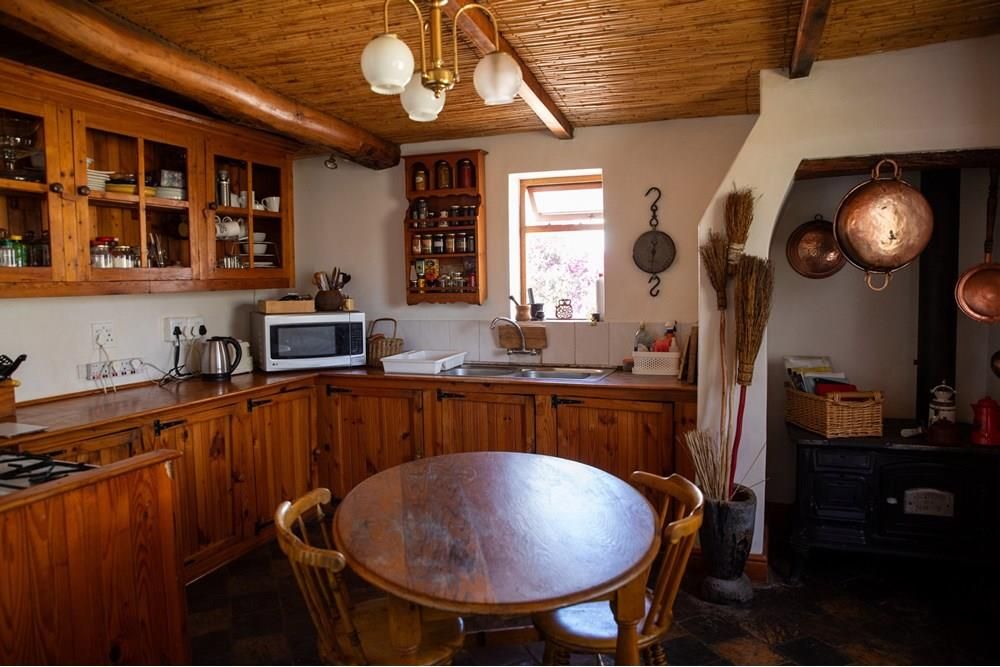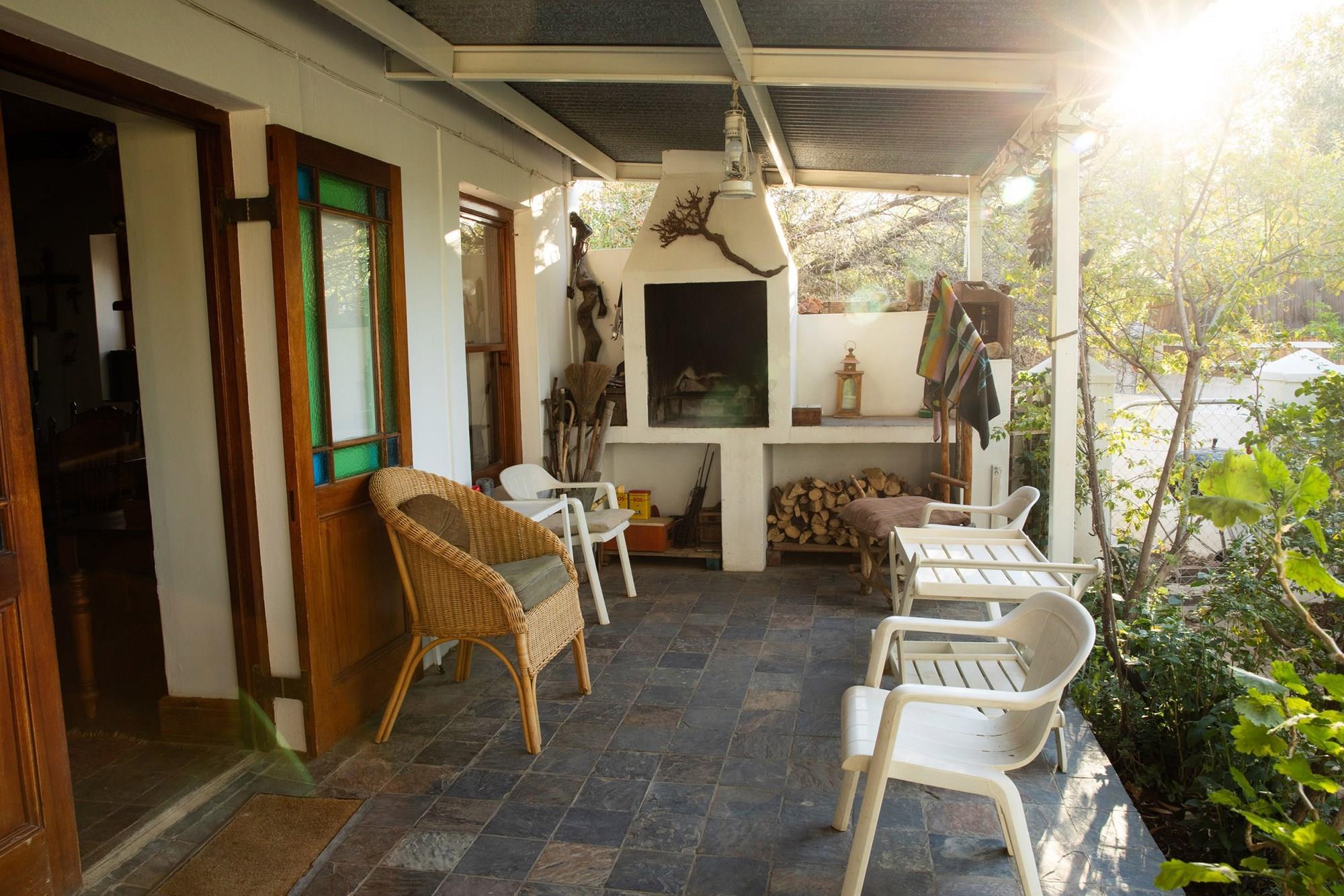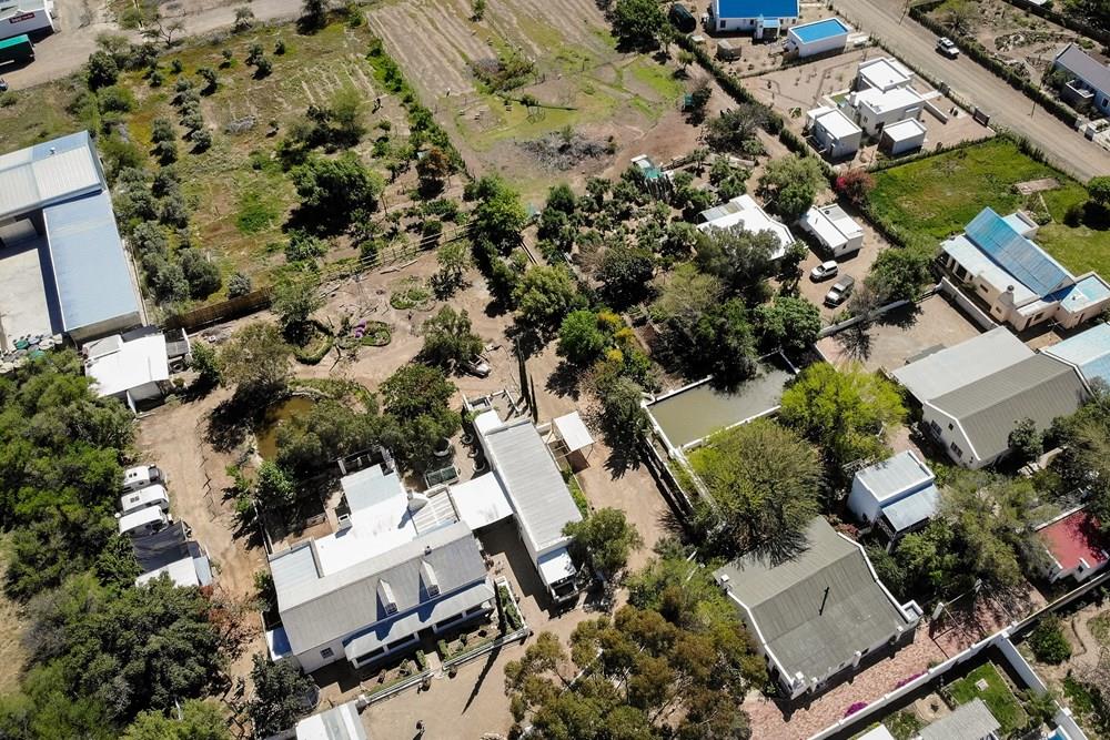 Discover the essence of dream living in Prince Albert with this extraordinary property, a harmonious blend of countryside charm and modern comfort. Nestled amidst a lush garden, the main residence embodies simplicity and functionality. Its open-plan living and dining area seamlessly connect to a charming covered veranda, offering picturesque views of the vibrant garden and the property`s expansive leiwater dam. The kitchen is spacious with ample cupboard, some tender loving care will bring this into its true potential. Three bedrooms, including a master suite, and a family bathroom provide ample accommodation. An adjacent building houses an office on the ground floor and a versatile hobby/TV/family room with scenic timber decks on the second floor. This part is a easy conversion into an extra bedroom adding to the income generation potential of this property.
