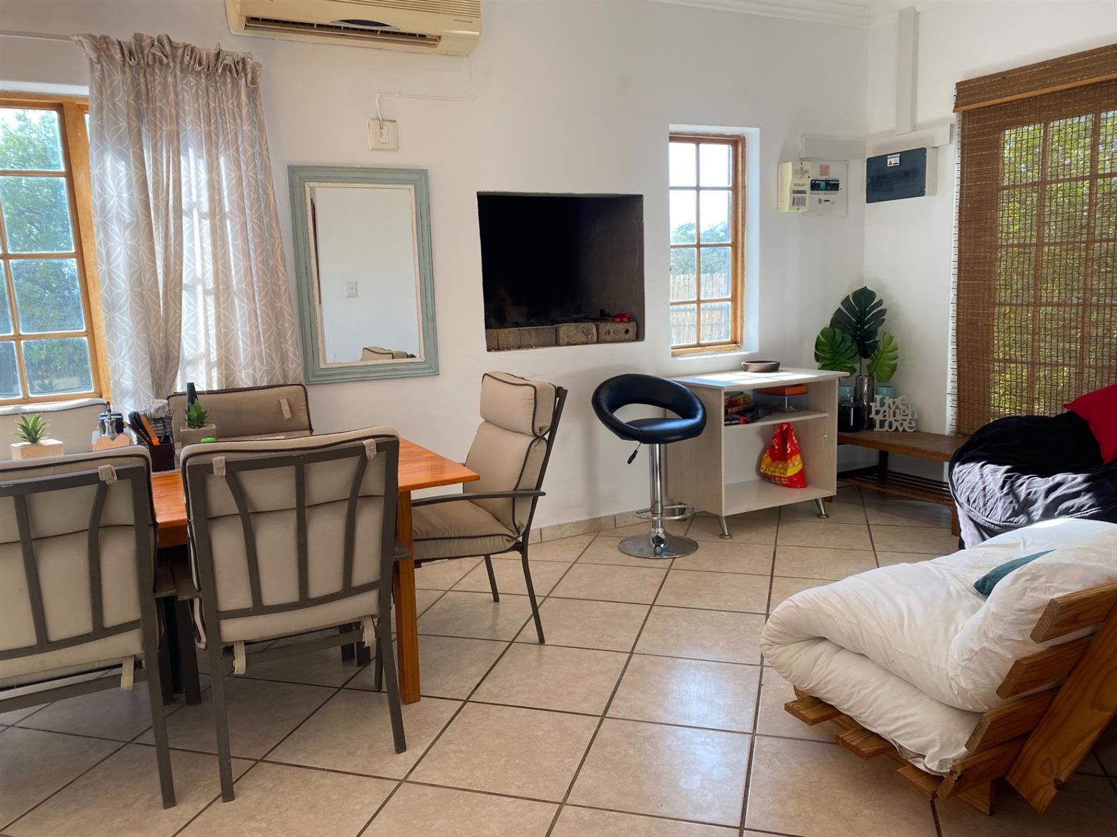 Step inside to an inviting open-plan living space, where a compact yet modern kitchen flows seamlessly into the lounge and dining area. The indoor braai, thoughtfully built into the dining space, sets the stage for cozy winter evenings and intimate dinner parties. For summer entertaining, a covered outdoor braai area provides the ideal spot to relax with friends and family while little ones play safely in the secure garden.