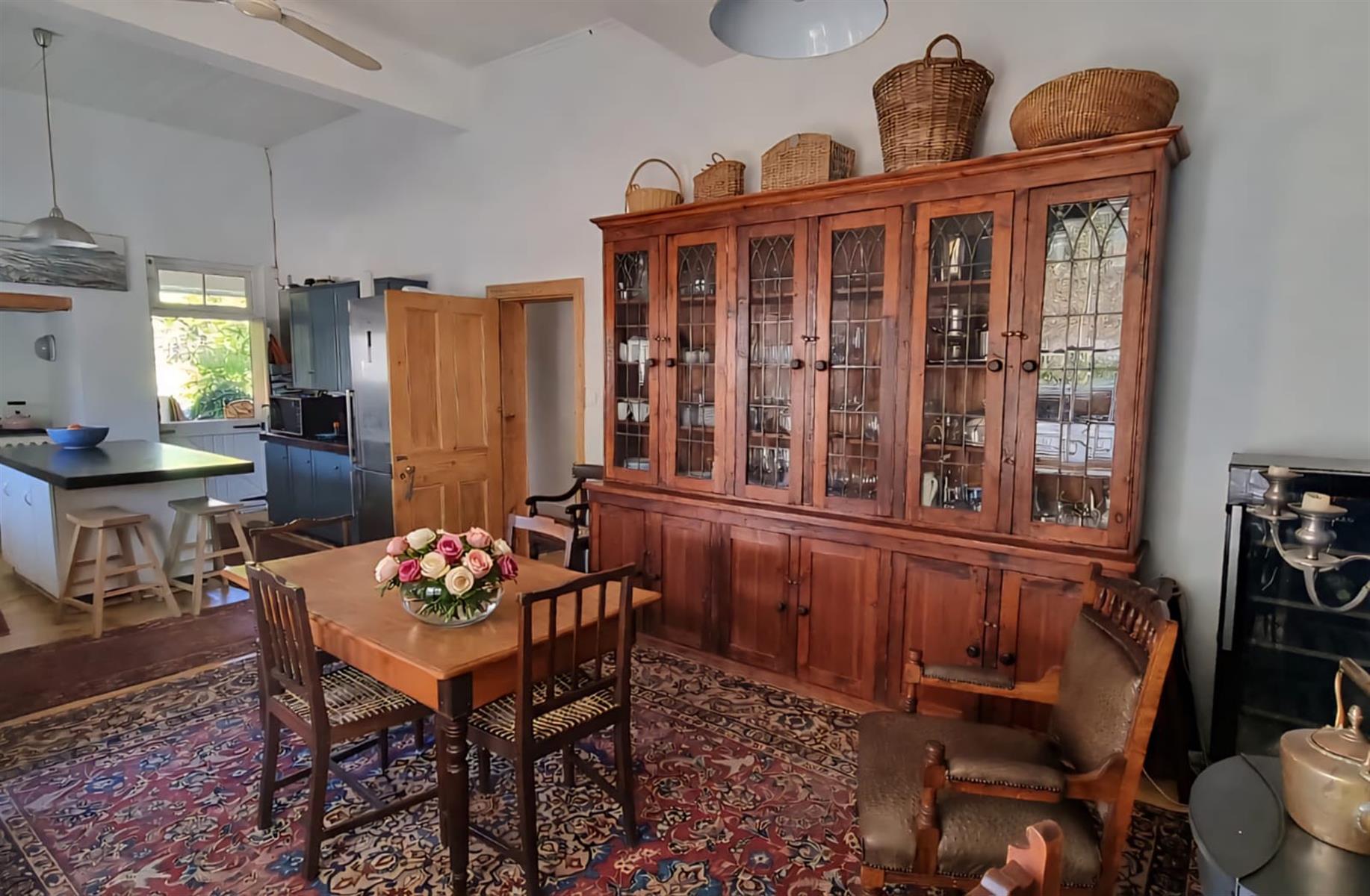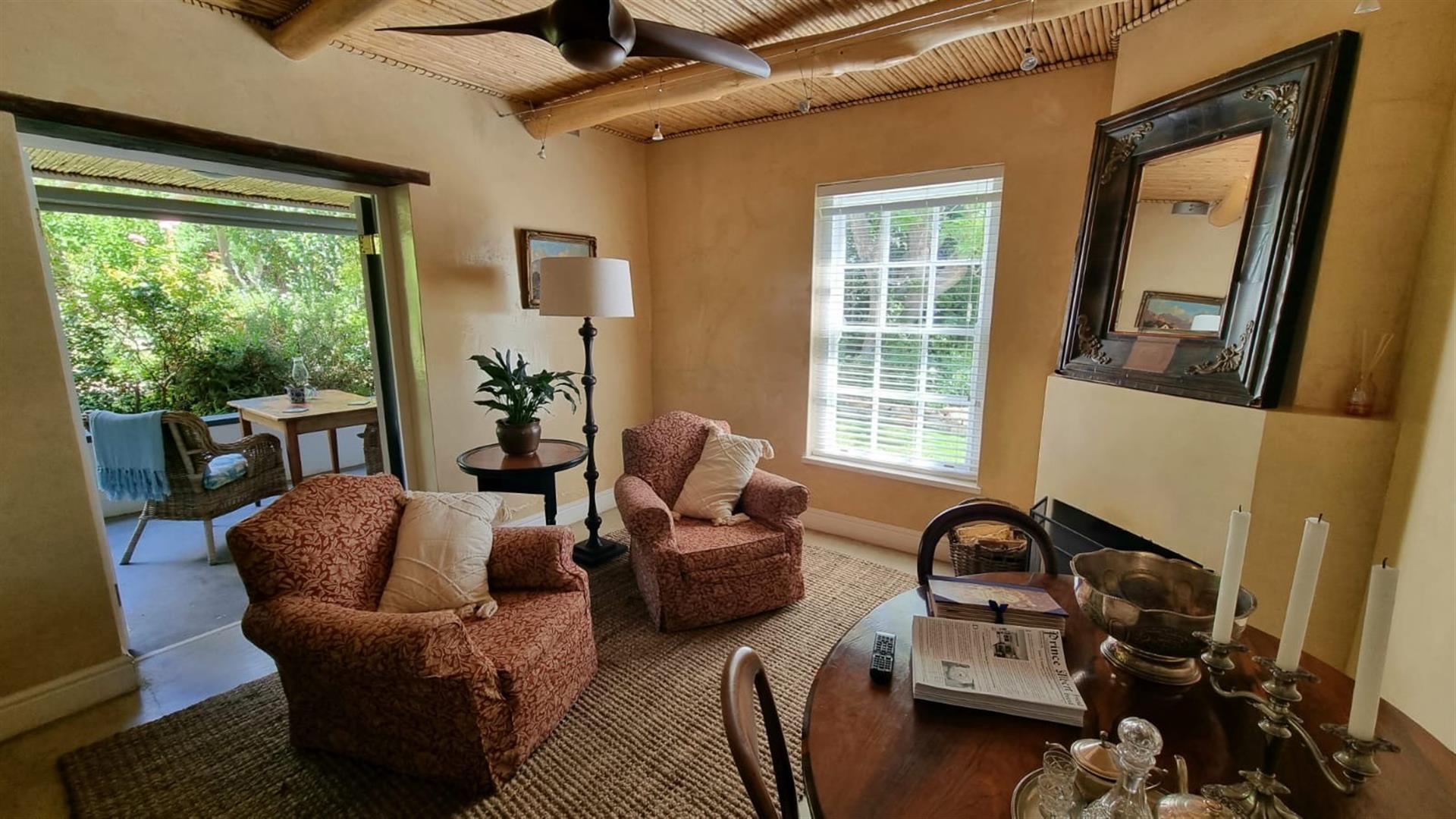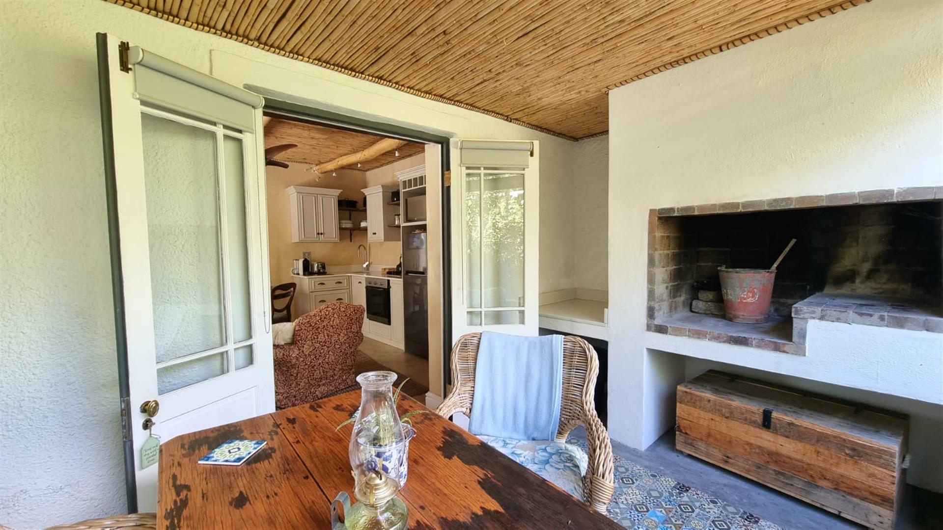 The garden is truly one of the property’s most enchanting features. An estimated 85-year-old Papa Meilland rose stands proudly among beautifully manicured rose beds at the rear of the property, nourished by a reliable leiwater stream and a steady borehole water supply. The gardens also offer a selection of fruit trees and a grape arbor that provides welcome shade over the outdoor braai area.