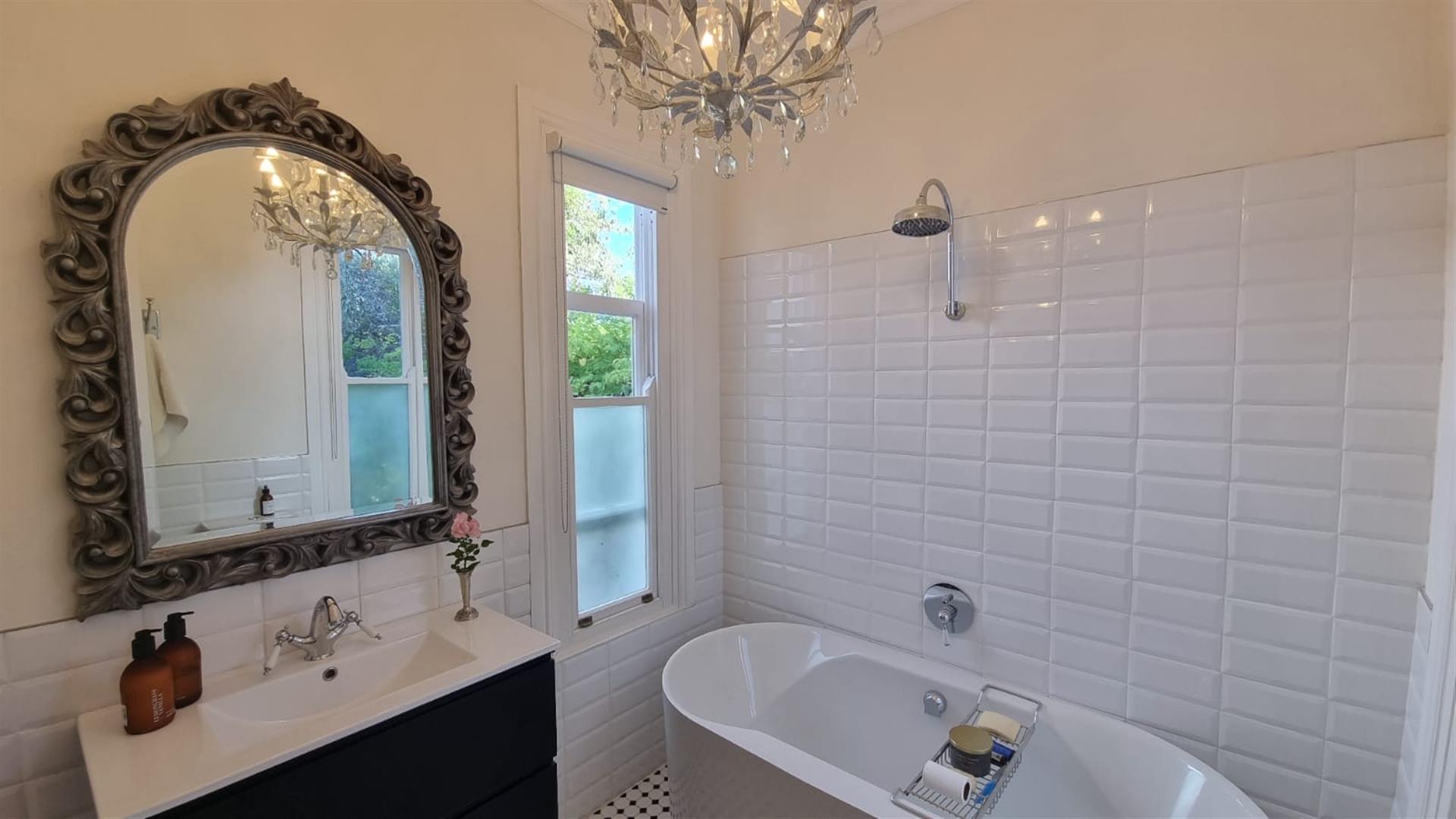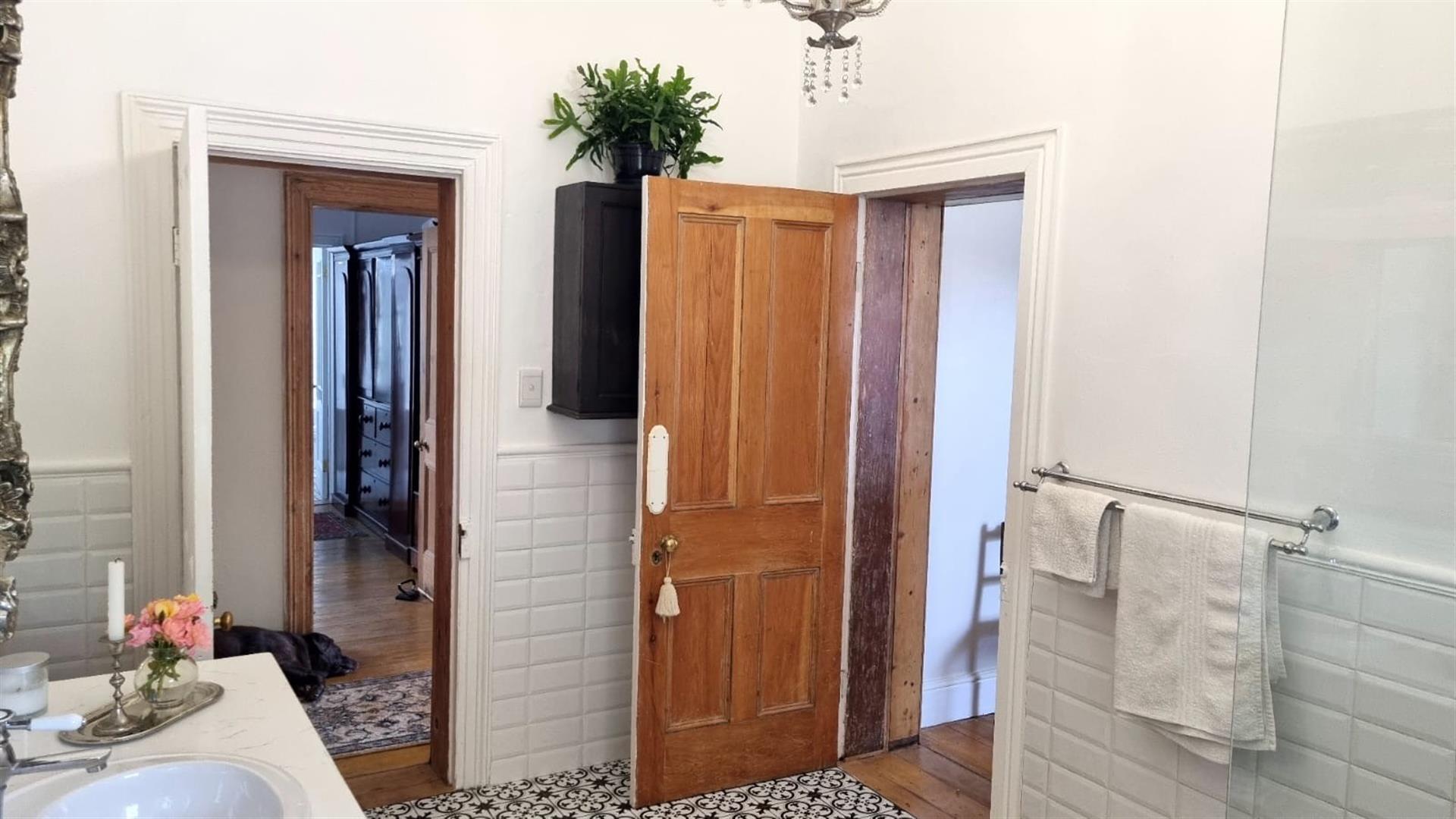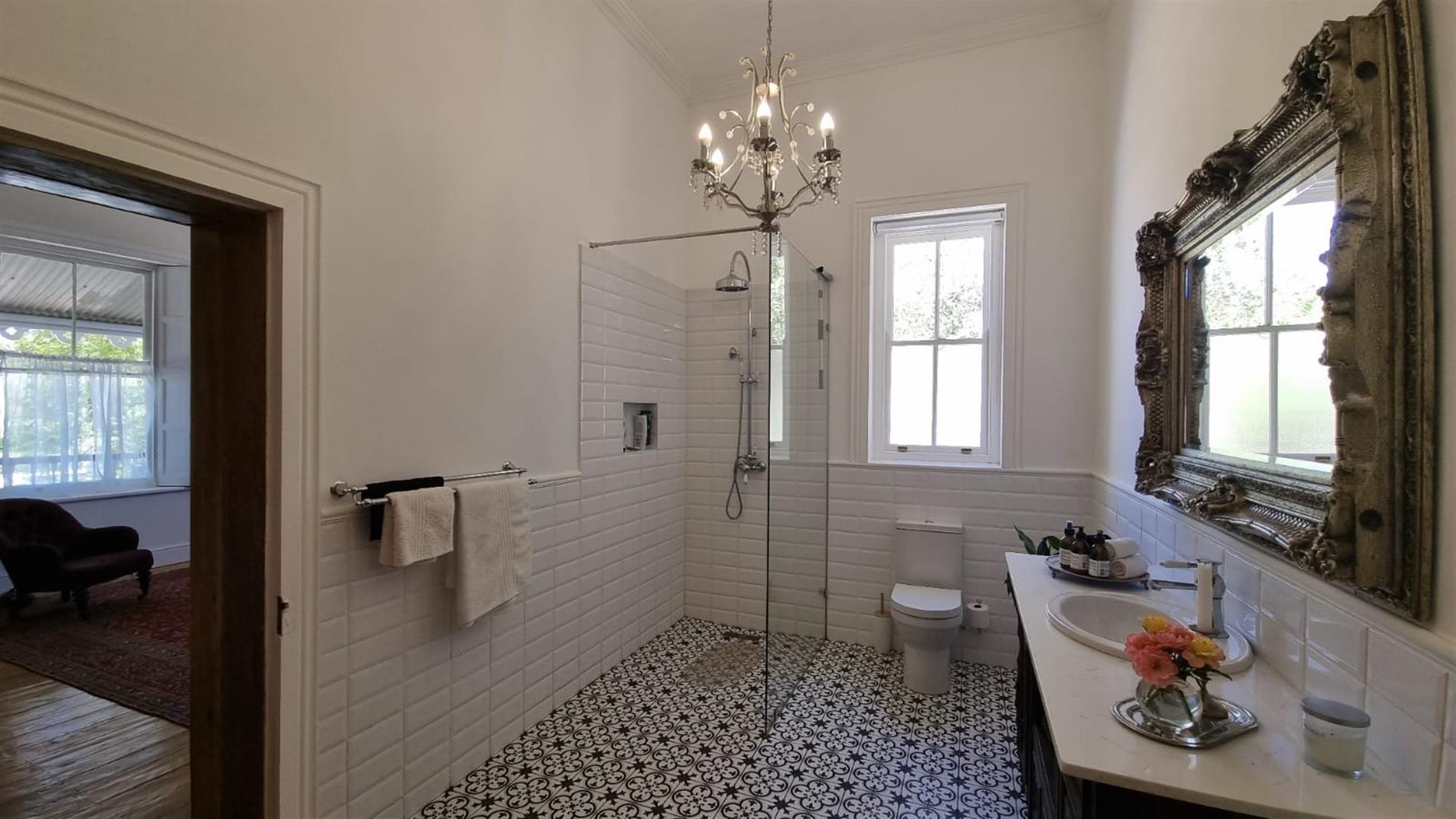 The residence has been carefully brought into the modern era while respecting its heritage. Spacious, clean-lined en suite bathrooms add contemporary comfort without compromising the home’s period charm. The current layout offers two bedrooms, one fully en suite, and a second bedroom serviced by a well-appointed Jack-and-Jill bathroom for guest use. A third generously sized room, currently used as a study, overlooks the front verandah and can easily serve as an additional bedroom if required.