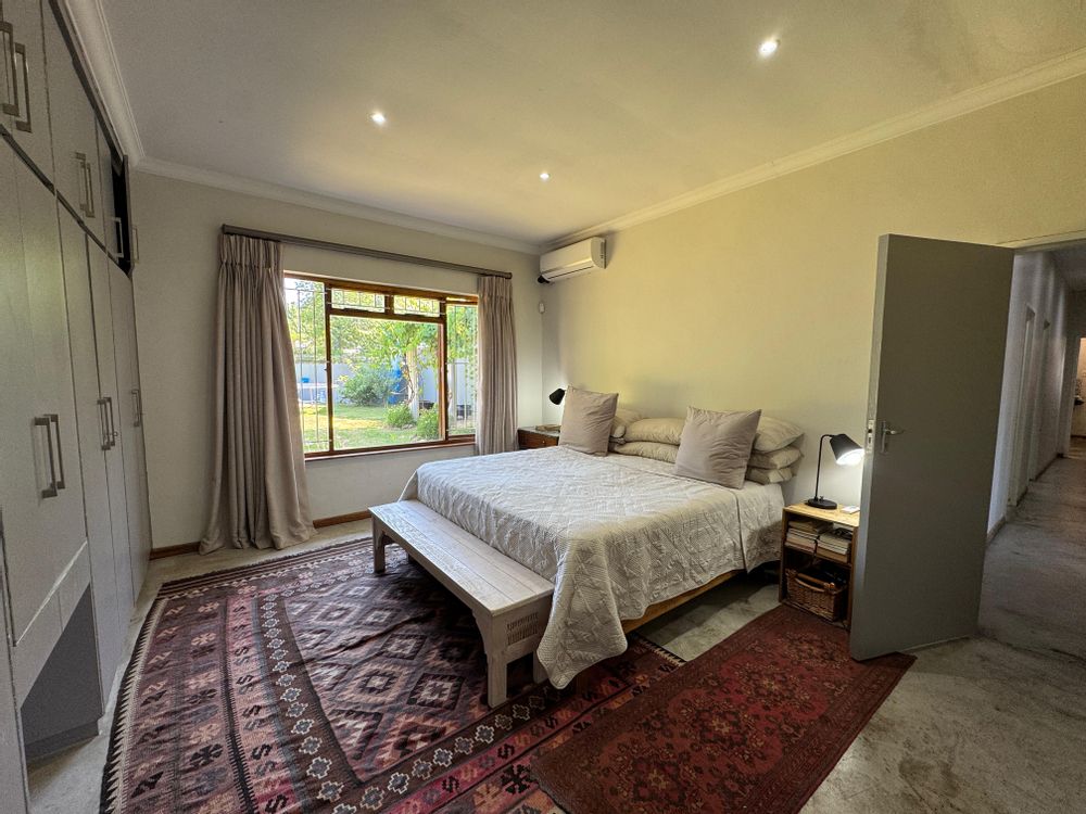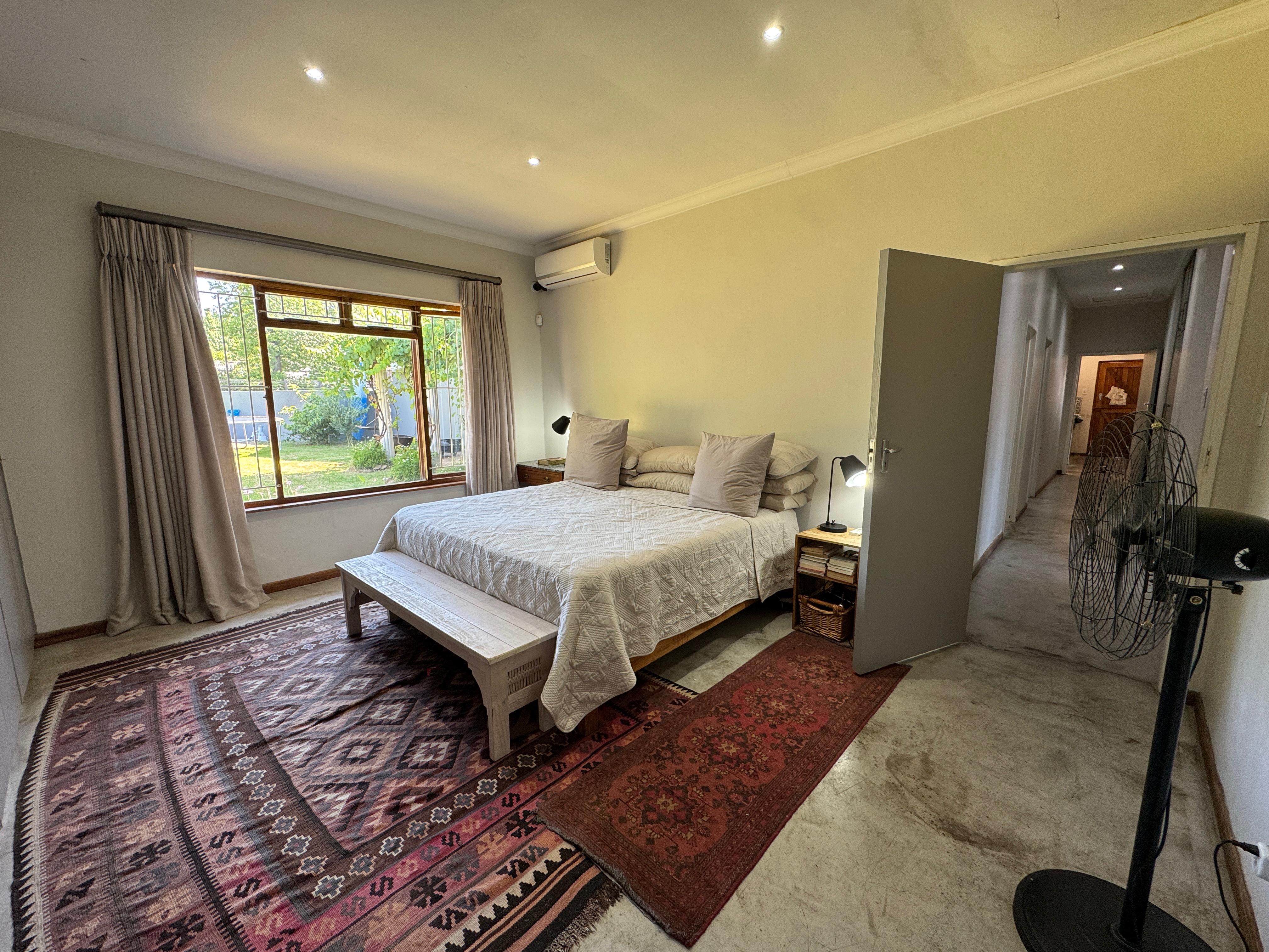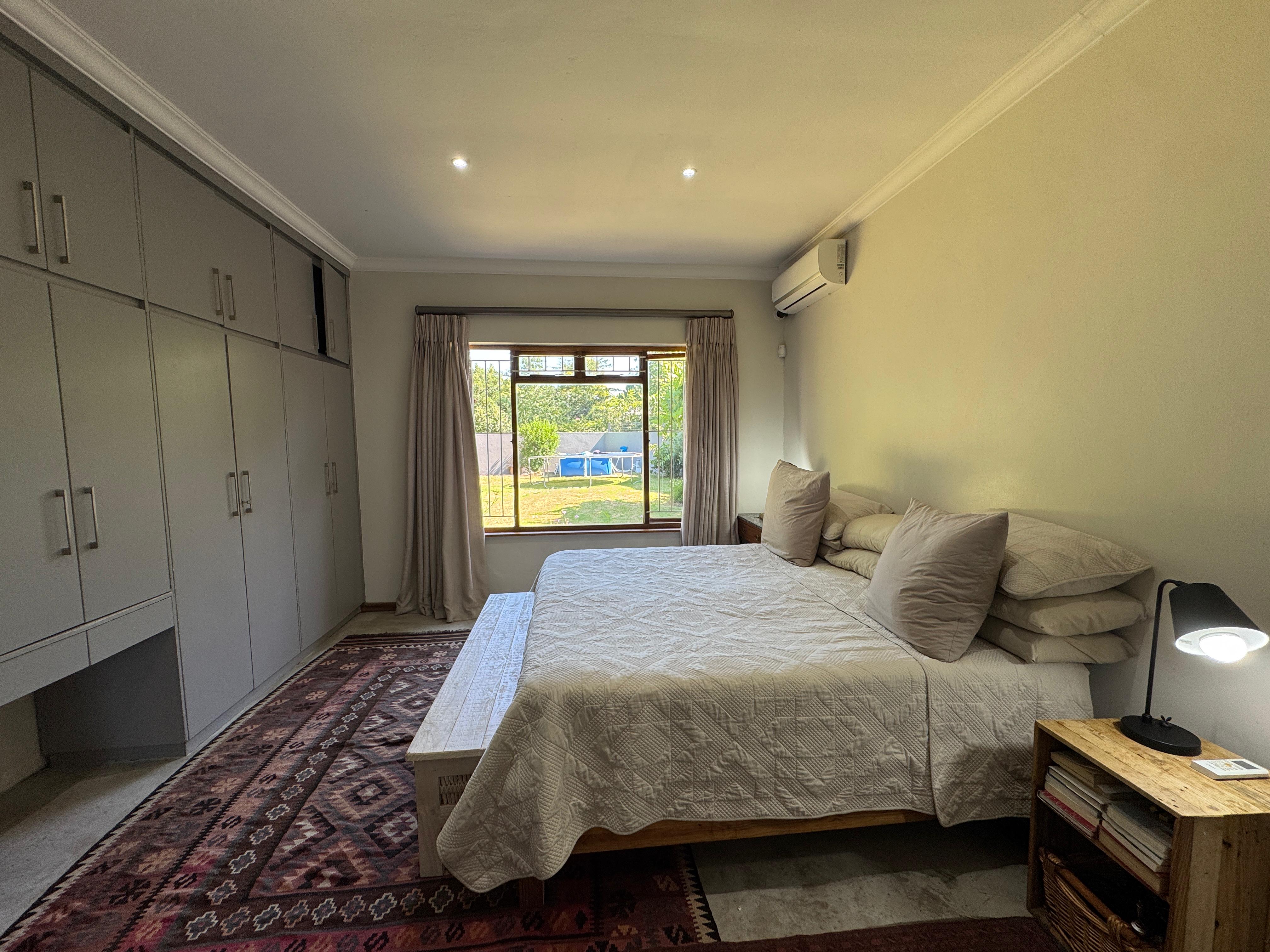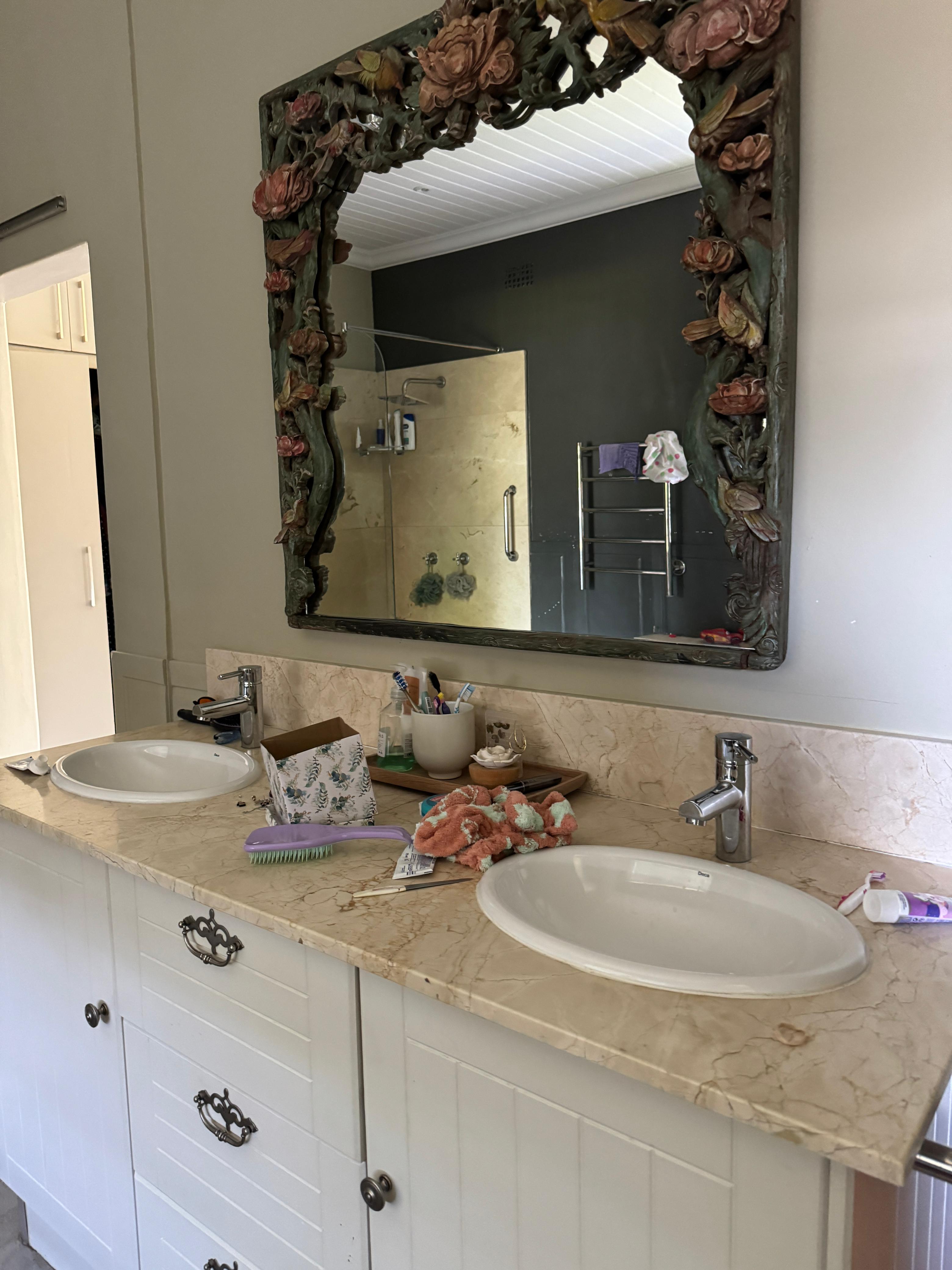 Accommodation includes four comfortable bedrooms, all with built-in cupboards, supported by four bathrooms, two of which are en-suite. The main bedroom offers air-conditioning and a generously sized en-suite with double basins. The fourth en-suite bedroom, with its own private entrance, is ideal for guests, extended family, a home office, or independent accommodation.