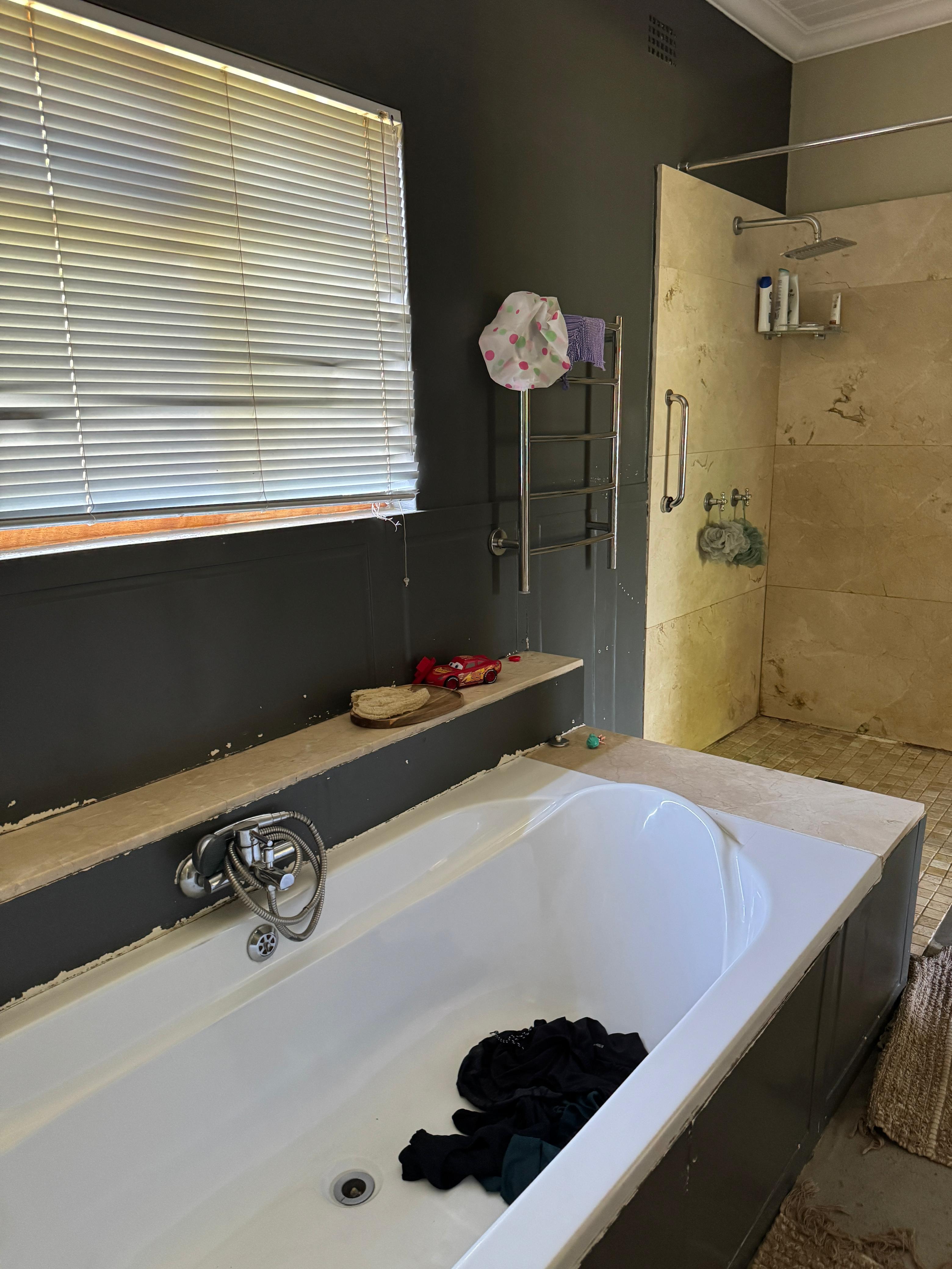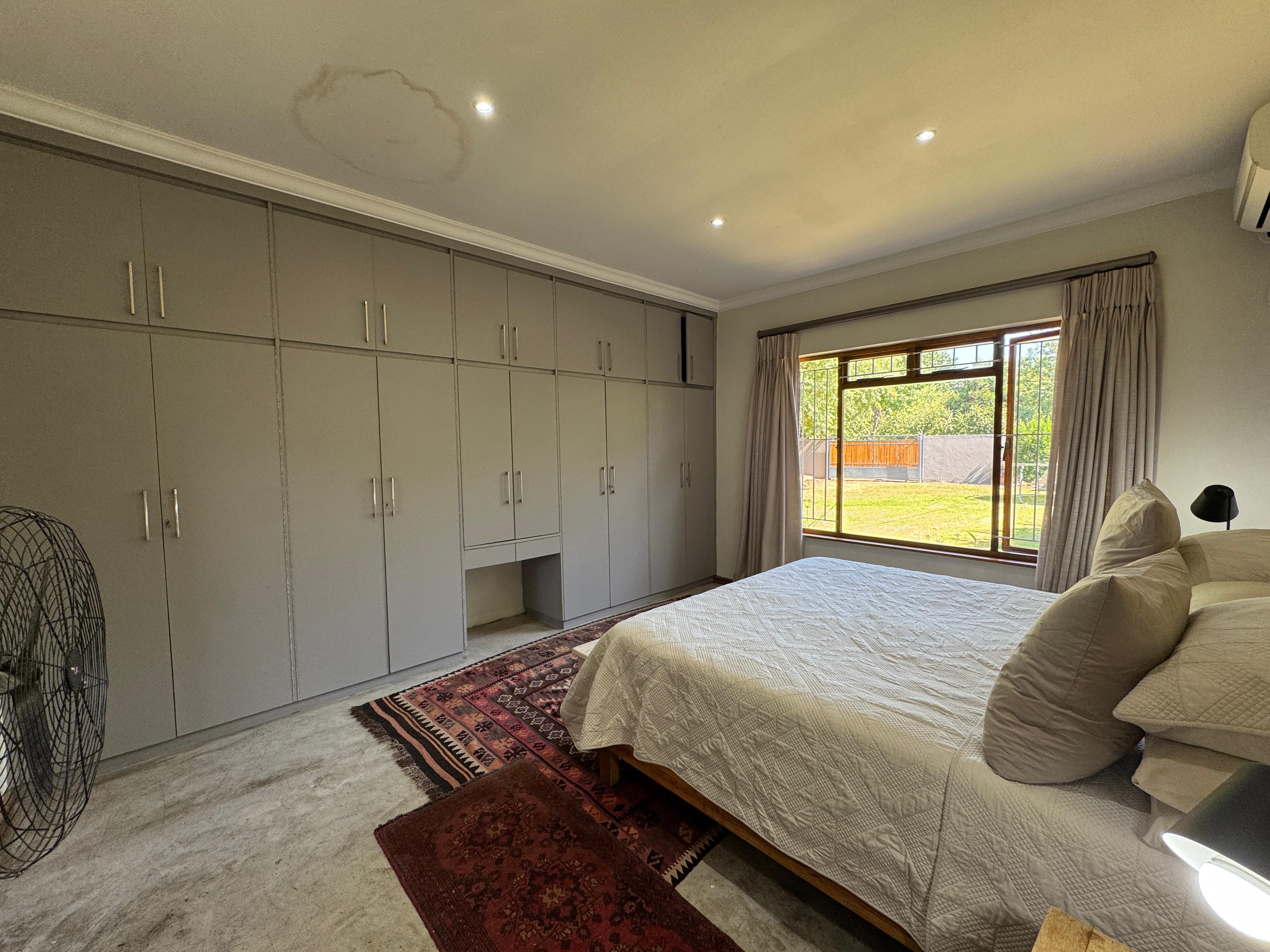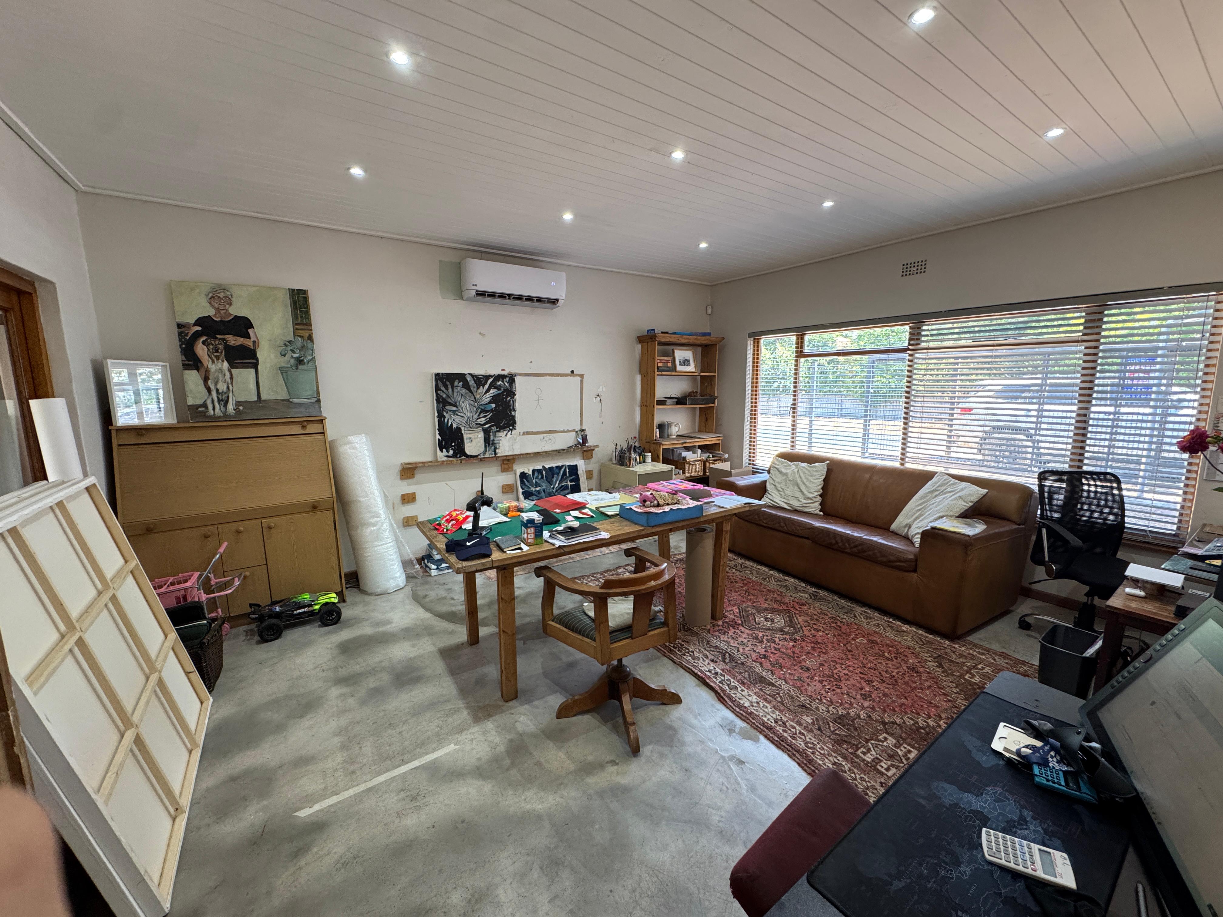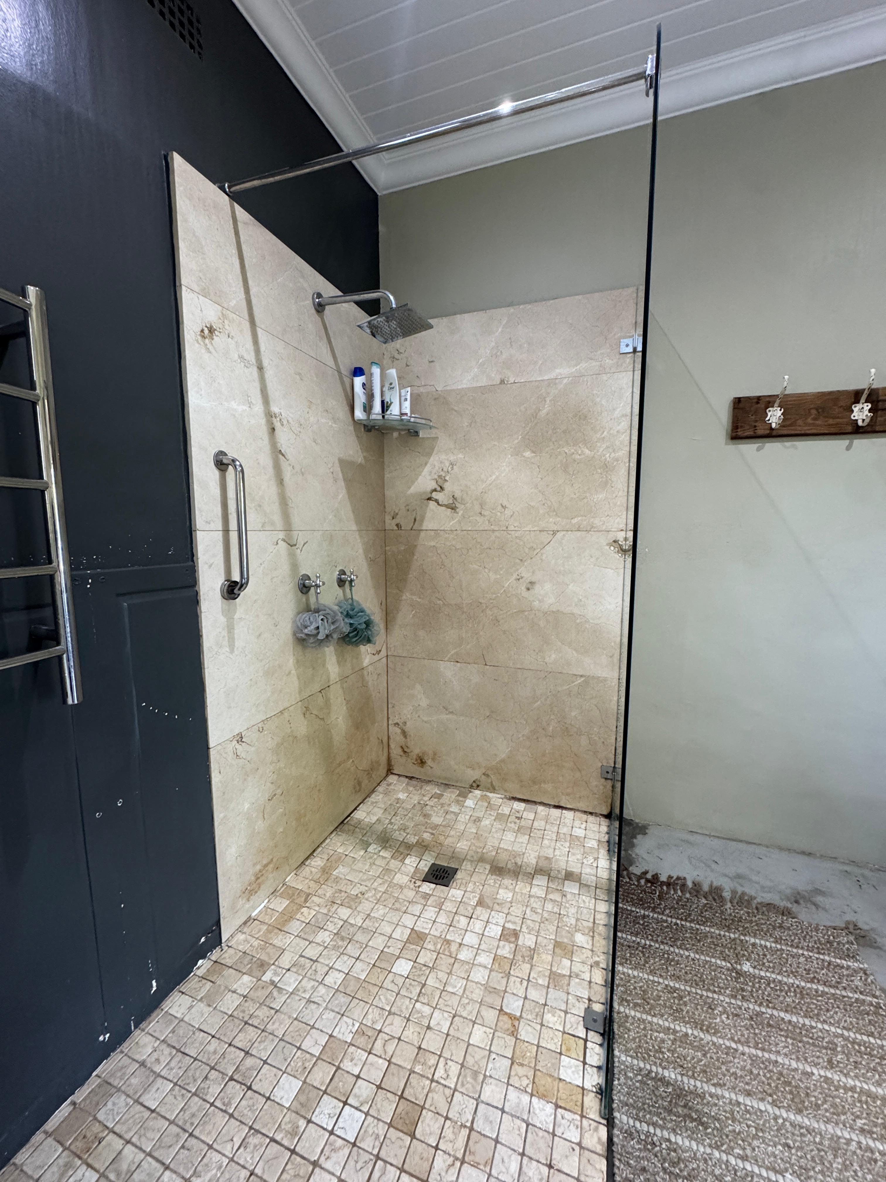 Accommodation includes four comfortable bedrooms, all with built-in cupboards, supported by four bathrooms, two of which are en-suite. The main bedroom offers air-conditioning and a generously sized en-suite with double basins. The fourth en-suite bedroom, with its own private entrance, is ideal for guests, extended family, a home office, or independent accommodation.