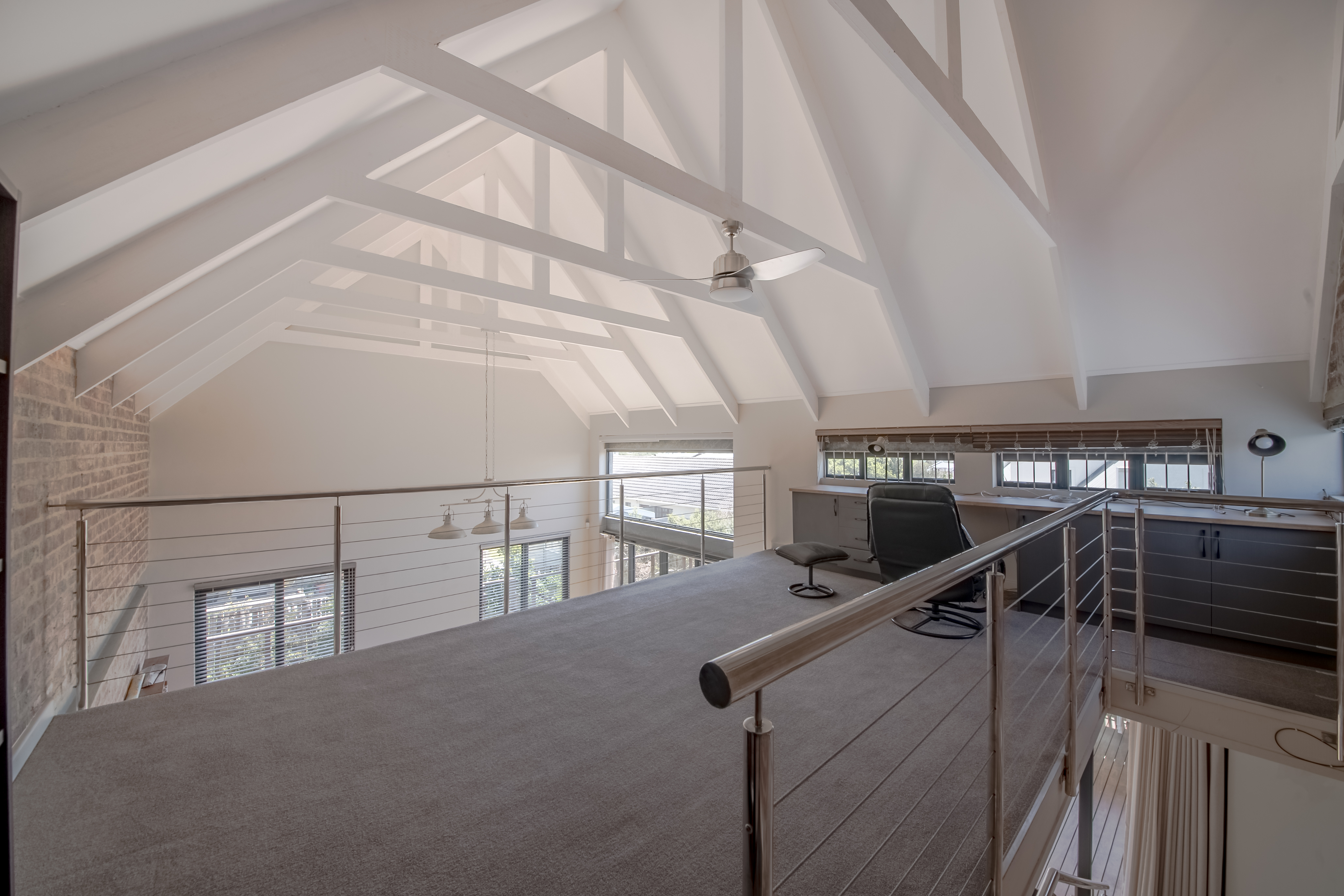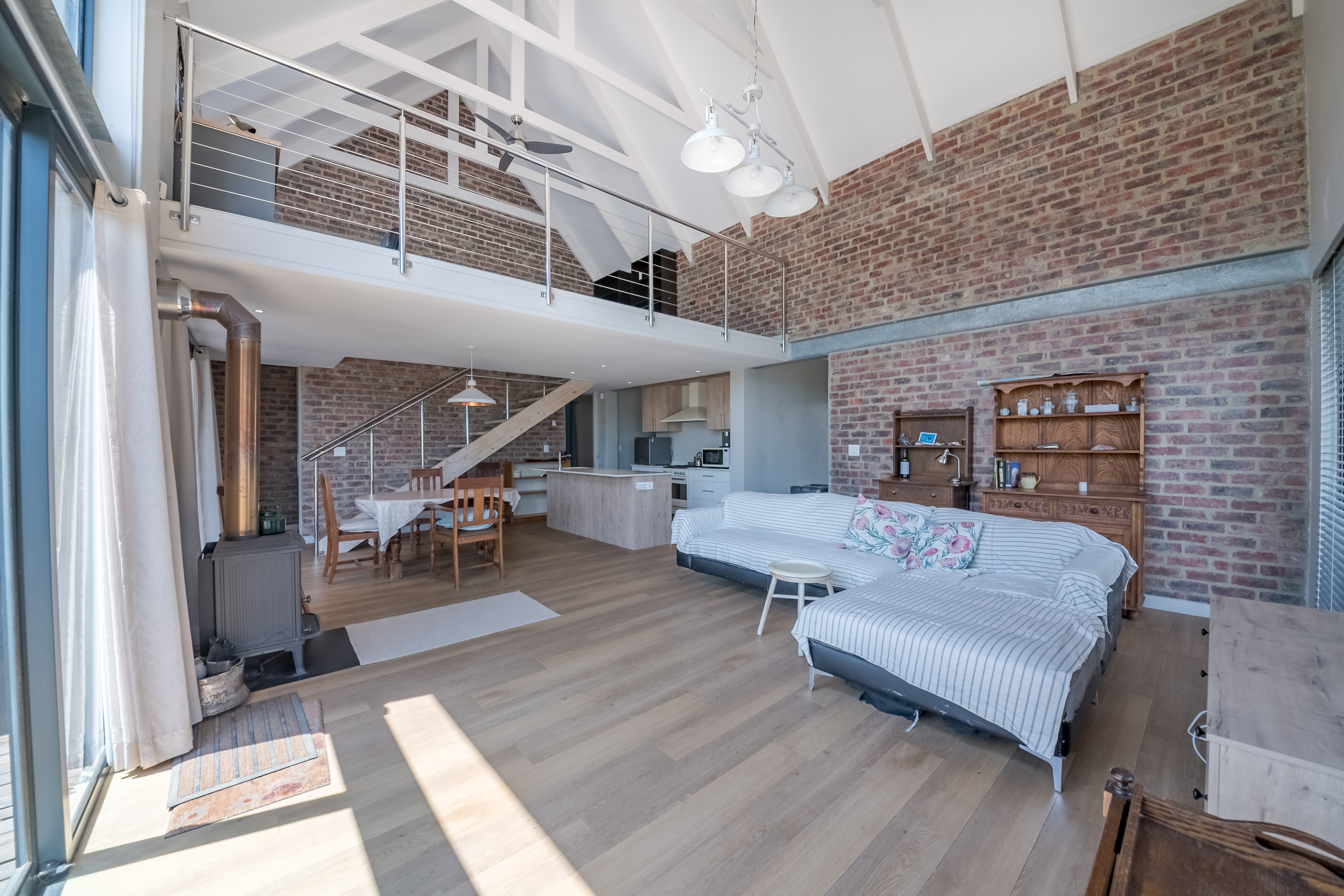 The kitchen features a Smeg oven with gas hob, a separate scullery with generous storage, and the kind of layout that makes cooking easy and social. A loft area adds flexibility — ideal for a reading nook, home office, teen hangout, or sunny Pringle-siesta corner.