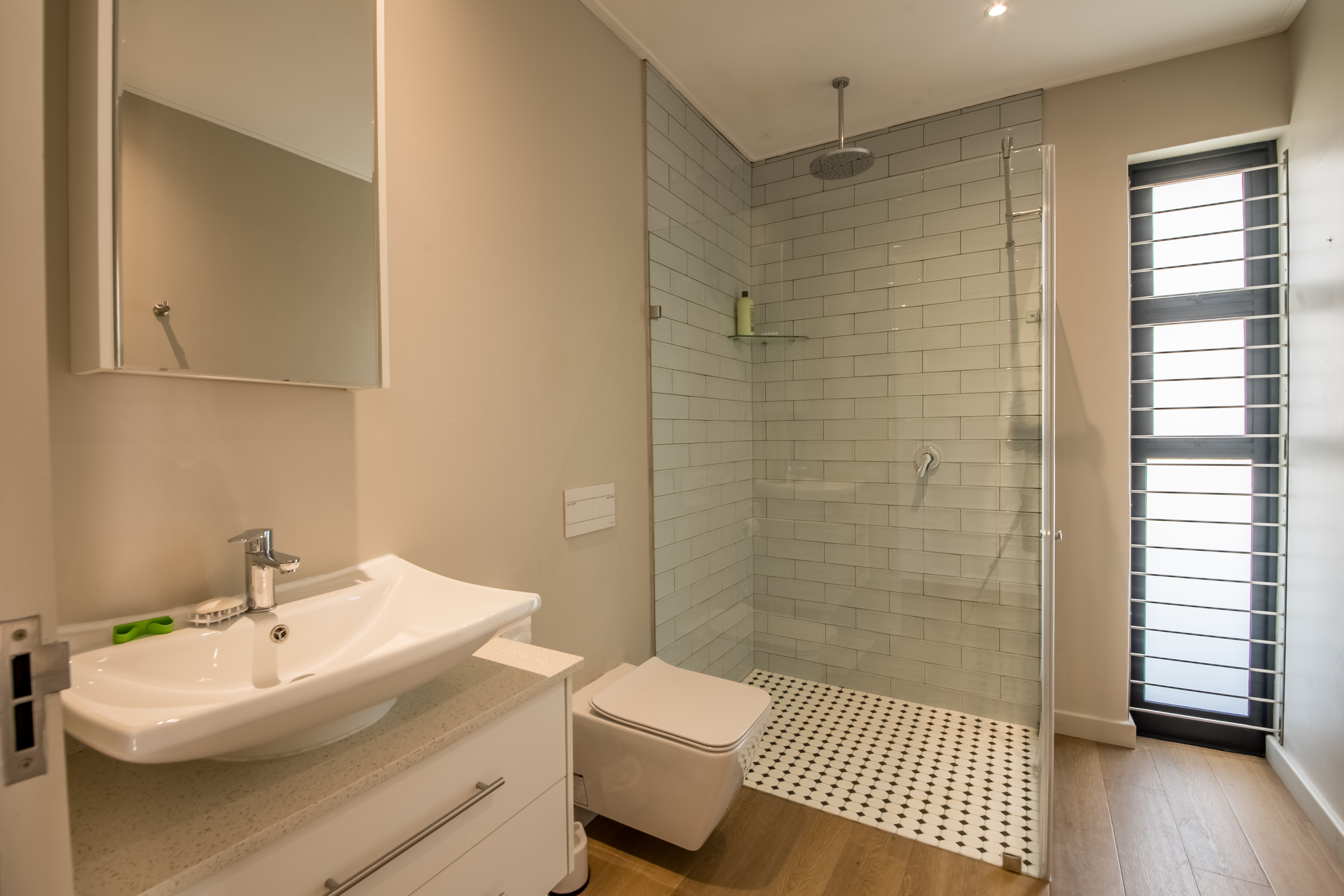 Comprehensive security with alarm, outside beams, burglar bars, baboon-proof locks, safety glass in the main bedroom, and CCTV, all in perfect working order