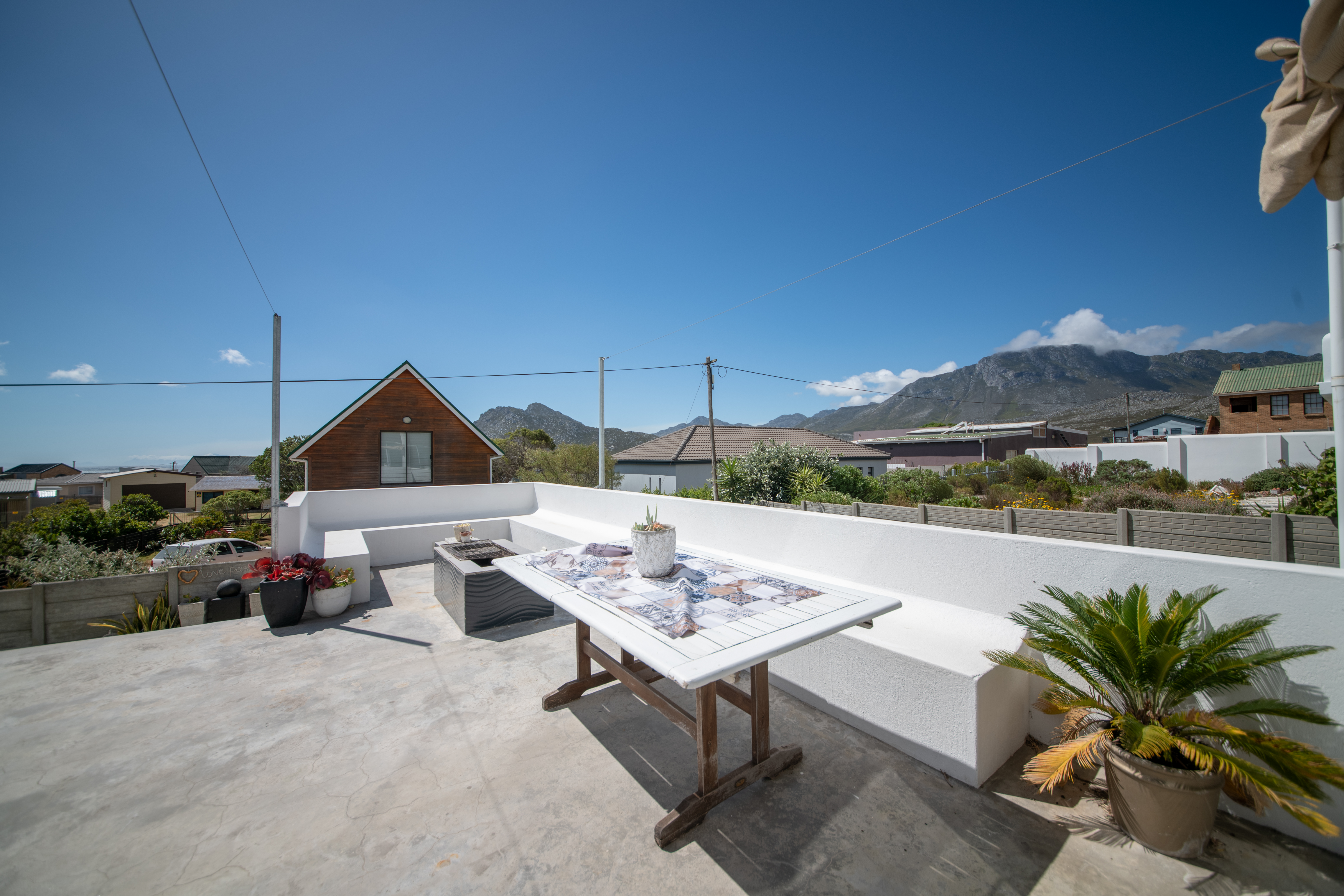 This double-storey property offers a flexible, guesthouse-style layout with four bedrooms — two on each level — and three bathrooms, two downstairs and one upstairs. Two of the bathrooms are full, featuring both a bath and a shower, all finished in earthy tones with a classic, timeless feel. The star of the show? The two entertainment areas. Downstairs, enjoy direct access to a sparkling swimming pool, a wraparound garden, and a generous firepit zone with built-in benches and soft lighting — perfect for festive summer evenings with family and friends. The built-in bar with built-in indoor braai adds that final touch, making this space the heart of your holiday gatherings, all geared up for a good kuier! Upstairs, the sunny verandah invites you to relax with mountain and sea views that stretch across the village — ideal for a morning coffee or sunset cocktail — while the coxy fireplace makes winter nights just as inviting. This house is ticking all the boxes!