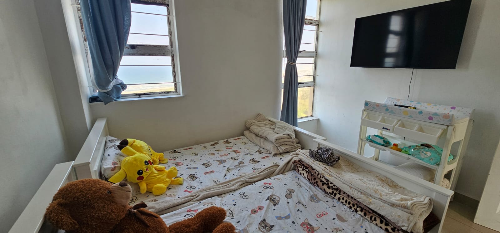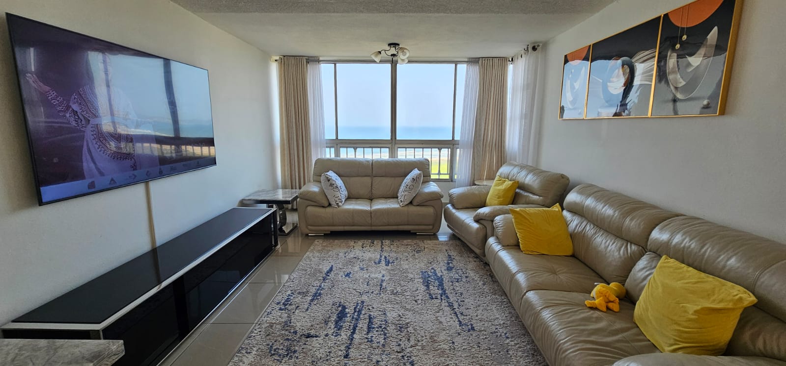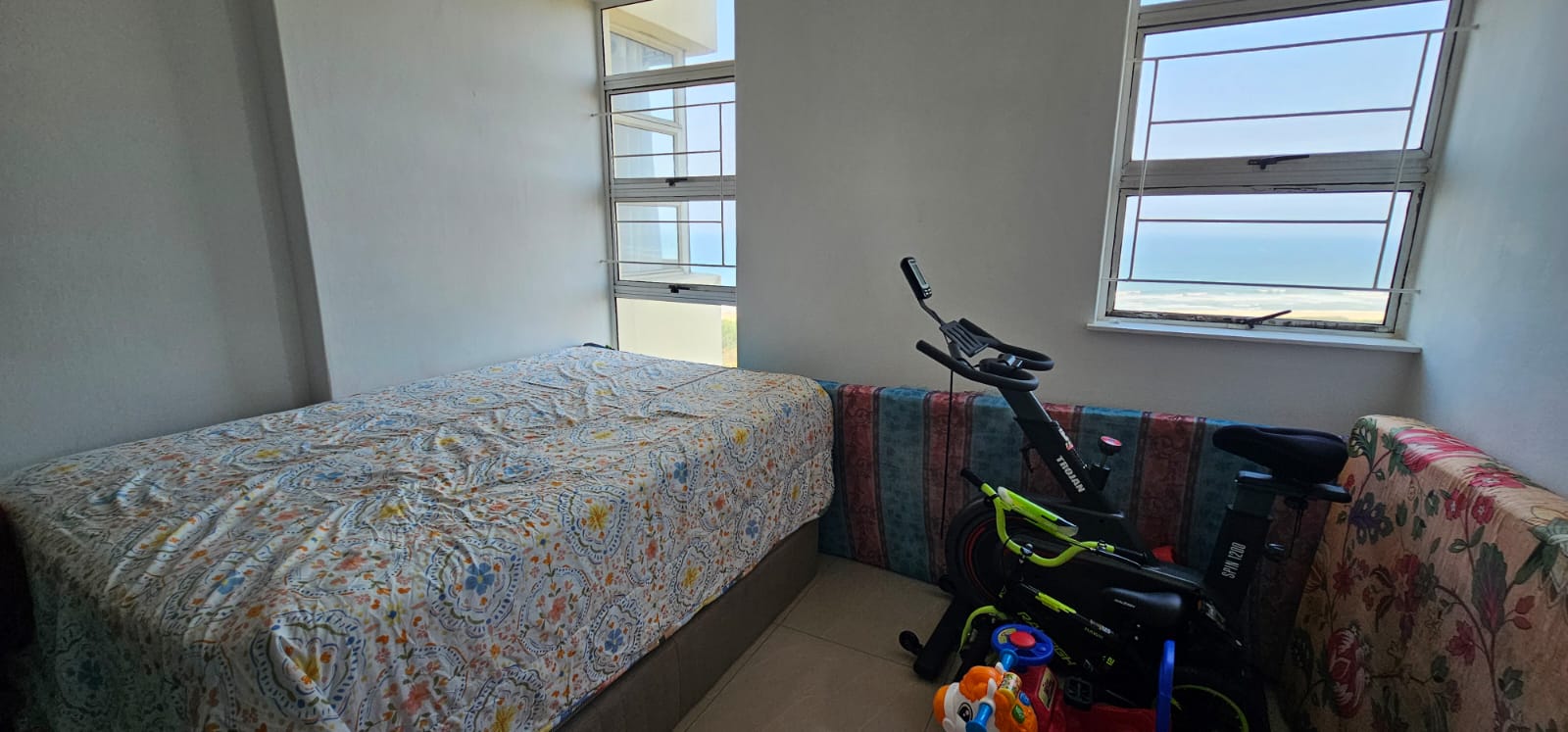 Enjoy breathtaking panoramic views of the Indian Ocean, Umgeni River, Moses Mabhida Stadium, and the Durban skyline. The apartment features ample built-in cupboards throughout, plus a versatile extra room perfect for a home office, prayer room, or laundry.