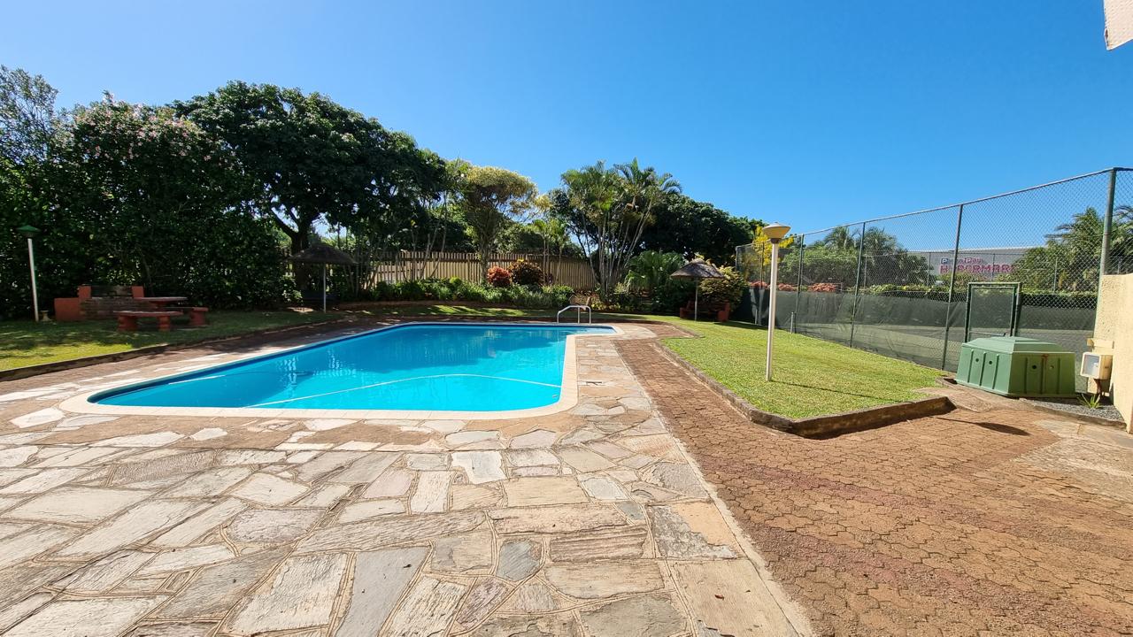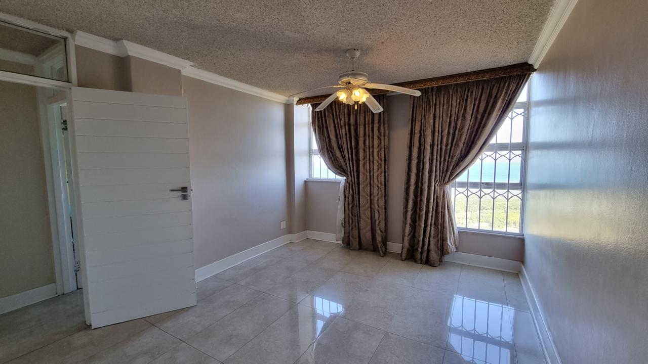 High in the sky with wonderful ocean views to the front, Durban to the right and Umhlanga to the left. 2 spacious bedrooms with BIC and stunning views. Both bedrooms have en suits. The kitchen is comfortable and fully fitted with room for laundry appliances. The open plan dining room and lounge opens to a balcony with stunning views.