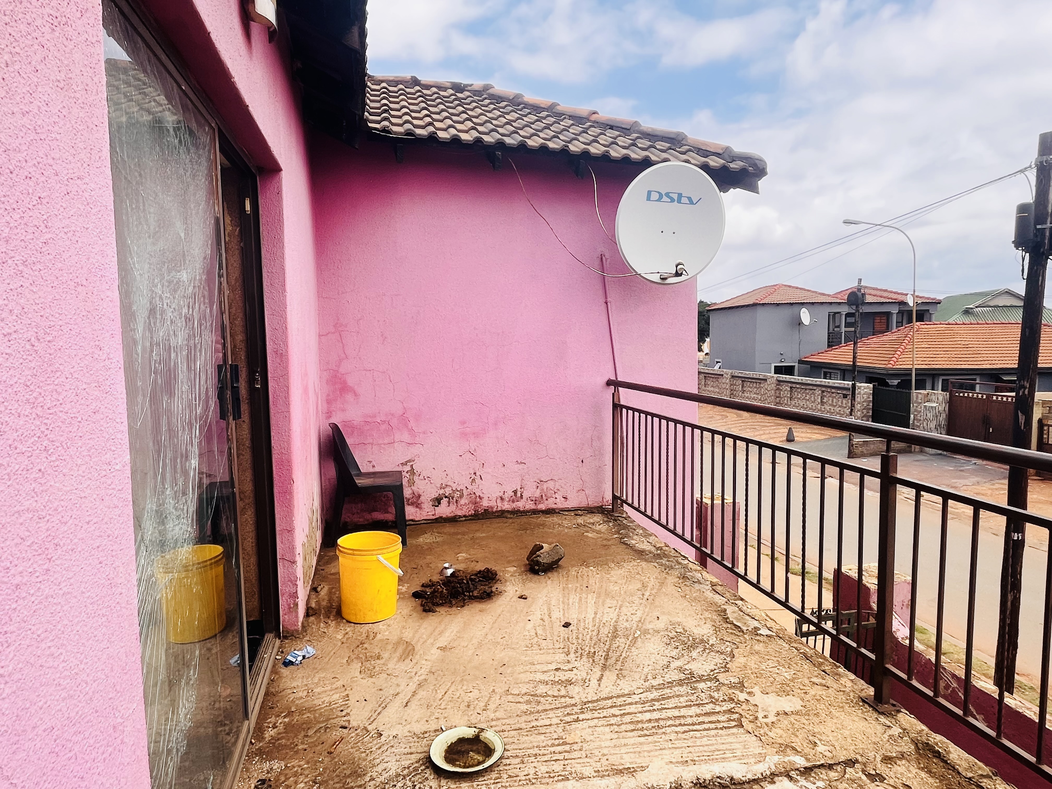 The property is available in Protea Glen ext 4 close to Glen Mall including other shopping complexes. A walking distance from hardware; schools; police stations etc and easy access to N12. Make this house your dream home or your investment property. Downstairs offers a kitchen; lounge; 2 bedrooms, 1 with incomplete built-in cupboards, toilet, shower. Upstairs offers 2 bedrooms, main bedroom with en-suite, balcony. Outside offers 1 room and garage to rent out, including 1 drive through garage which can park 2 cars. The house is built on a 251m2 Please call now for an exclusive viewing before it's too late Note that viewing is done if you supply required documents