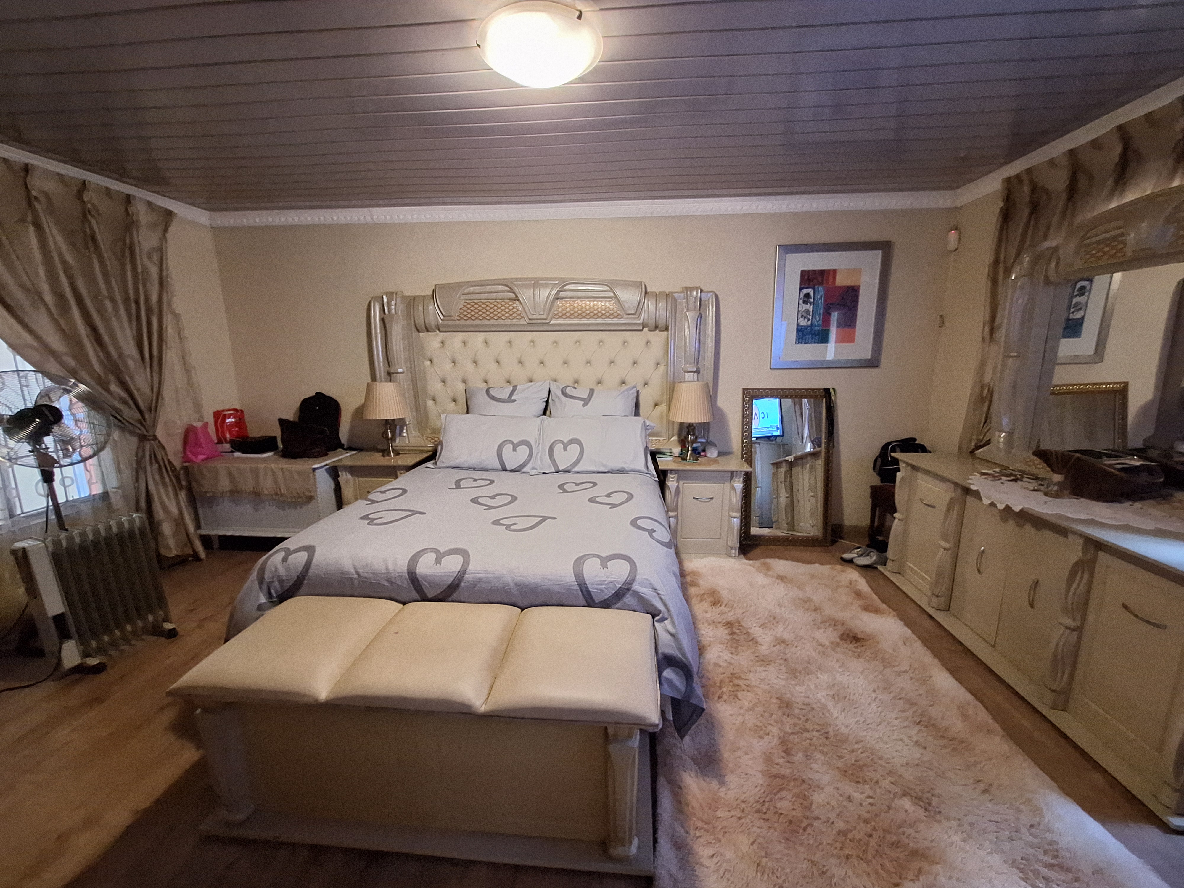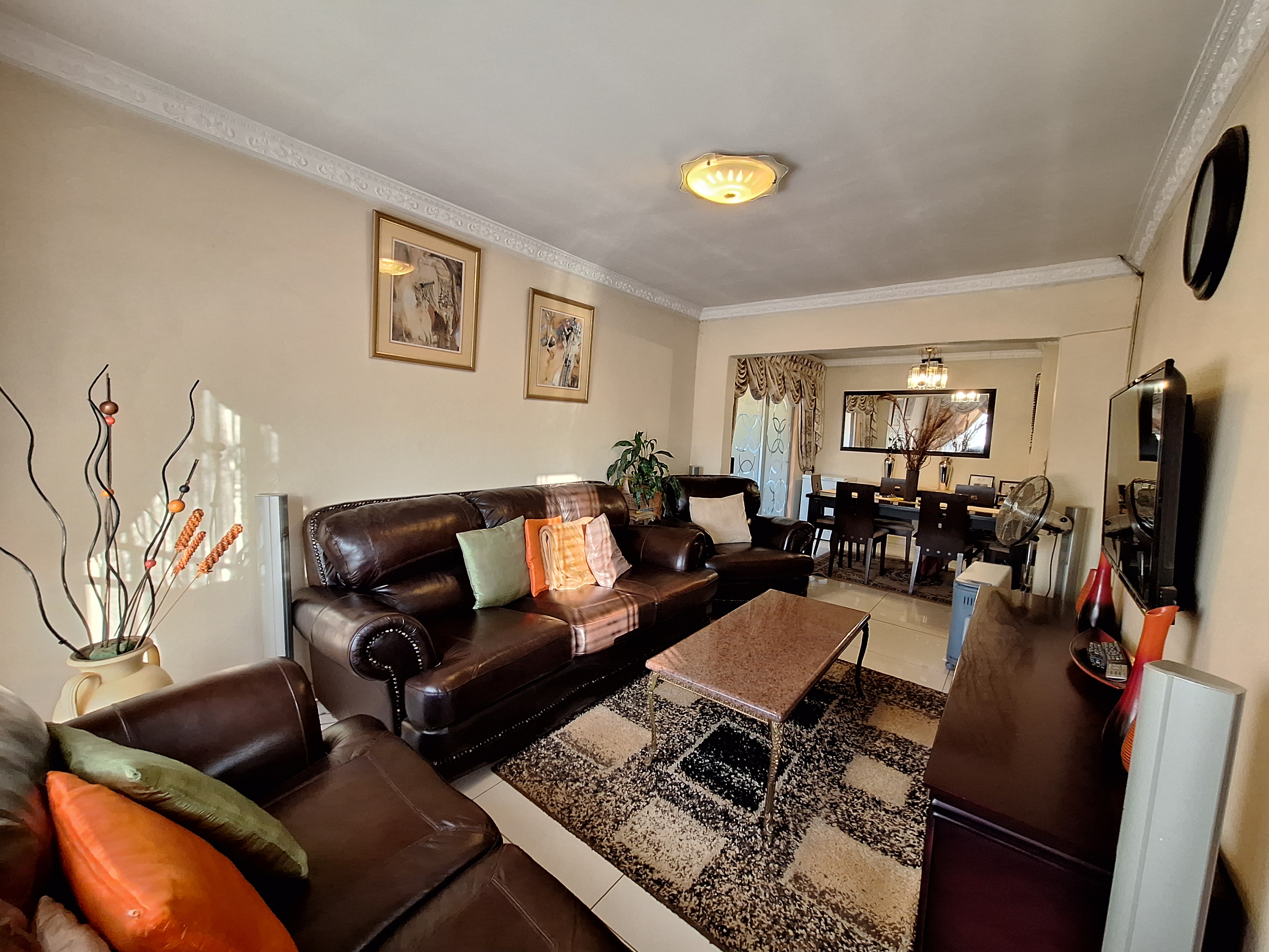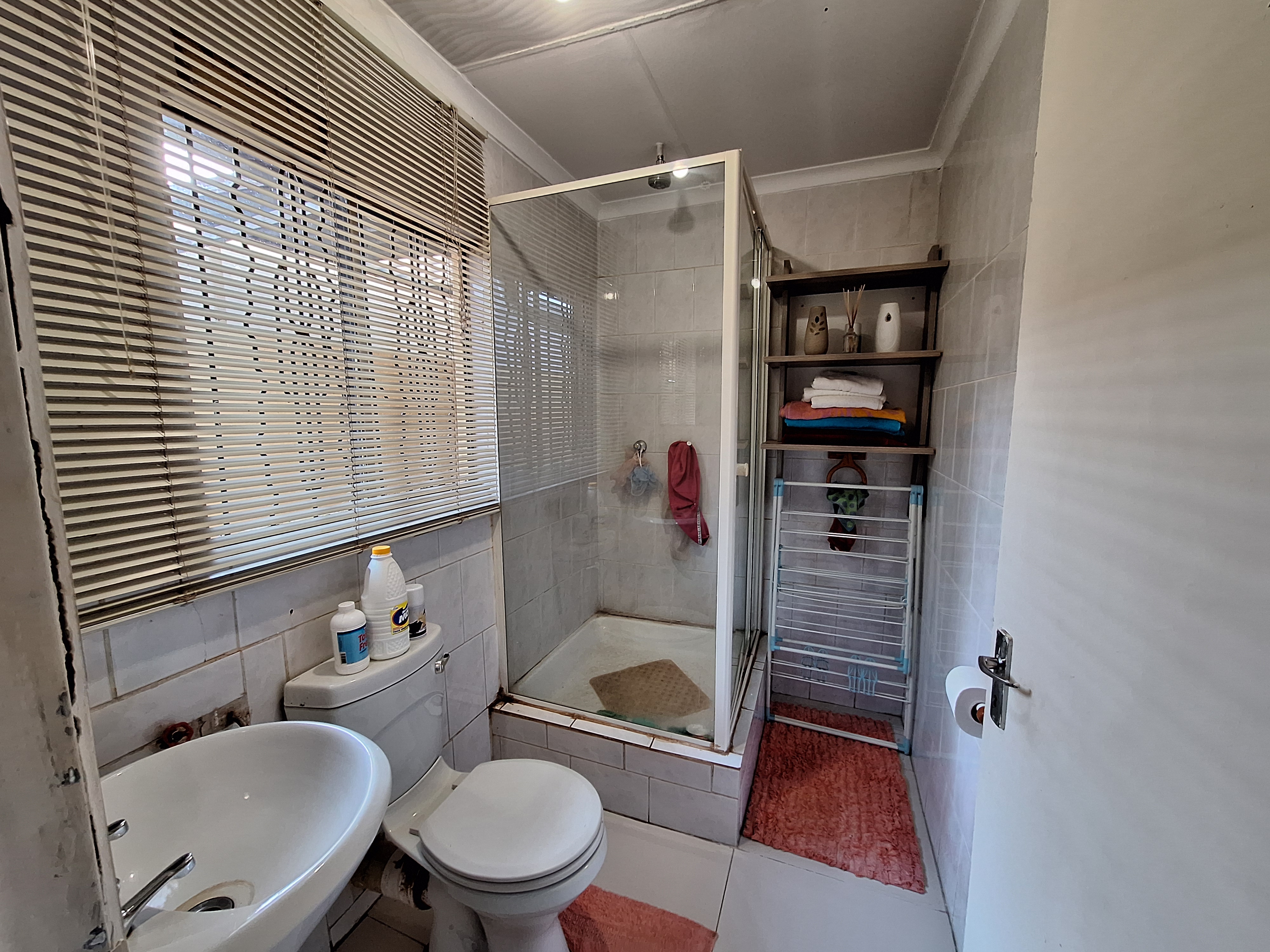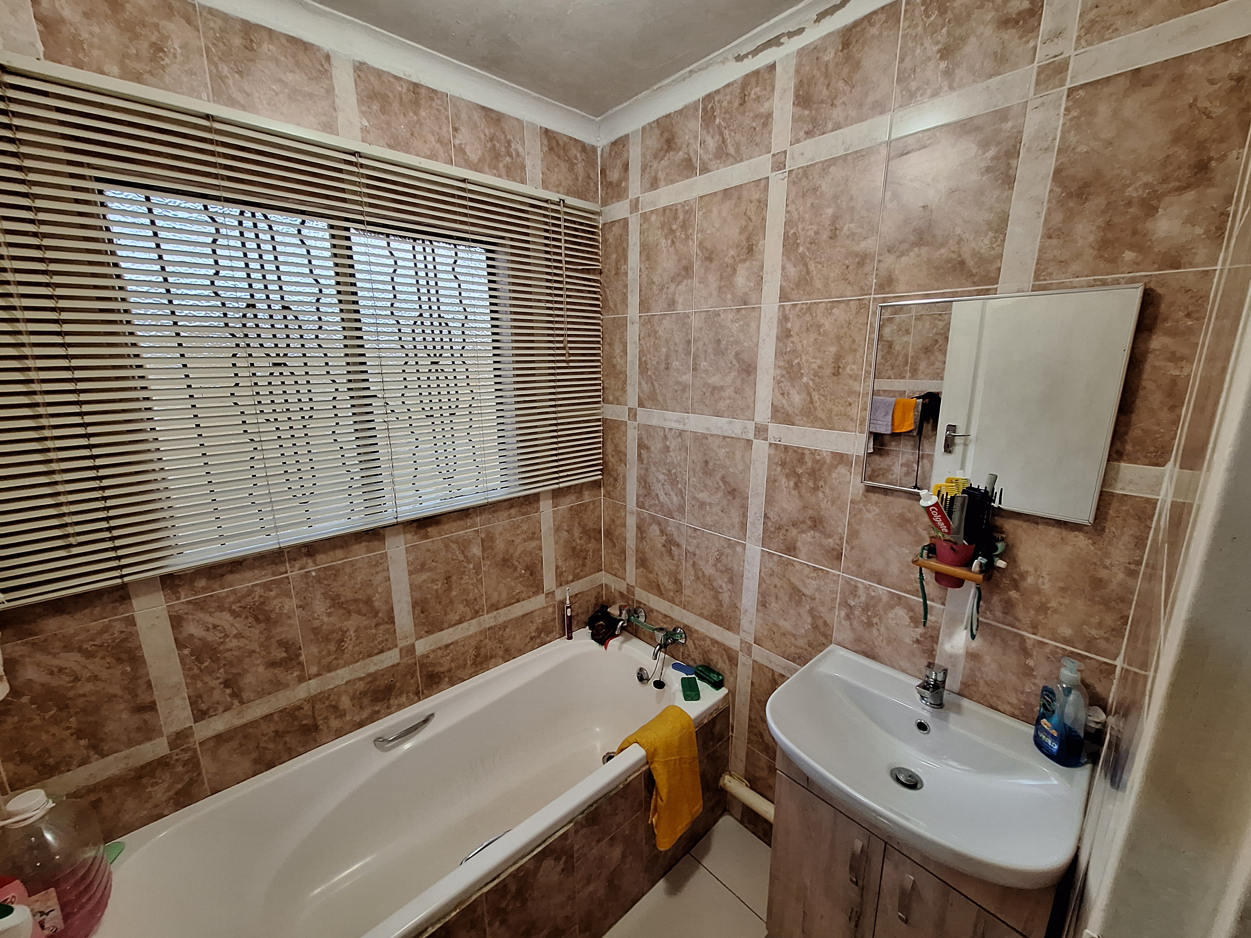 The first bedroom features laminated flooring and built in cupboards. The main bathroom includes a bath and basin, with a separate toilet for added convenience. The main bedroom is generously sized with plenty of built in cupboards and an en suite bathroom with a shower.