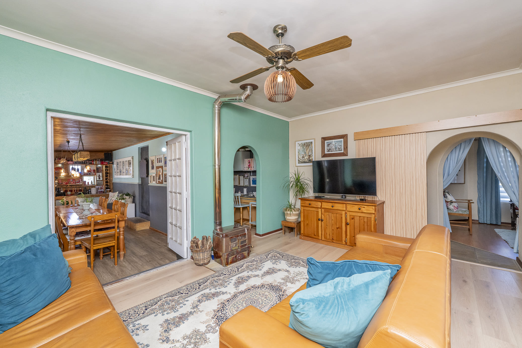 With three living areas, there’s room for big family movie nights or quiet corners to unwind. A tucked-away study nook makes homework or remote work feel peaceful. The kitchen is elegantly laid out and leads into a scullery — perfect for keeping cooking chaos under control when guests arrive at the door five minutes after you started cooking.