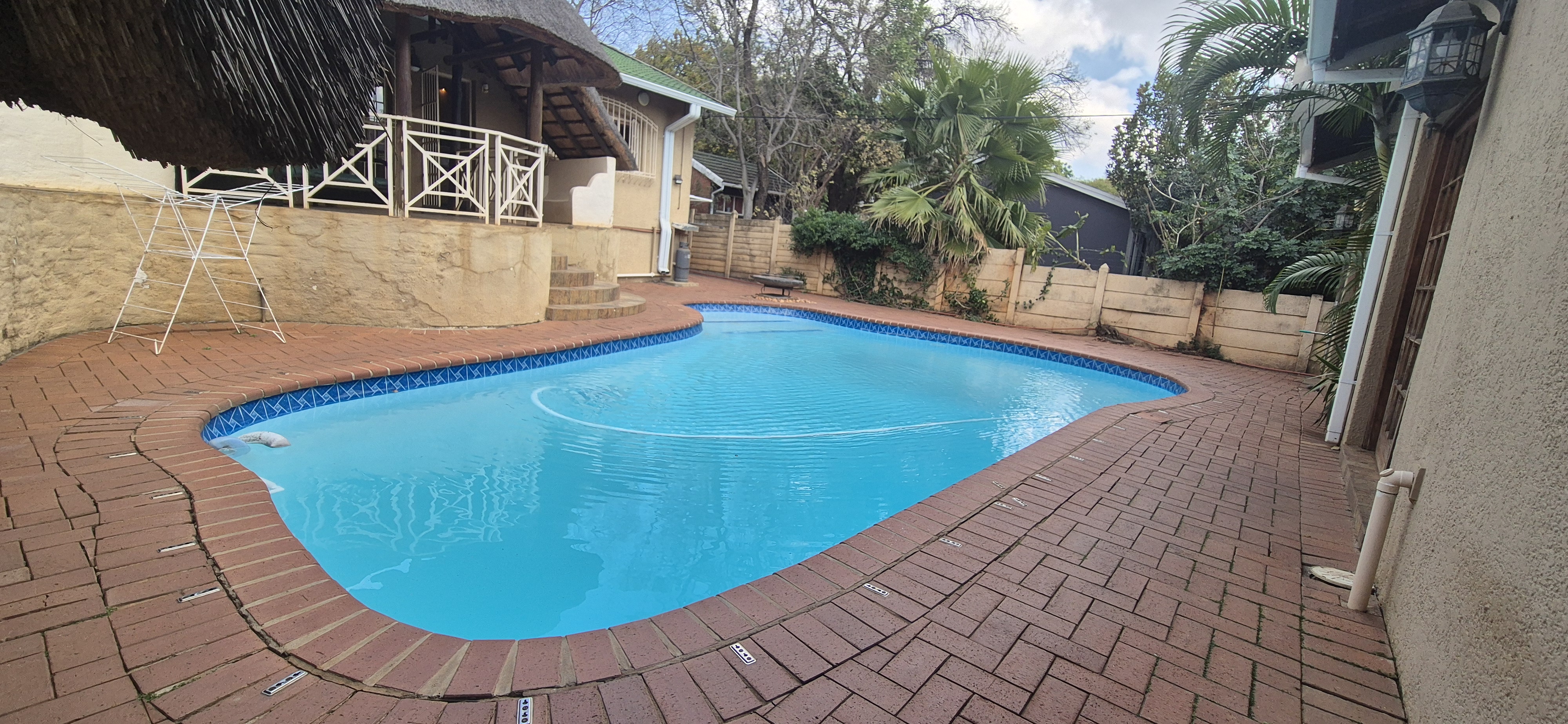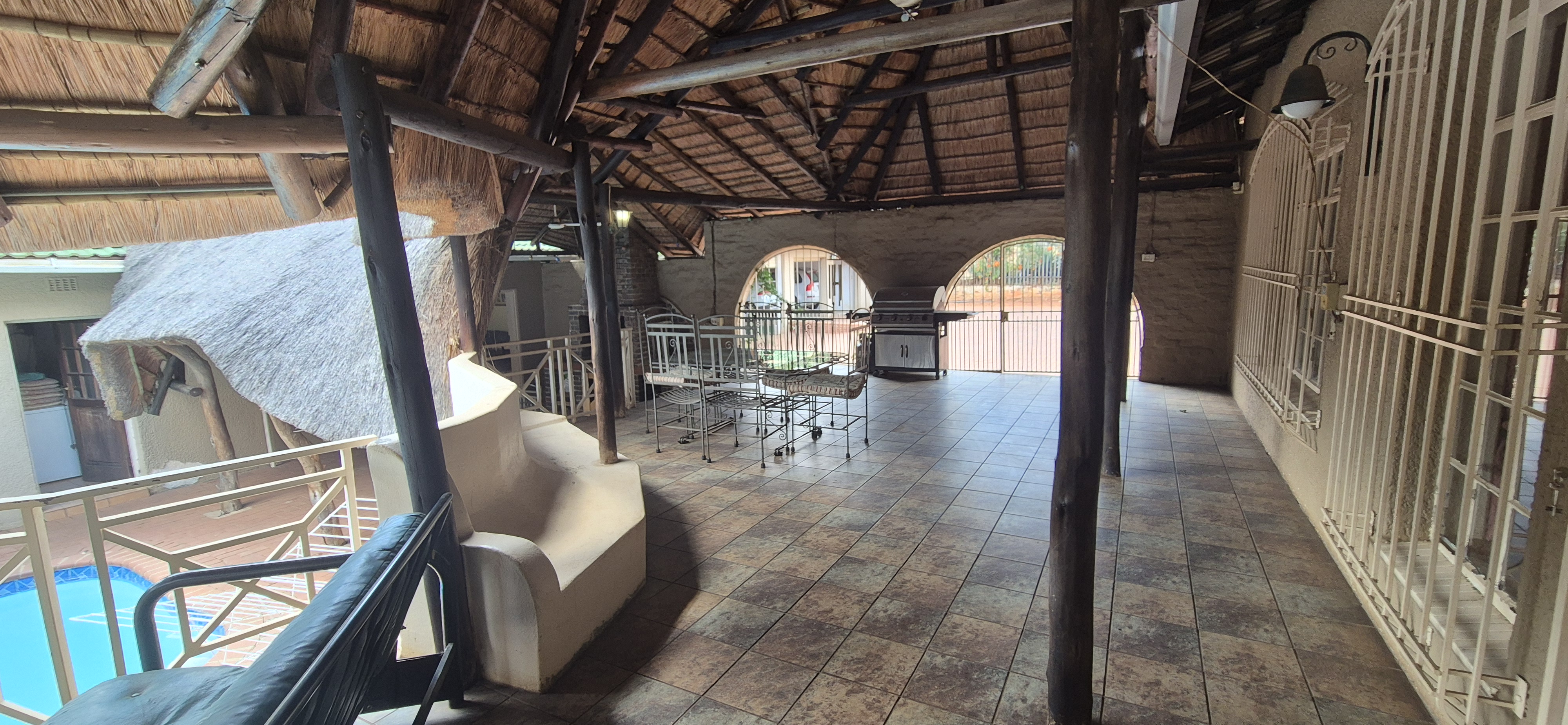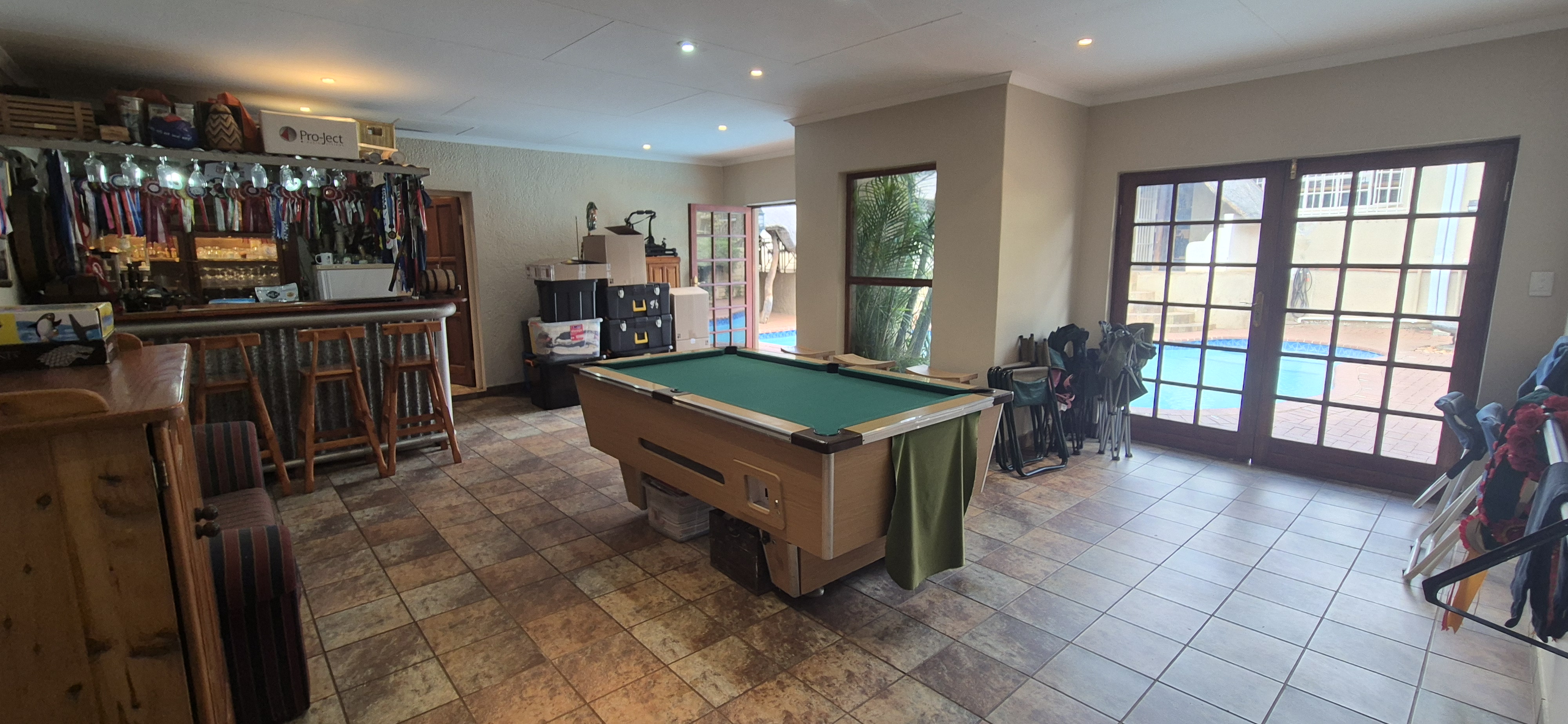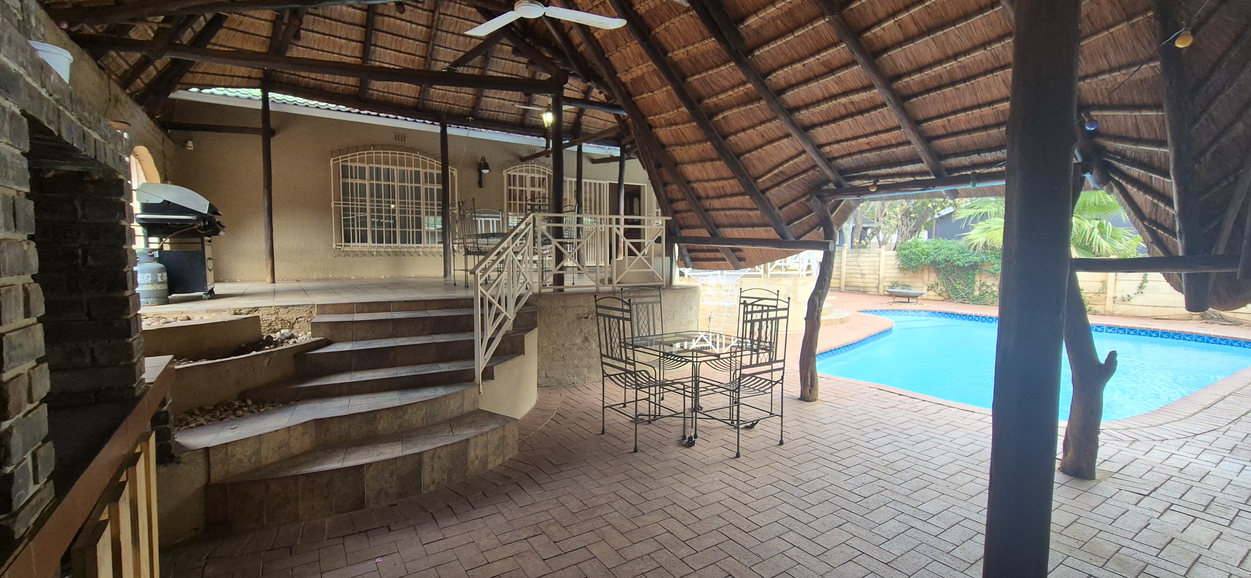 Outdoors, enjoy all year round entertainment with a sparkling pool, lapa covered patio with built-in braai leading to an airconditioned entertainment area and bar creating the perfect indoor hosting space.