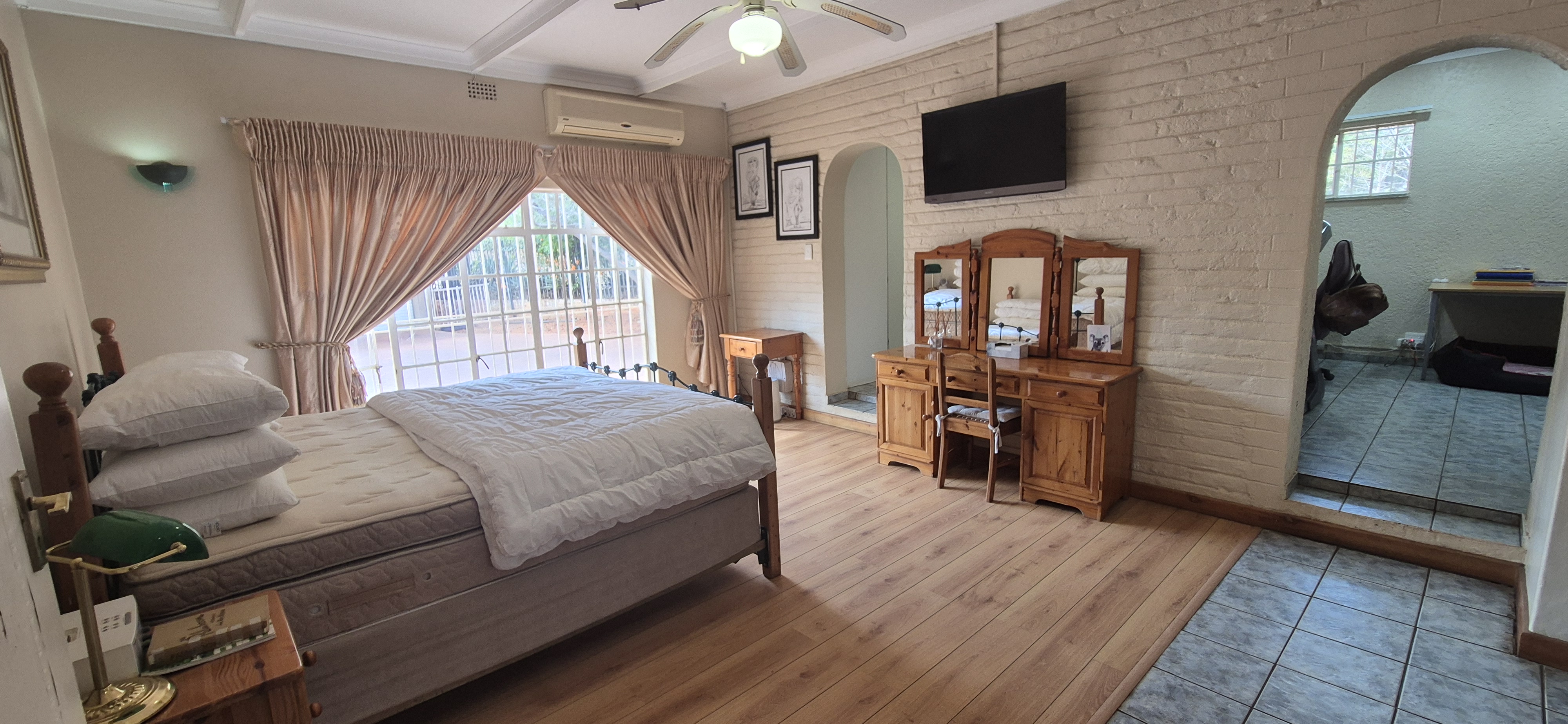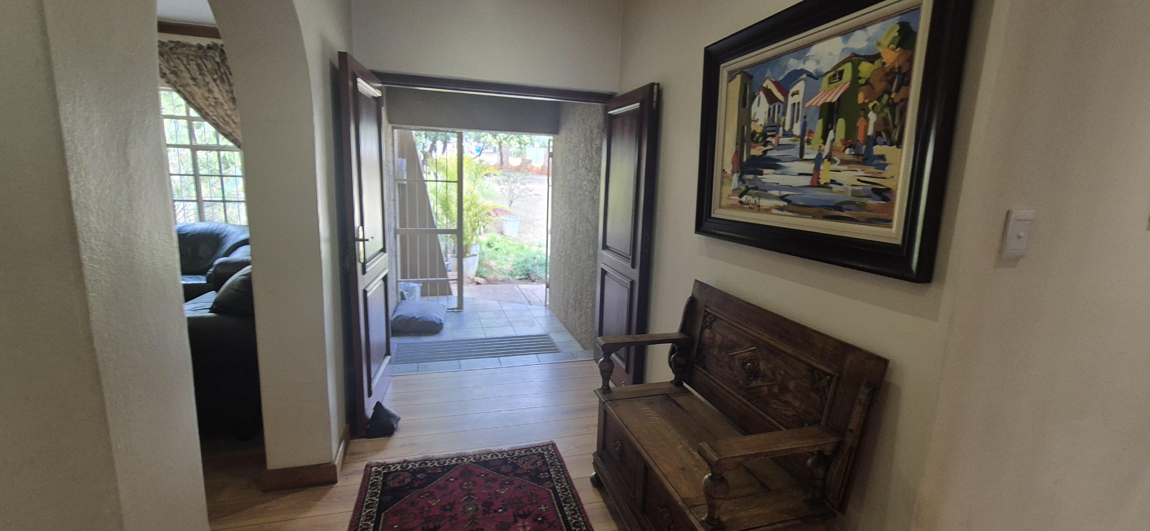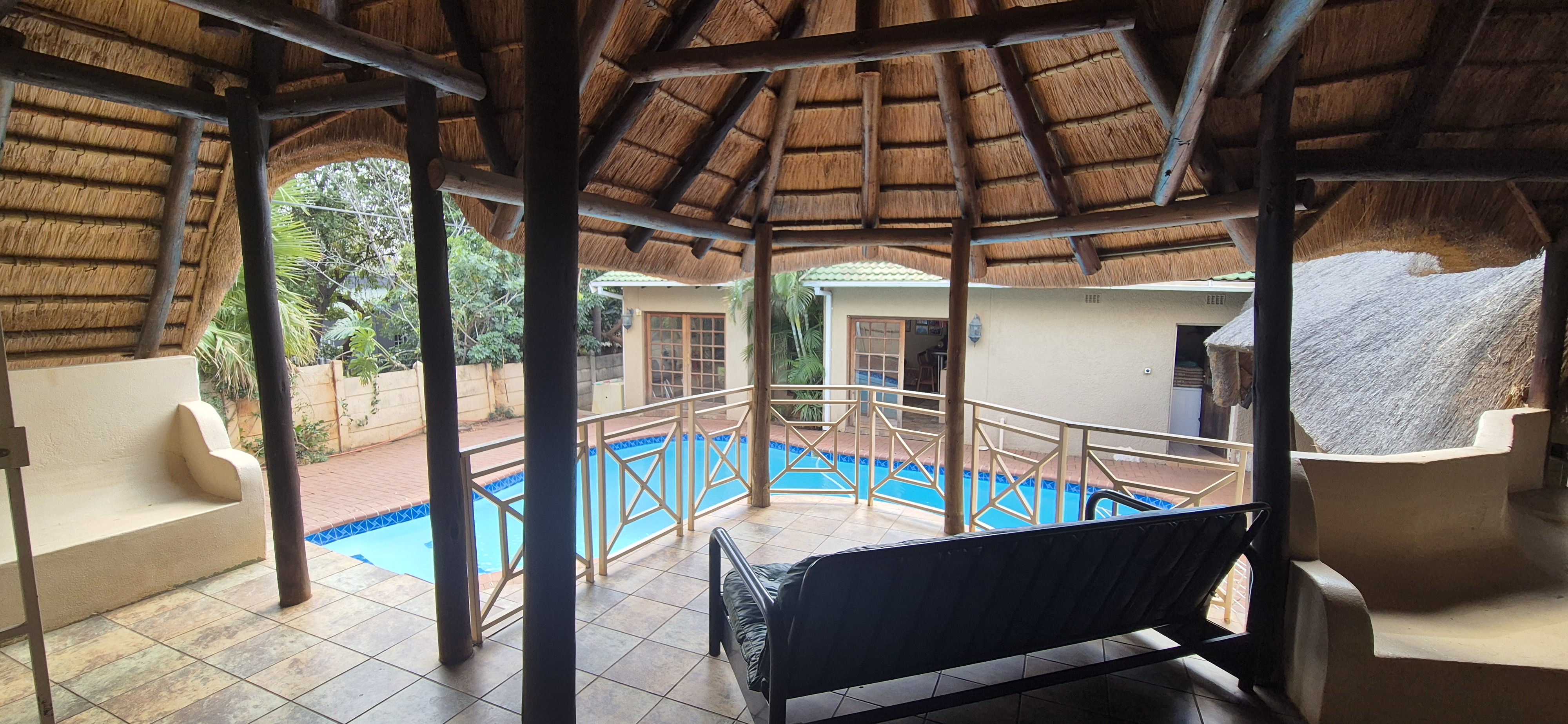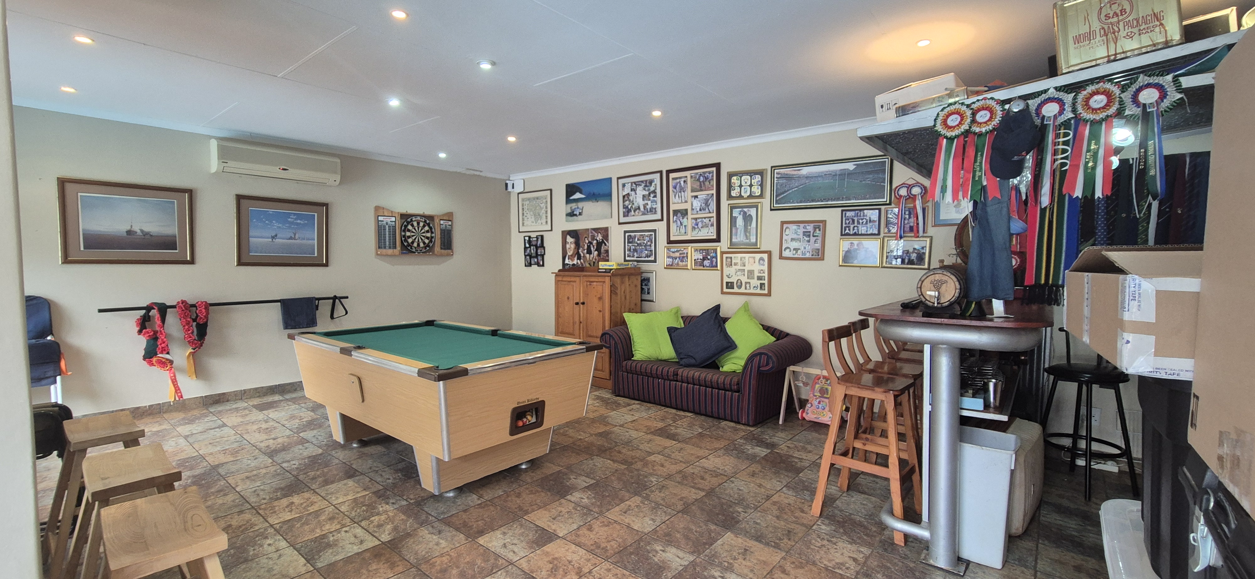 Outdoors, enjoy all year round entertainment with a sparkling pool, lapa covered patio with built-in braai leading to an airconditioned entertainment area and bar creating the perfect indoor hosting space.