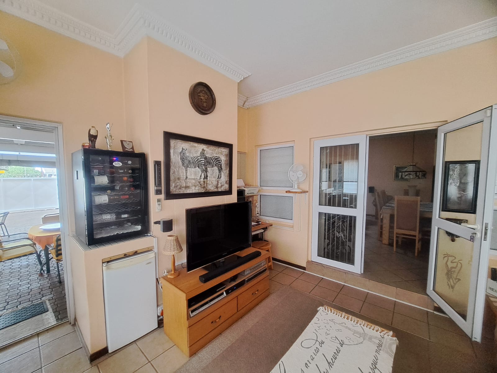 Step outside to discover a generous 36m2 Louvredeck covered patio, complete with built-in cupboards, a built-in braai, and roll-up canvas—ideal for hosting gatherings, come rain or shine.