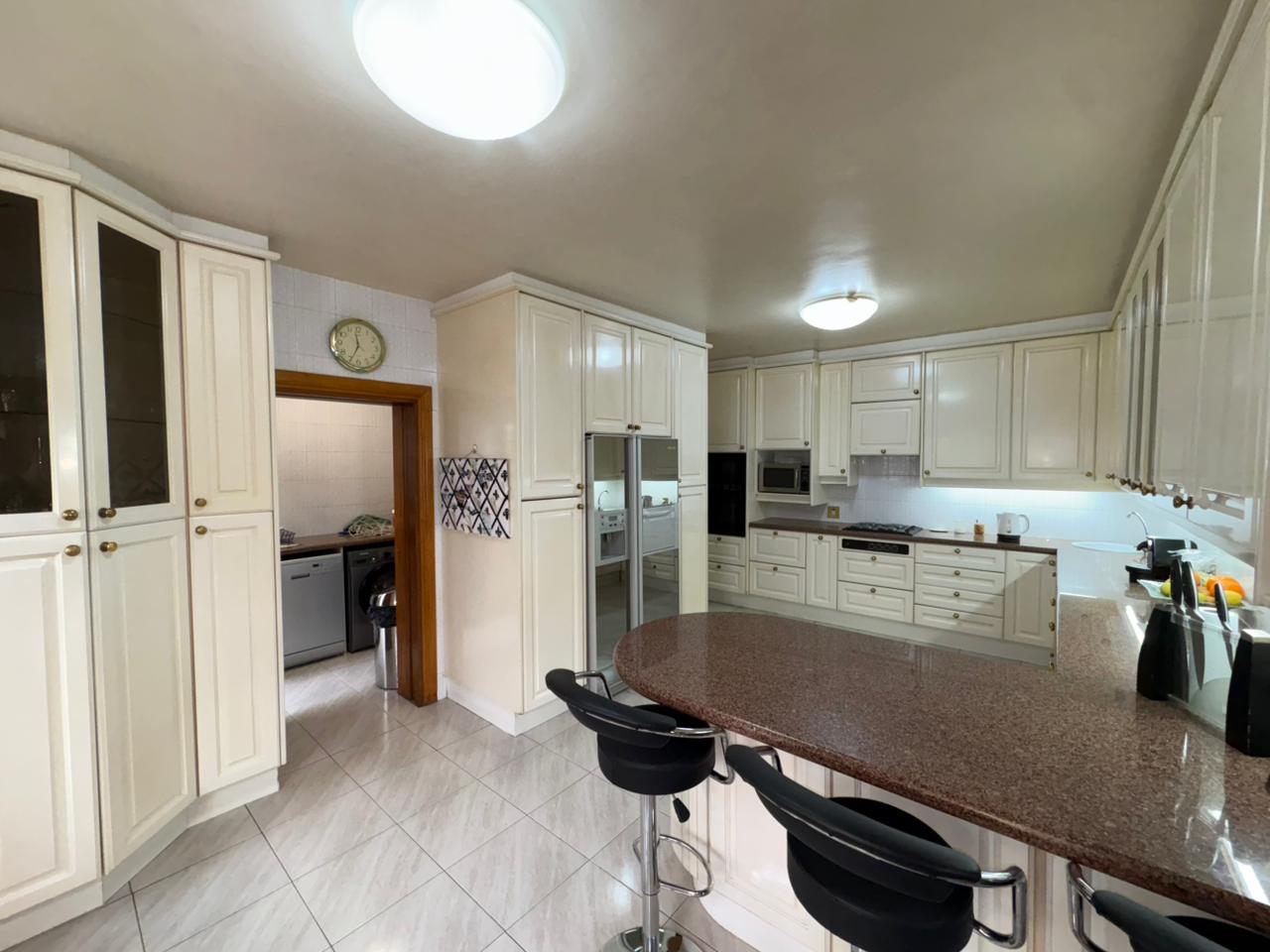 From the moment you step through the grand glass entrance hall, you’re welcomed by a sense of elegance, highlighted by a beautifully crafted wooden staircase. The ground floor boasts multiple living spaces, including a formal lounge, a dining room, a private study, and a guest toilet. The kitchen is designed with both practicality and charm in mind.