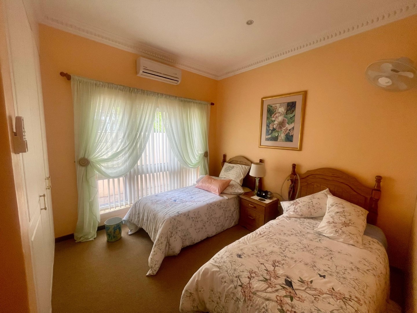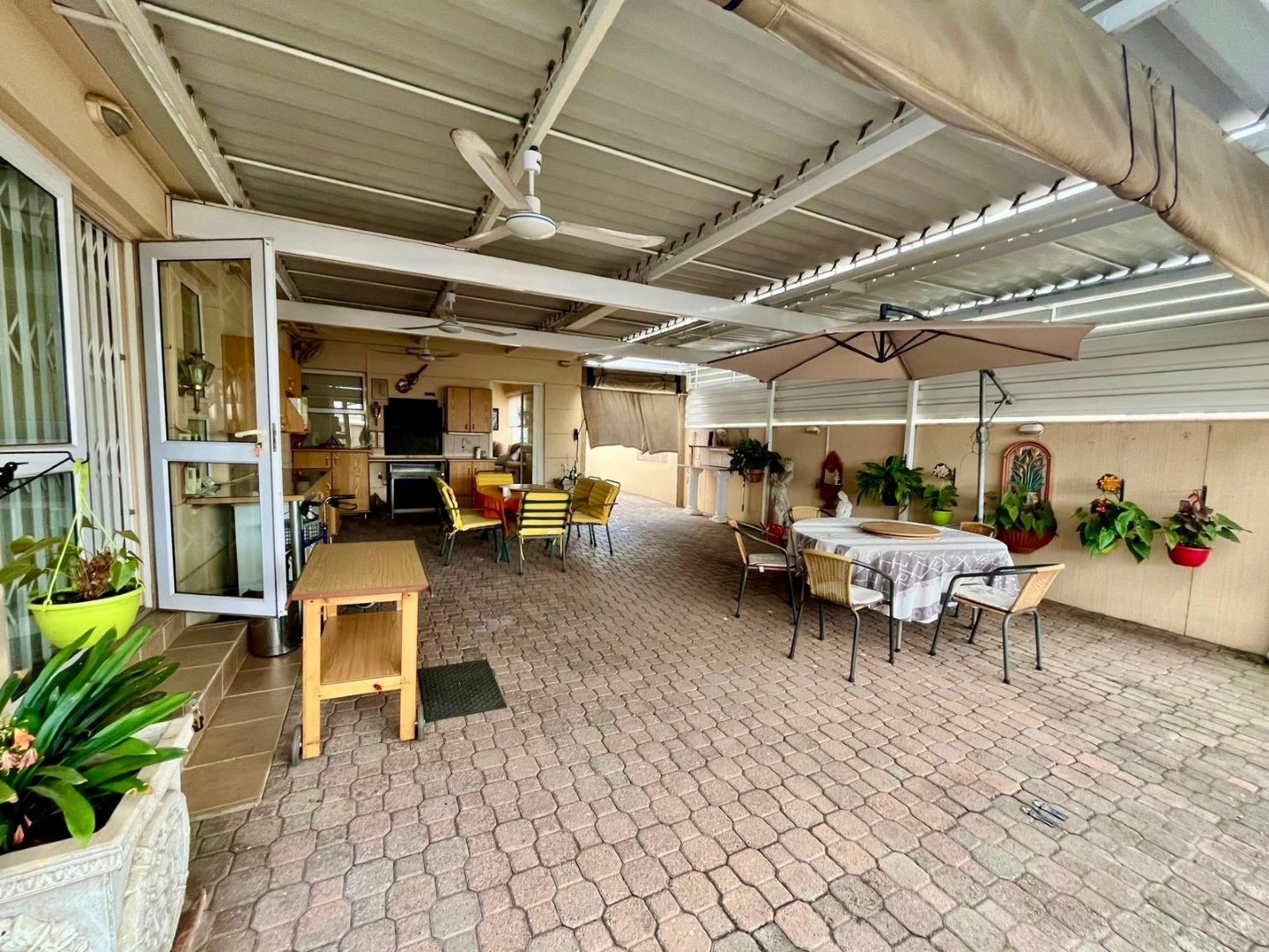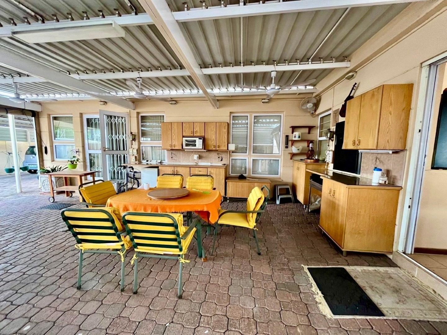 This beautiful 3-bedroom, 2-bathroom home is perfect for comfortable living, with the main bedroom offering an ensuite for added privacy and convenience. The house is fully equipped with 5 air conditioners strategically placed throughout for optimal comfort. Enjoy entertaining or relaxing in the enclosed patio, which includes a built-in braai for year-round BBQs. Additionally, there’s a well-designed outdoor braai kitchen, perfect for hosting guests.